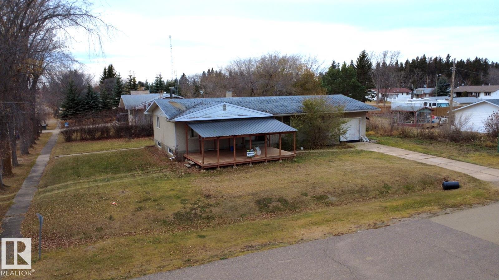 SMALL-TOWN LIVING, BIG HOUSE! Spacious 5-bedroom family home on a huge double lot at the edge of Vilna. Over 2,800 sq ft of living space including a finished basement! Many updates?newer windows, furnace, paint, flooring, and a covered deck. Main floor features a large living room with wood stove, dining area, and kitchen with pantry. Three bedrooms and a full bath complete the main level. Basement offers a massive family room, 2 more bedrooms, 3-pc bath, laundry, and storage. Attached, insulated garage with concrete floor. Large yard ready for fencing or your landscaping ideas. Located 20 min east of Smoky Lake off Hwy 28, about 155 km from Edmonton. Enjoy small-town charm, the ?World?s Largest Mushroom,? Iron Horse Trail, and nearby Bonnie Lake & golf!