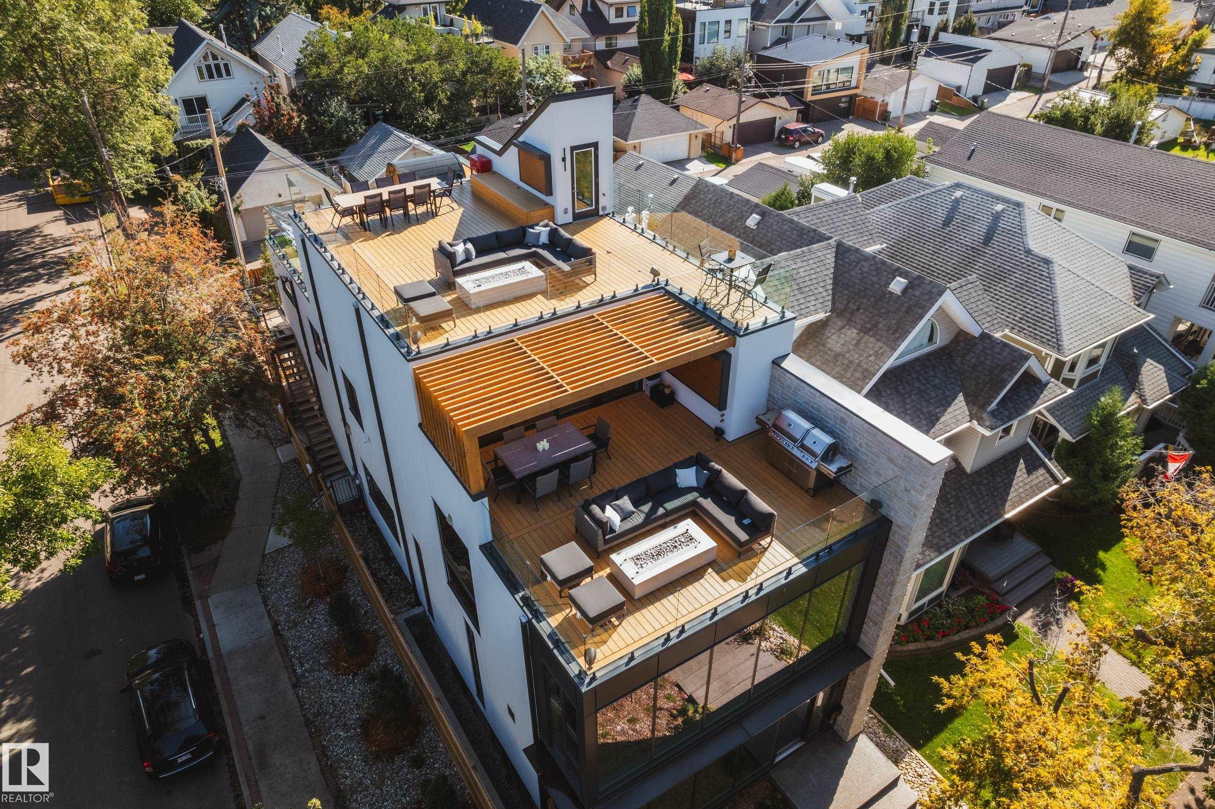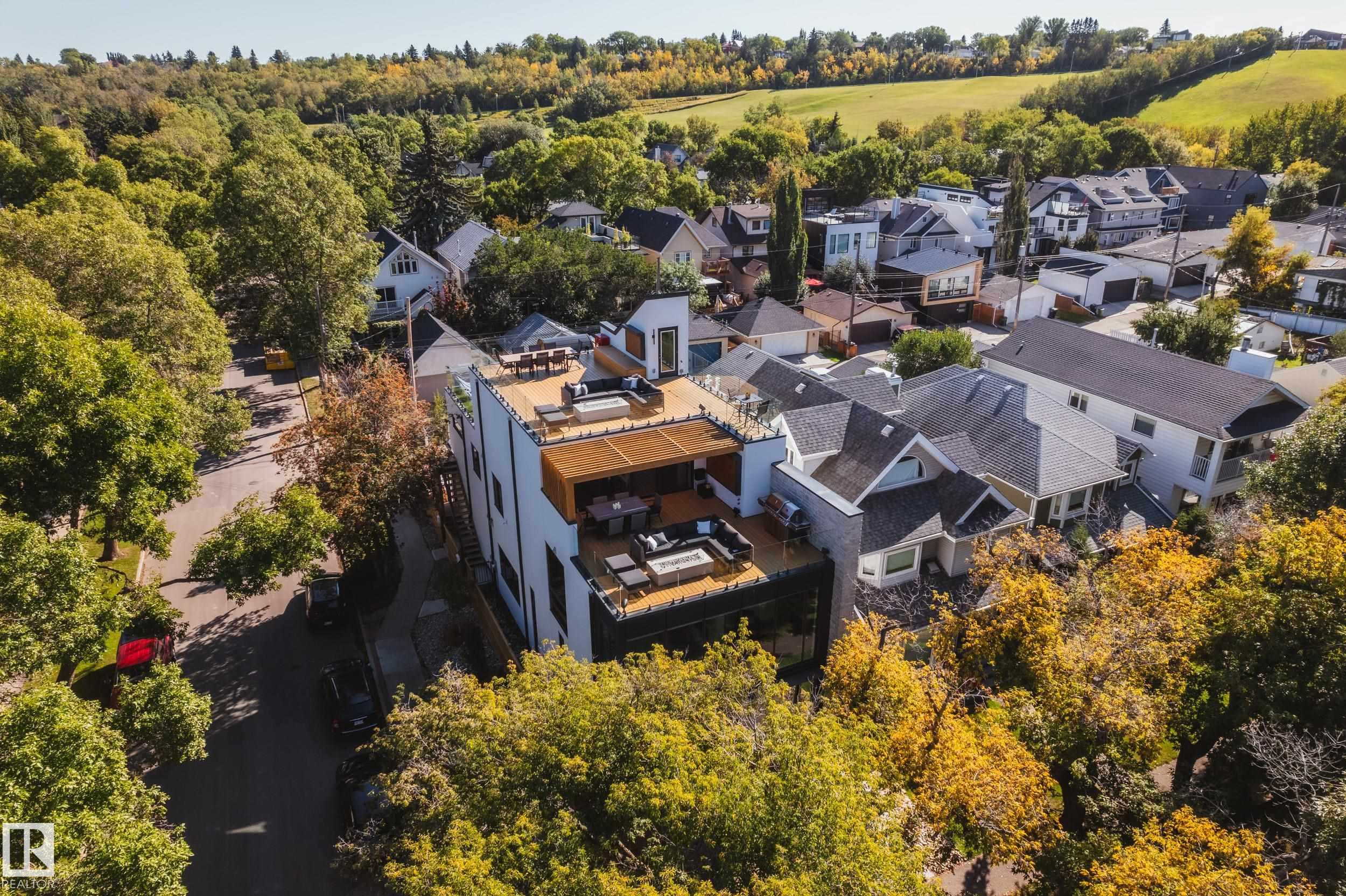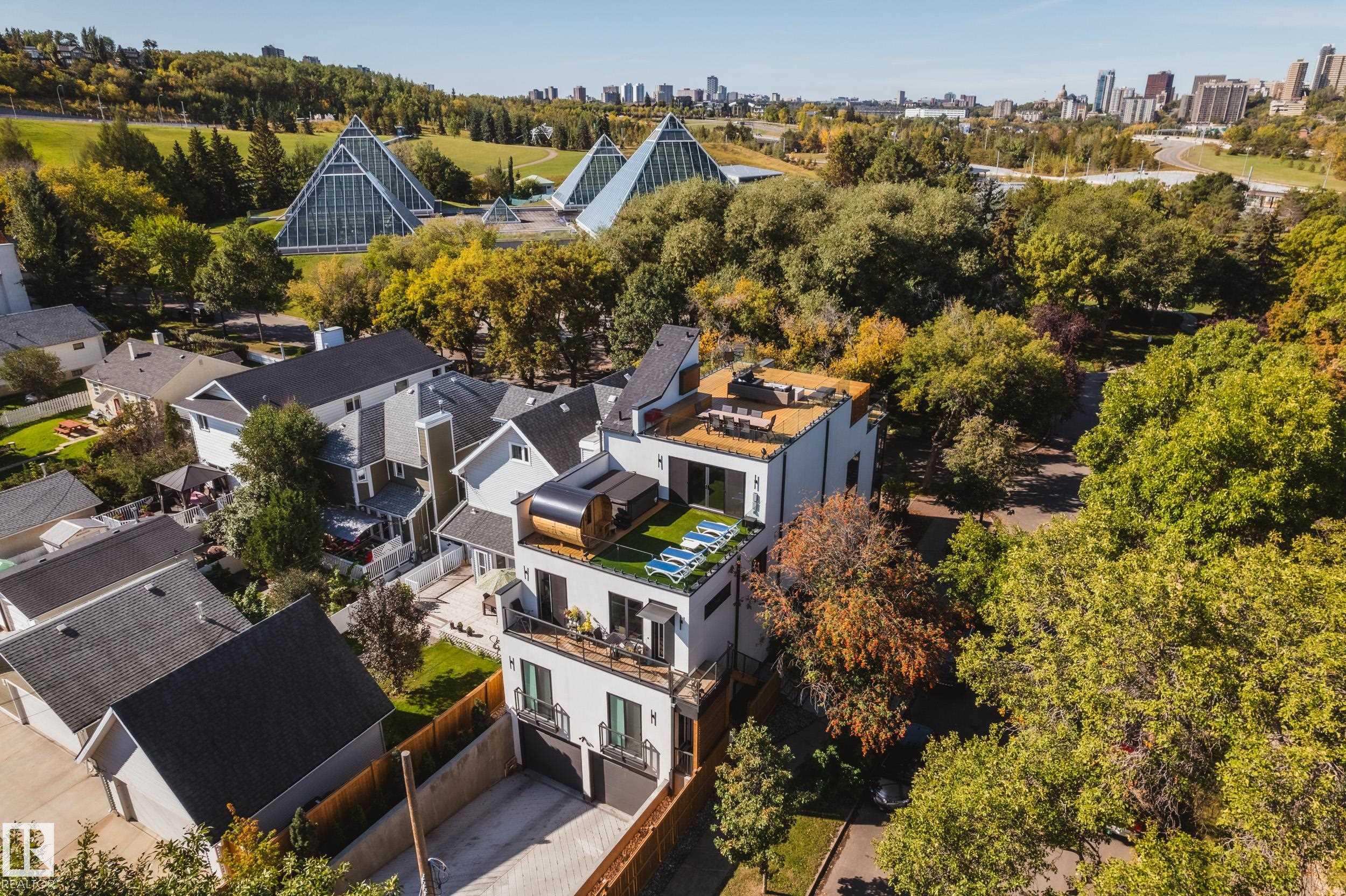 Introducing the 2024/2025 CHBA Home of the Year! A true architectural masterpiece built by Justin Gray Homes offering over 5,000 sqft of luxury across 5 levels. Features 6 bedrooms, 6.5 baths, private office, & 4 rooftop patios w/ 360° river valley & downtown skyline views. Built w/ commercial-grade steel beam construction, 10' ceilings, floor-to-ceiling windows, hardwood throughout, 2 gas fireplaces, chef?s kitchen includes Wolf/Subzero appliances, upgraded cabinetry, & a hidden butler?s pantry. The primary retreat offers a lounge, gas fireplace, & spa-inspired ensuite w/ steam shower & freestanding tub. 3rd floor rooftop Nordic spa w/hot tub, cold plunge, sauna, & steam shower, theatre & bar. FF basement featuring gym, bedrm & 5-car heated garage w/ epoxy floors & heated driveway. Also 2 self-contained one-bedroom income generating suites! Fully landscaped maintenance free yard w/ irrigation, smart home automation, outdoor TVs & fireplaces. Steps to Muttart, River Valley, Edmonton Ski Club & downtown!