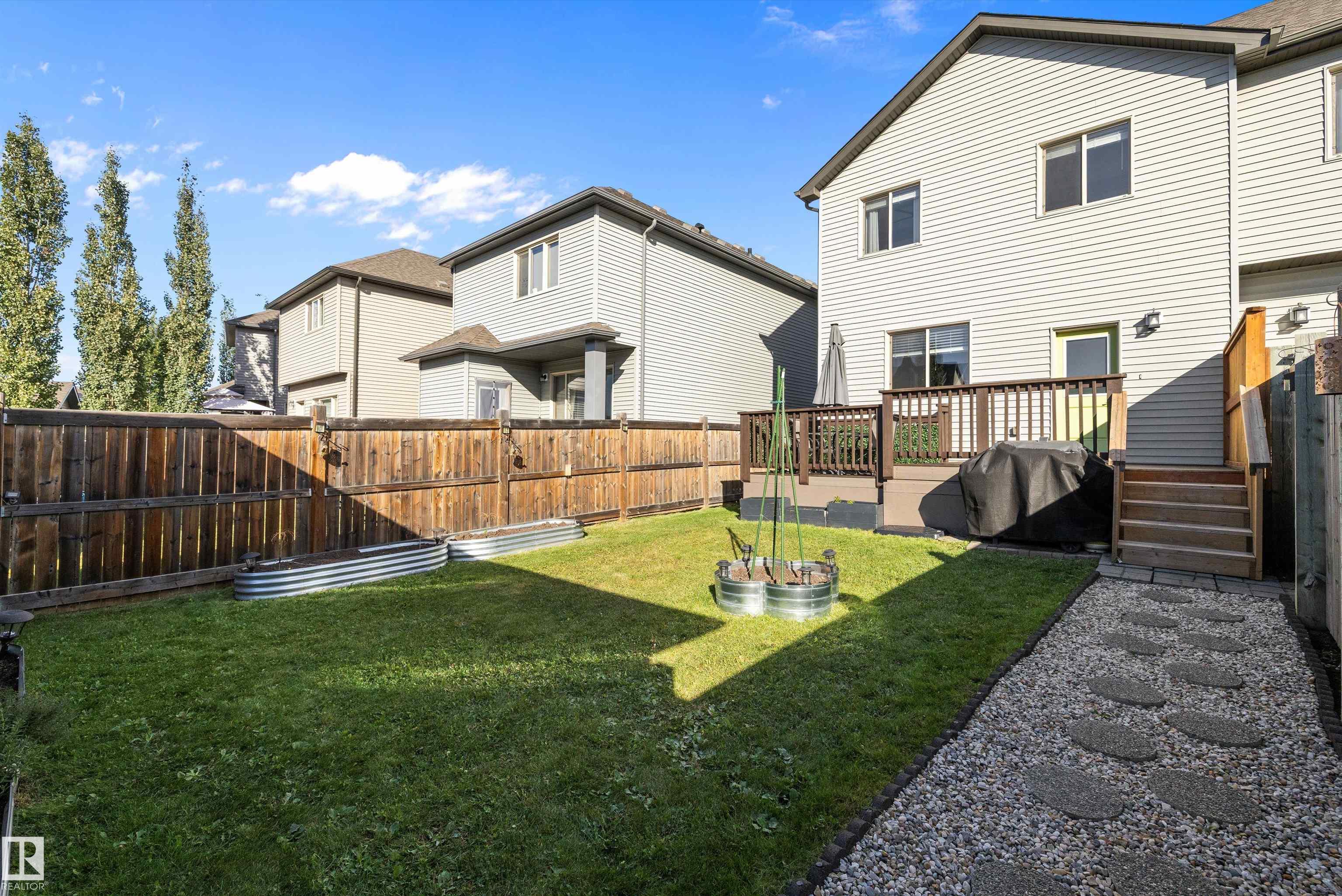 Move right into this original owner Alquinn Home. This property has been lovingly maintained and is PET and SMOKE free! Open concept main floor has 9' ceilings and 2 toned kitchen with quartz countertops plus room for a full sized dining table! Upstairs has 3 bedrooms, 2 full baths & upstairs laundry. The basement is finished with large rec room with california knockdown ceiling and a half bath that has rough-ins for a shower. Full egress sized window means you could also add a 4th bedroom. The west facing backyard has an extended deck with ample room for a table & lounge set and comes with deck lighting. The double detached garage is oversized to fit the length of a truck (19.5'x25'). Nestled in a crescent this home is just a couple minutes walk to Prescott School & Jubilee park and has excellent access for commuters with quick access to both HWY 16 & 16A.