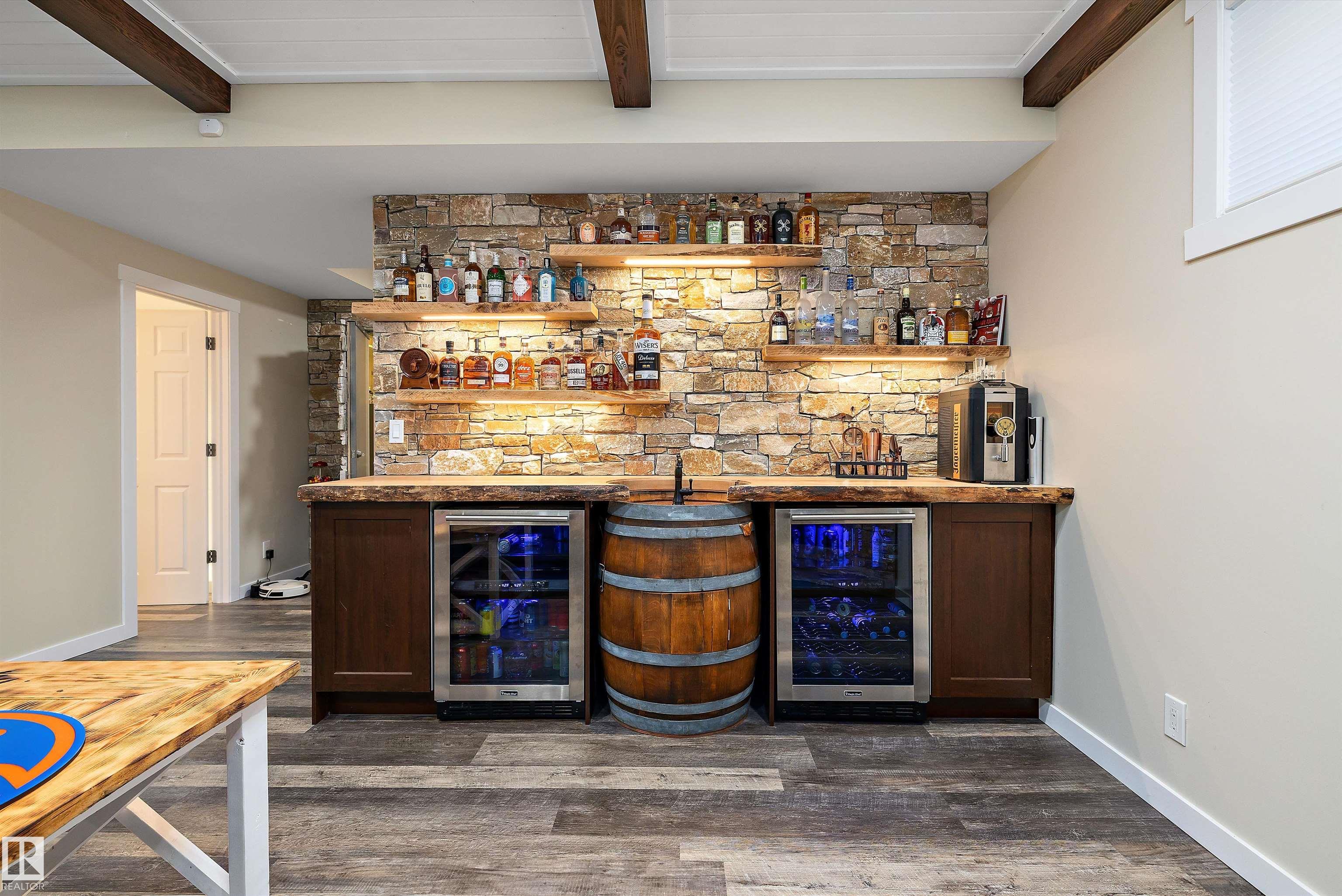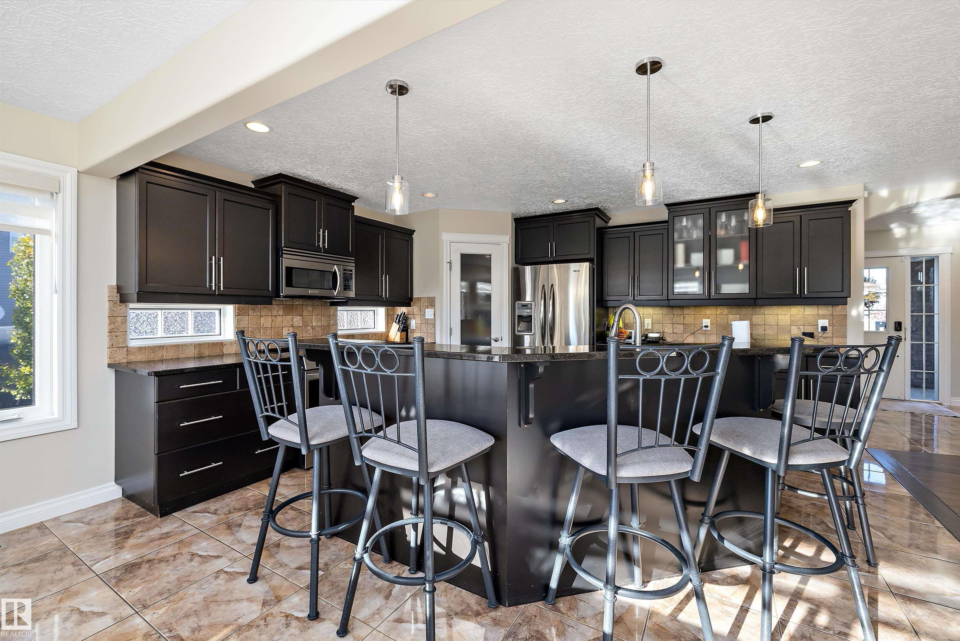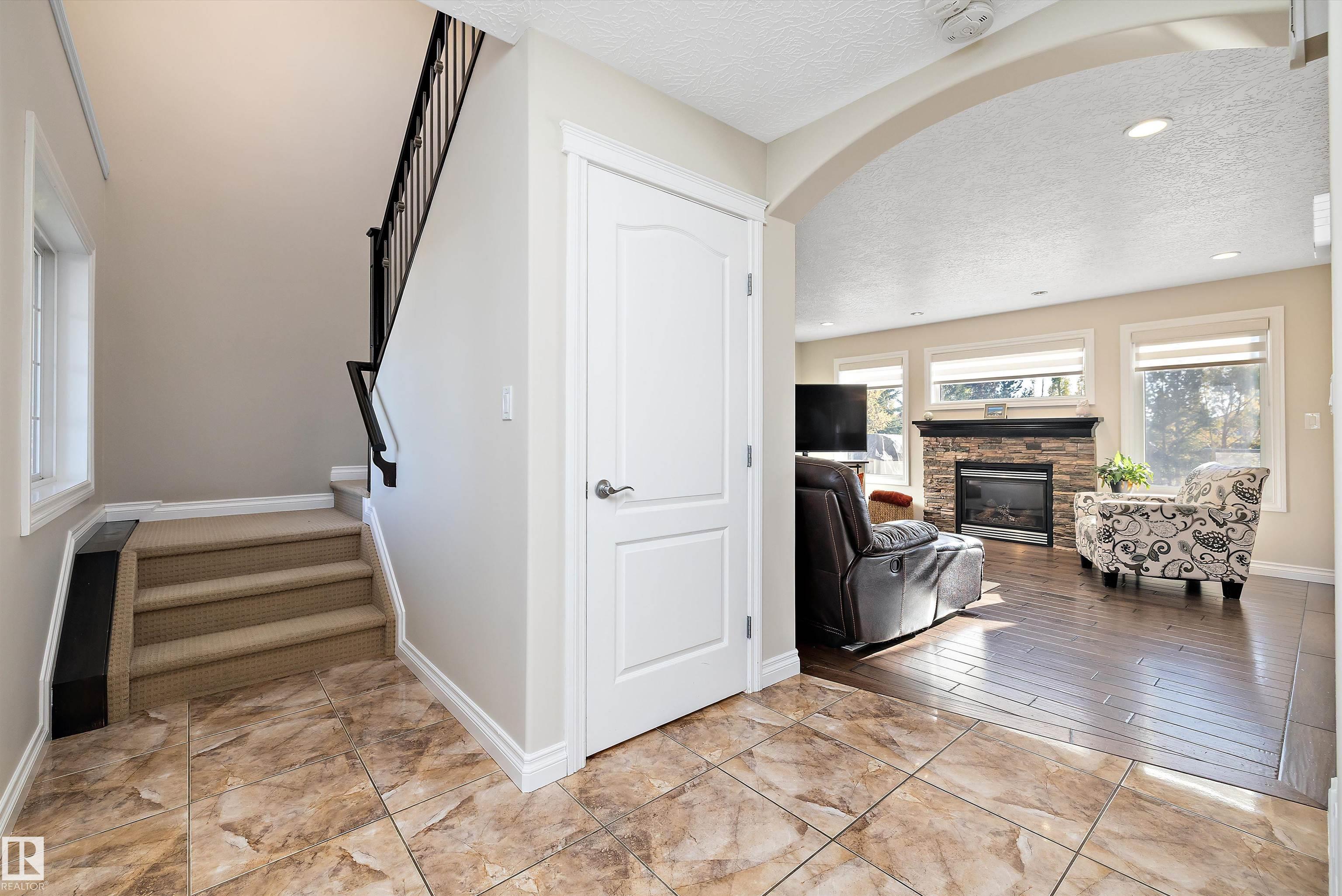 Welcome to this beautifully finished home showcasing quality craftsmanship and exceptional value throughout. The main floor offers a bright open layout with elegant engineered hardwood and ceramic tile, a stylish kitchen with granite countertops, and stainless steel appliances. Upstairs features a spacious bonus room with a cozy gas fireplace and a luxurious 5-piece primary ensuite. The basement is perfect for entertaining, complete with a bedroom, 3-piece bath, laminate flooring, wet bar with beverage cooler, and another gas fireplace. A hidden bonus room adds versatility?ideal for a private wine cellar, gun room, or extra storage. The triple attached garage is heated, insulated, and finished with laminate tile and built-in cabinets. Enjoy outdoor living on the large deck, perfect for family gatherings or relaxing evenings. Additional highlights include an on-demand hot water system, water softener, air conditioning, and all window coverings. Don?t miss this opportunity!