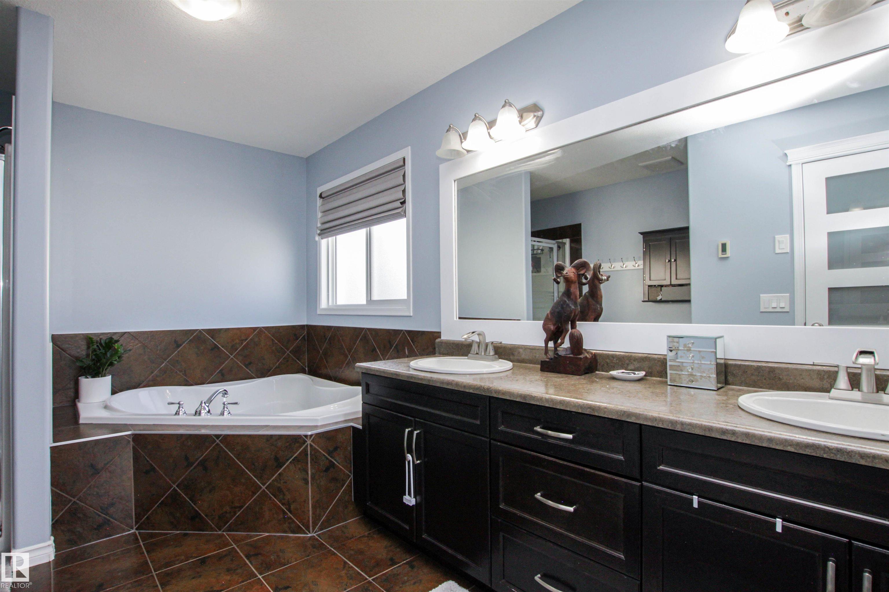 Beautiful FAMILY HOME in Lakeland Ridge on stunning PIE LOT!!! This property is situated on a quiet cul-de-sac and features a large SOUTH facing backyard with new COMPOSITE DECK with gas line for BBQ, fire pit area, hot tub hook-up, and tons of room for kids and pets to play! The beautiful kitchen offers rich cabinetry, granite countertops and stainless steel appliances. Beyond the kitchen is the spacious dining nook and cozy living room with GAS FIREPLACE and tons of windows! Den, powder room and laundry room complete the main floor. Upstairs you will find 4 SPACIOUS BEDROOMS + BONUS ROOM and 4-piece main bath. The primary bedroom offers a 5-piece ensuite with dual sinks, soaker tub, separate shower & heated floors! The basement is 90% complete with large rec area, 3-piece bathroom and 5th bedroom. Additional features include Oversized Double Attached Garage, CENTRAL A/C, Motorized Blinds and Irrigation System! Conveniently located steps to parks and Lakeland Ridge School + quick access to all amenities!