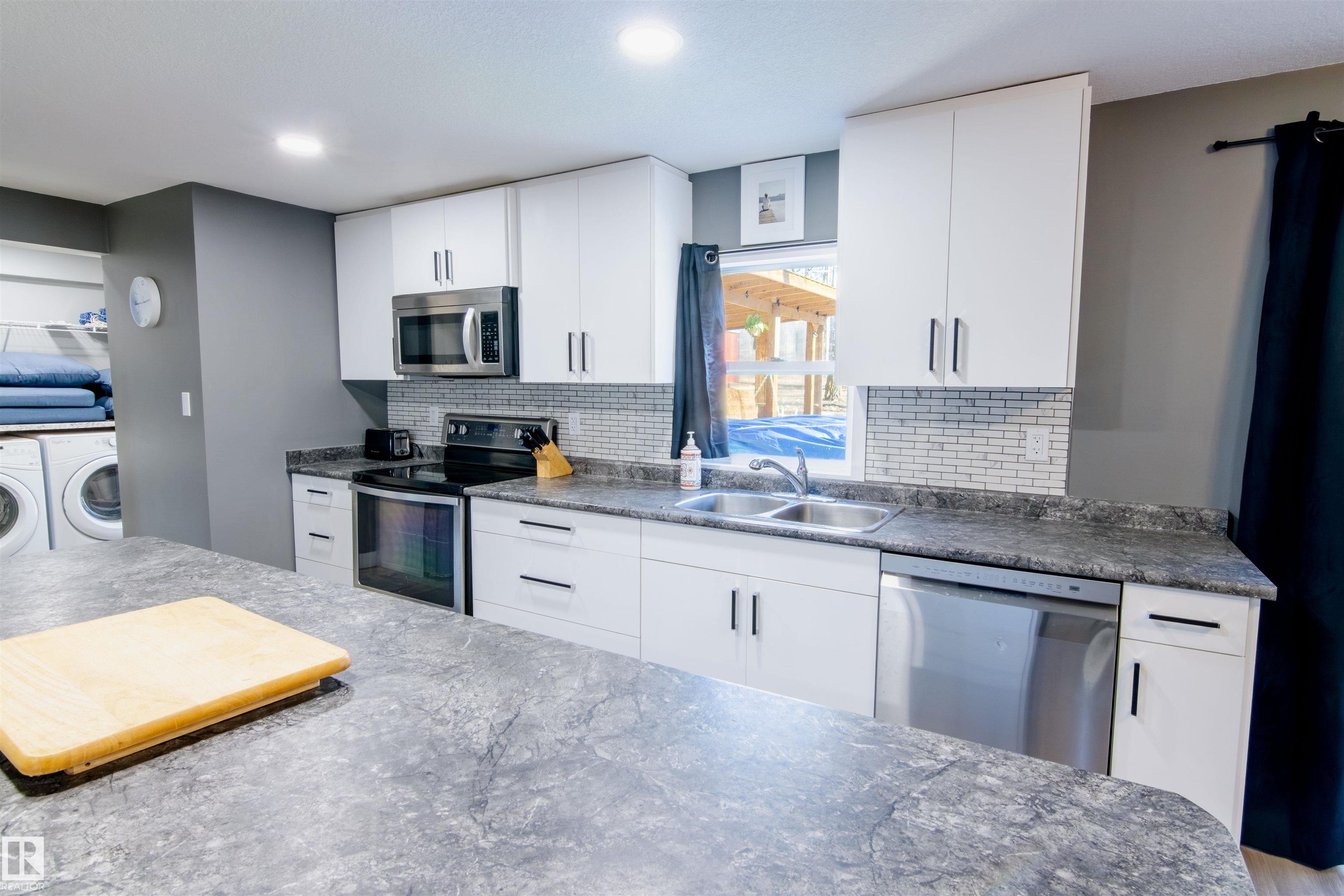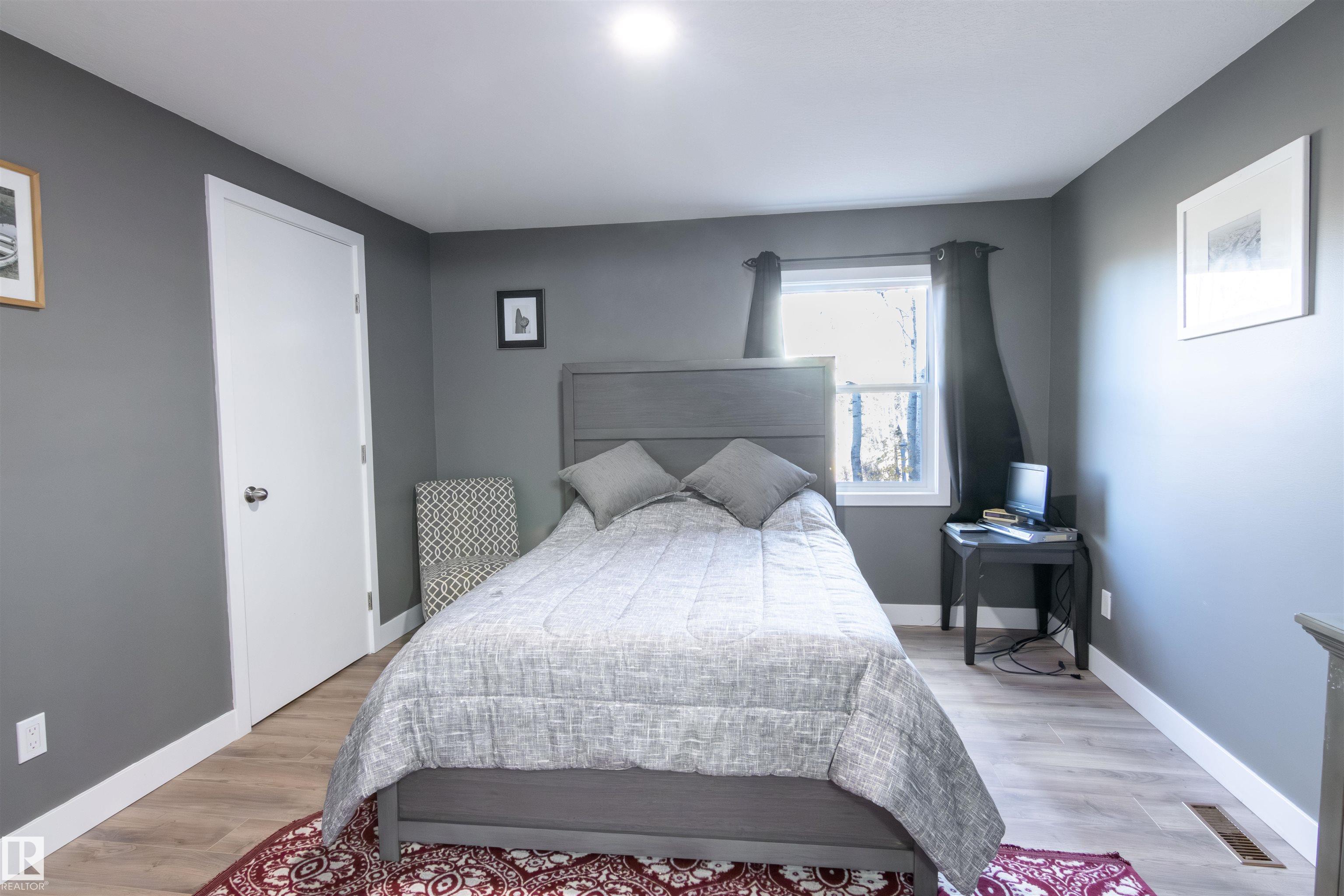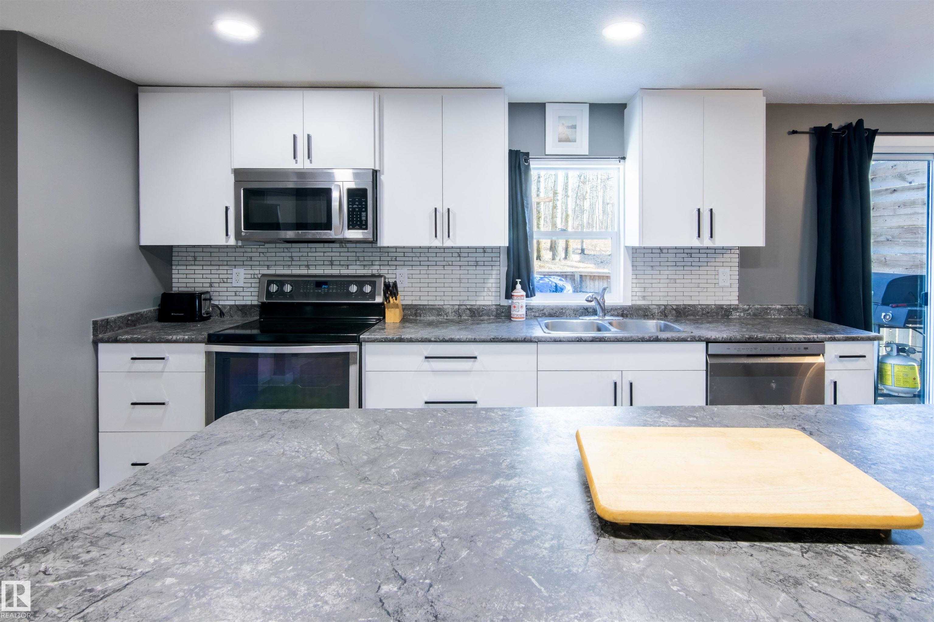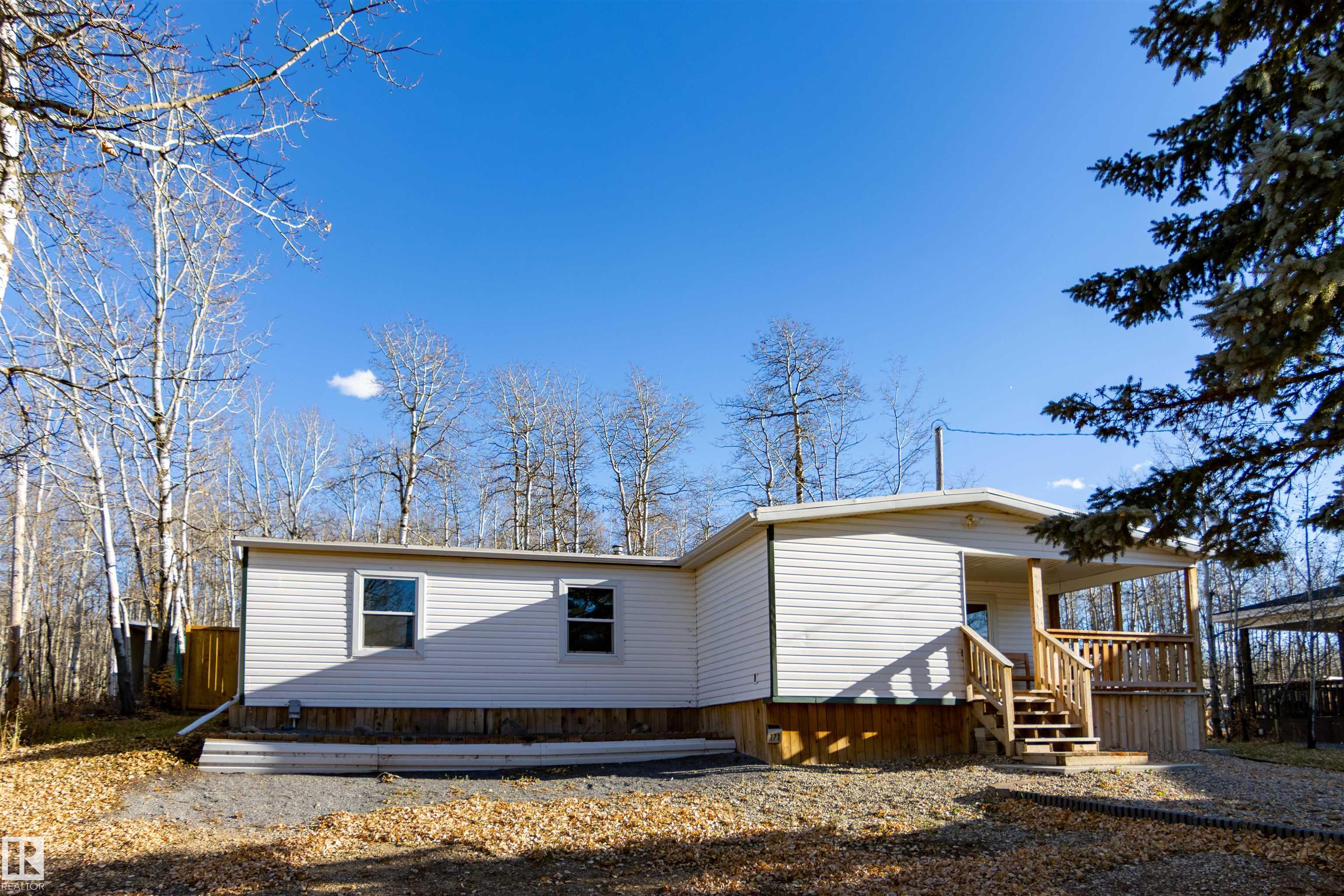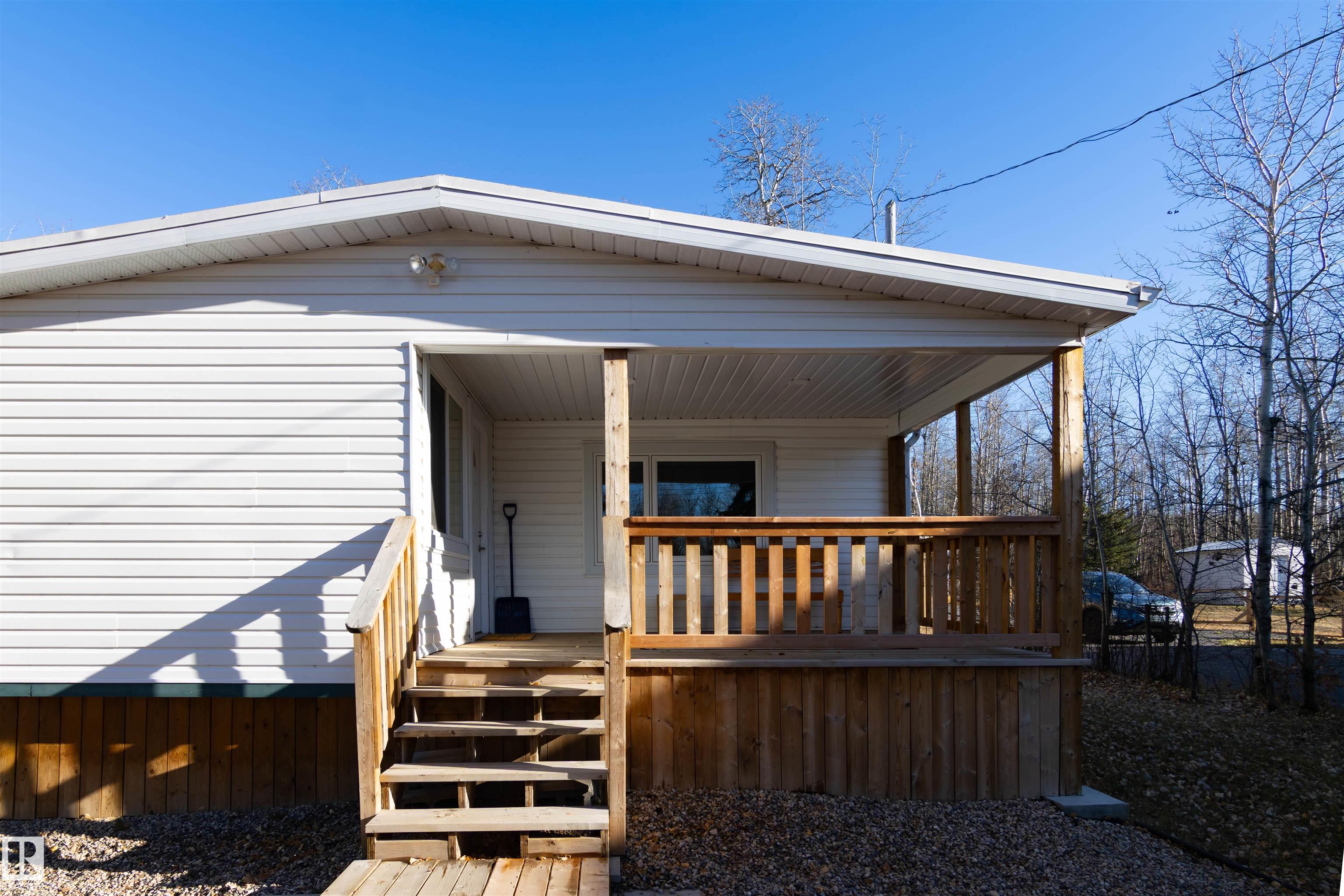 COUNTRY LIVING AT ITS FINEST! Escape the city and fall in love with this beautifully renovated bungalow in the friendly lakeside community of Antler Lake. Sitting on a private 70? x 170? (¼ acre) lot surrounded by trees and trails, this home blends comfort, style, and nature. Inside, everything shines?new flooring, windows, doors, lighting, bathrooms, upgraded insulation, a custom kitchen, and a new patio. The open-concept layout is bright and inviting with a spacious living room, dining area, and stunning kitchen featuring quality s/s appliances, white cabinetry, pot lighting, and a 7-ft island?perfect for family and friends to gather. The primary bedroom offers a 2-pc ensuite, plus two additional bedrooms, laundry, and a mudroom that opens onto a covered 14? x 10? deck. Enjoy evenings around the firepit or peaceful walks through nearby trails. Only 30 minutes to Edmonton?this home offers the perfect balance of quiet country charm and city convenience.