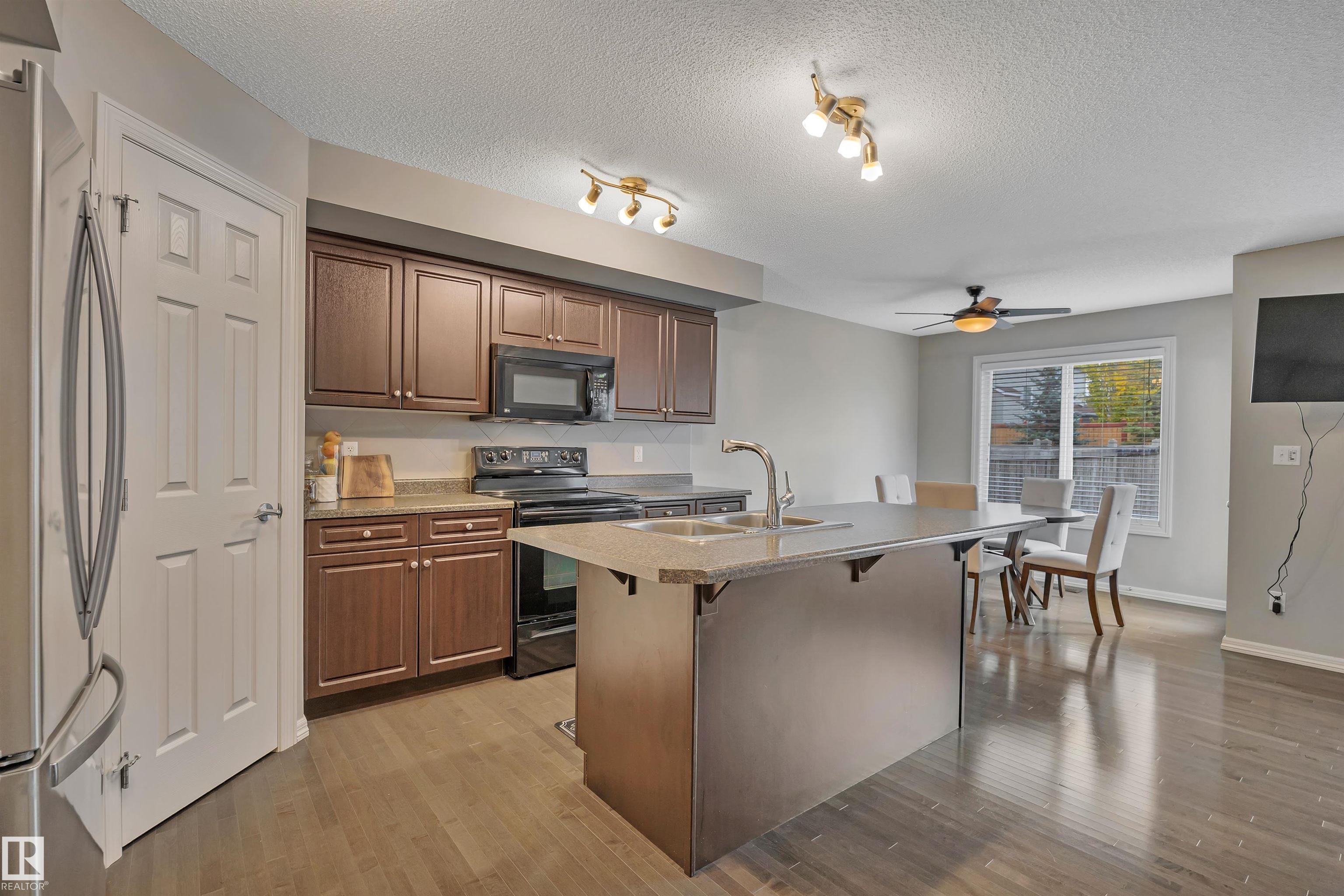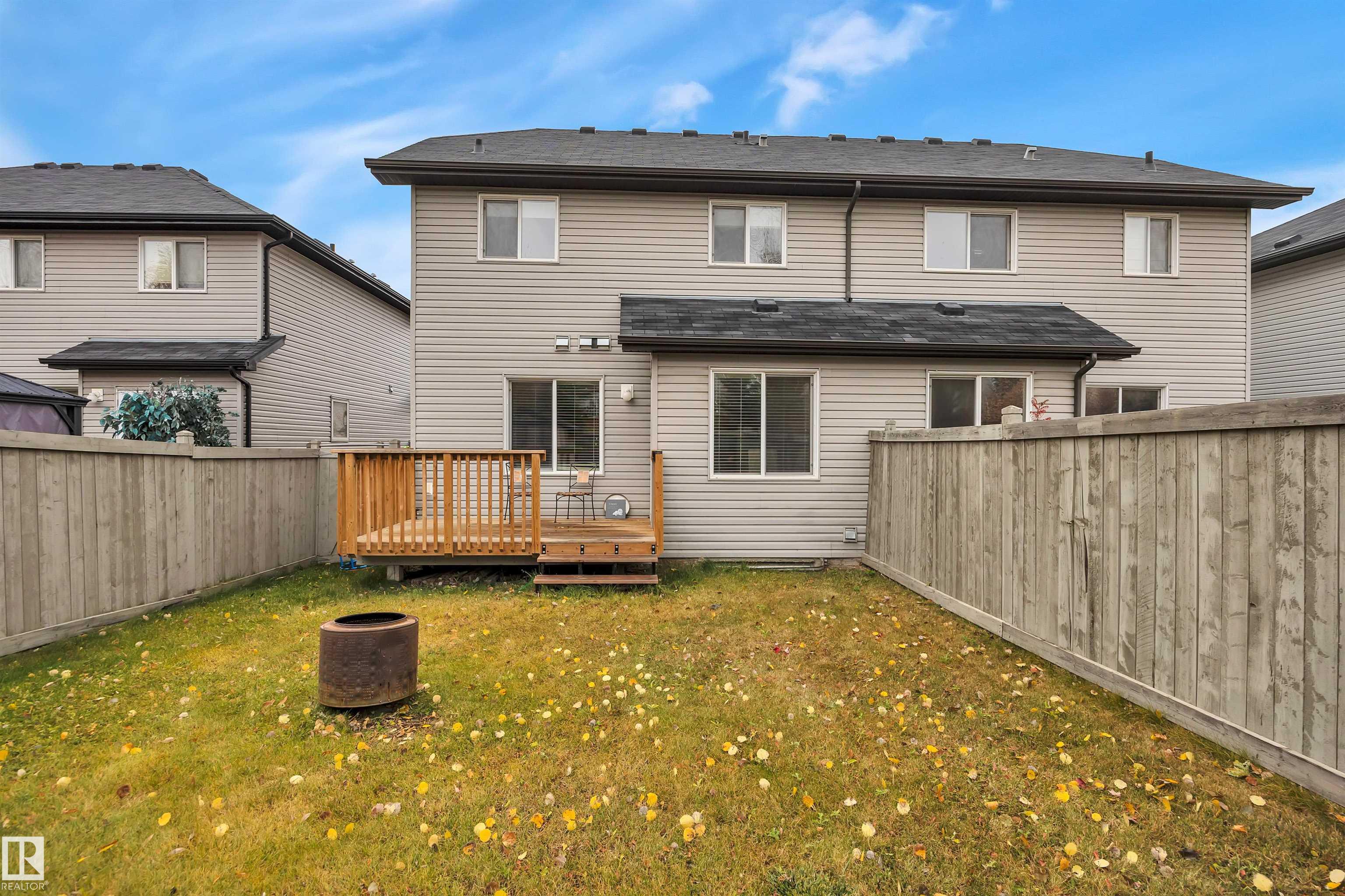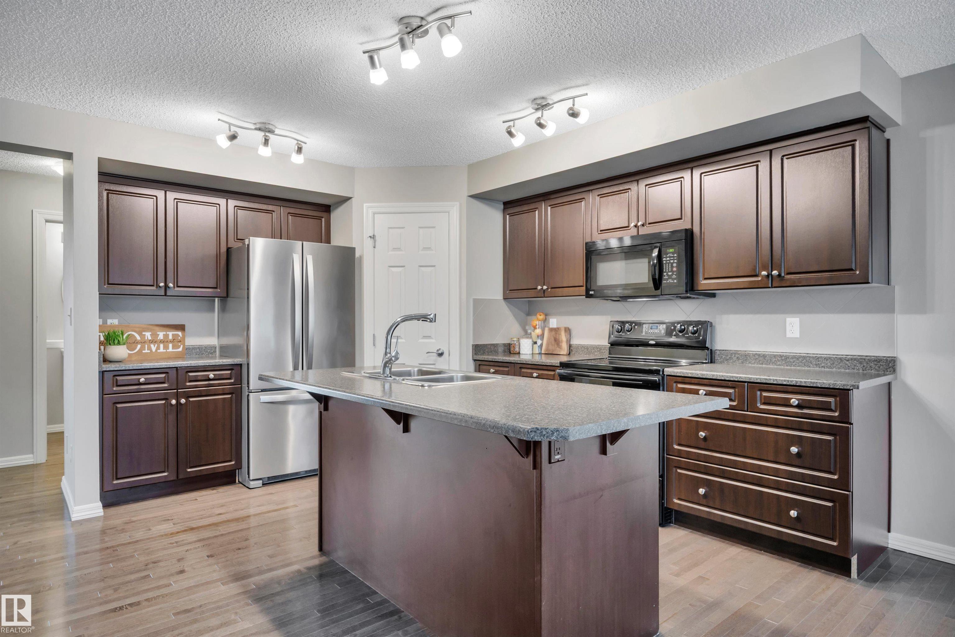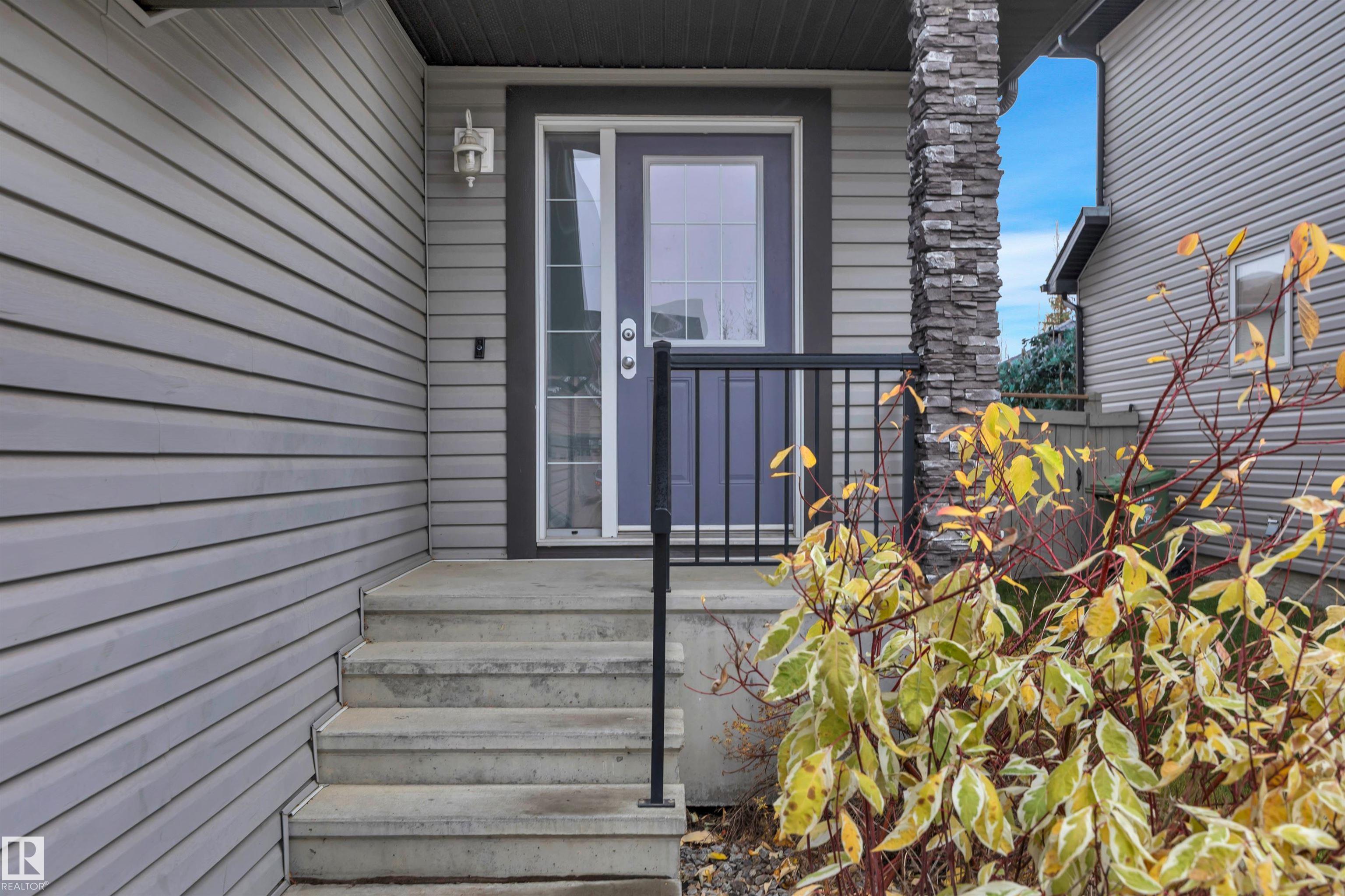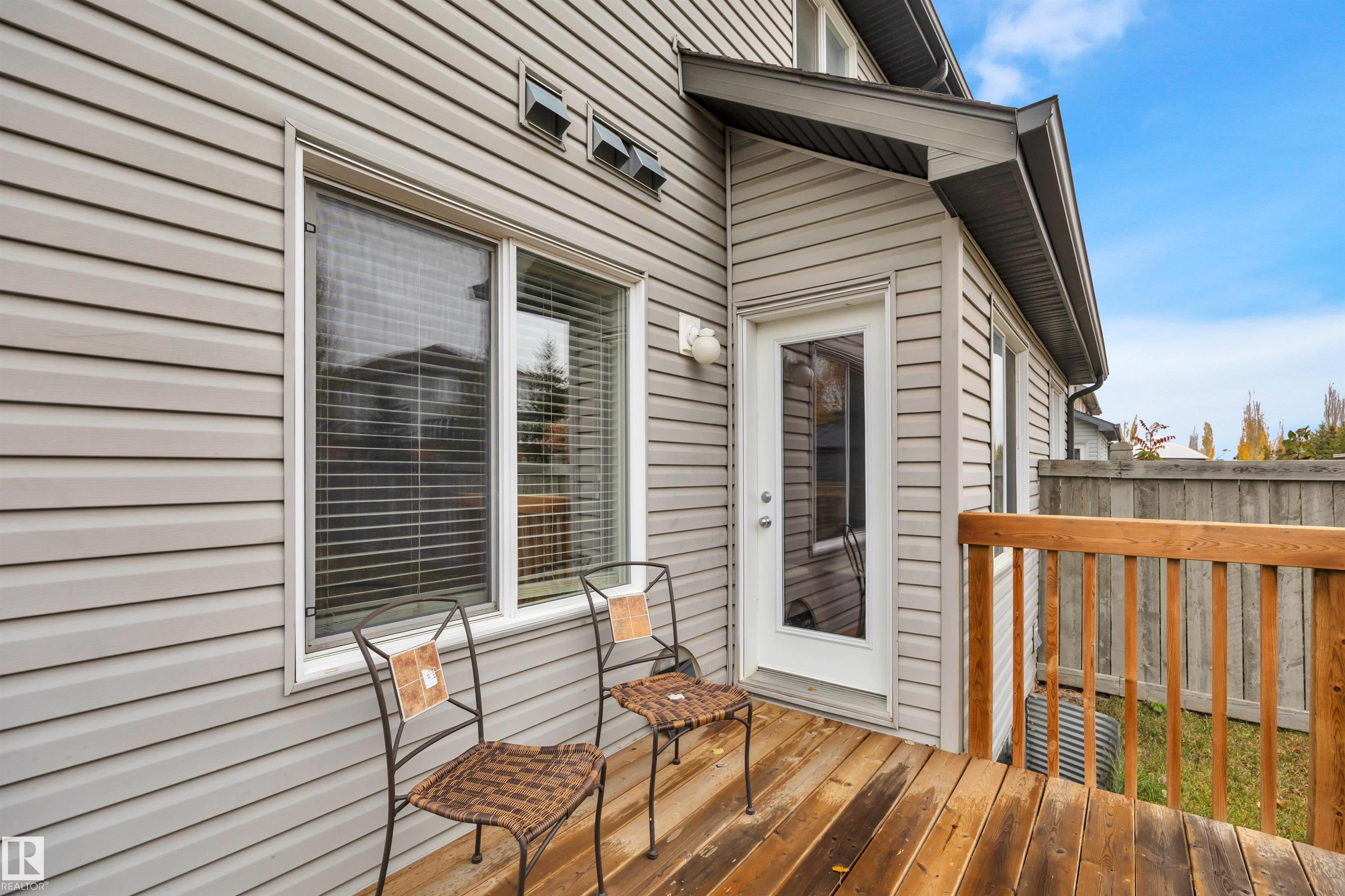 This half duplex is the perfect blend of style and convenience for professionals or first-time buyers! Step inside to find gleaming hardwood floors throughout the main level, which features a handy walk-through pantry, main floor laundry & a 2 pce bathroom. Kitchen has a large island with sink, great lighting, looking onto the dinette with a garden door to back deck. Space is open concept, inviting you to the living room. Upstairs, you'll find three comfortable bedrooms with plush carpeting, including a generous primary bdrm with a 4 pce ensuite & walk in closet. An additional 4-piece bathroom serves the other rooms. Enjoy outdoor living on the deck, leading to a yard that backs onto a tranquil trail.  A/C & water softener system recently added. The location is unbeatable: you're just 15 minutes from the EIA, and a simple street crossing brings you to a school, parks, trails, & playgrounds! Complete with a single attached finished garage, located on a quite street, this home makes life easy & affordable.