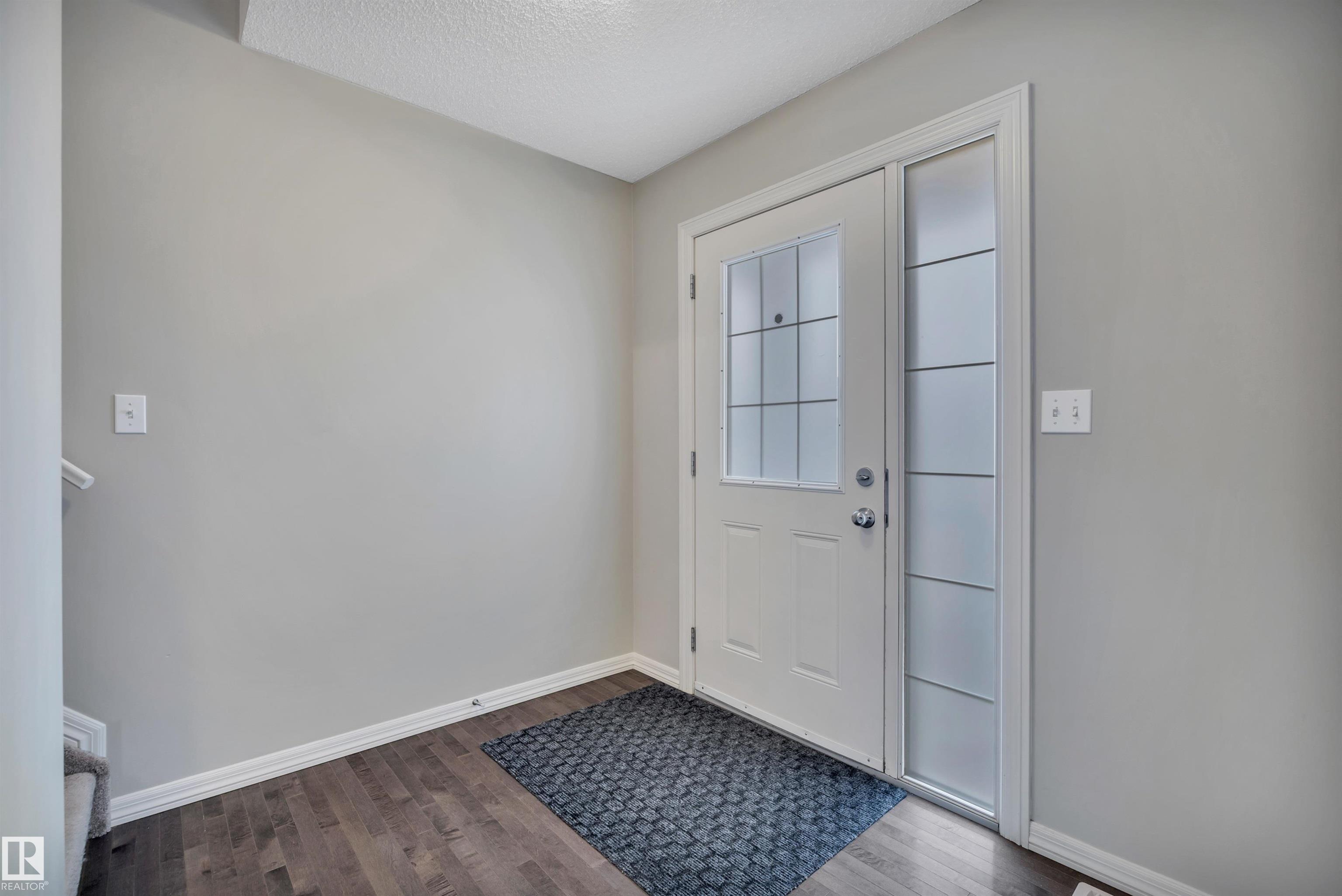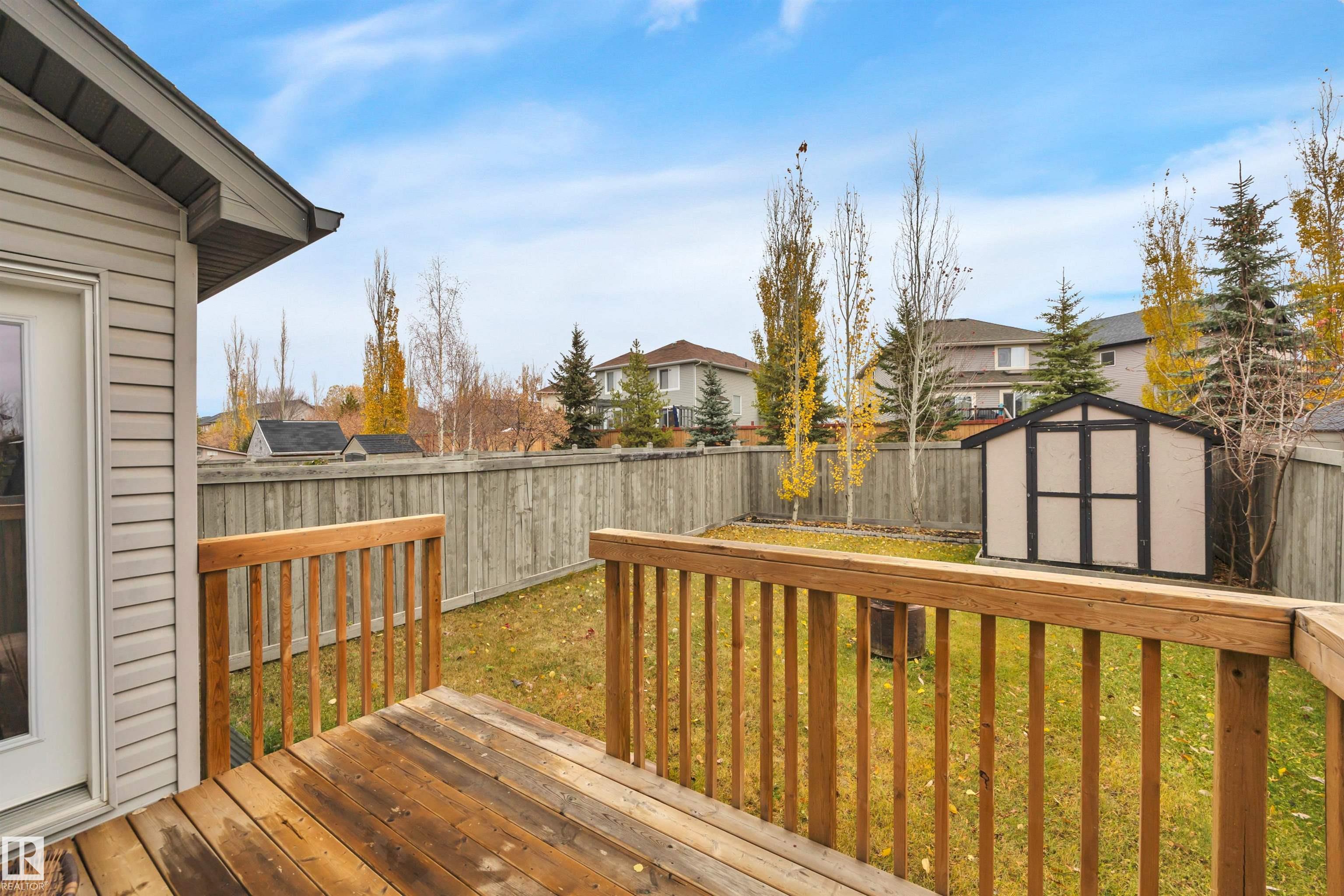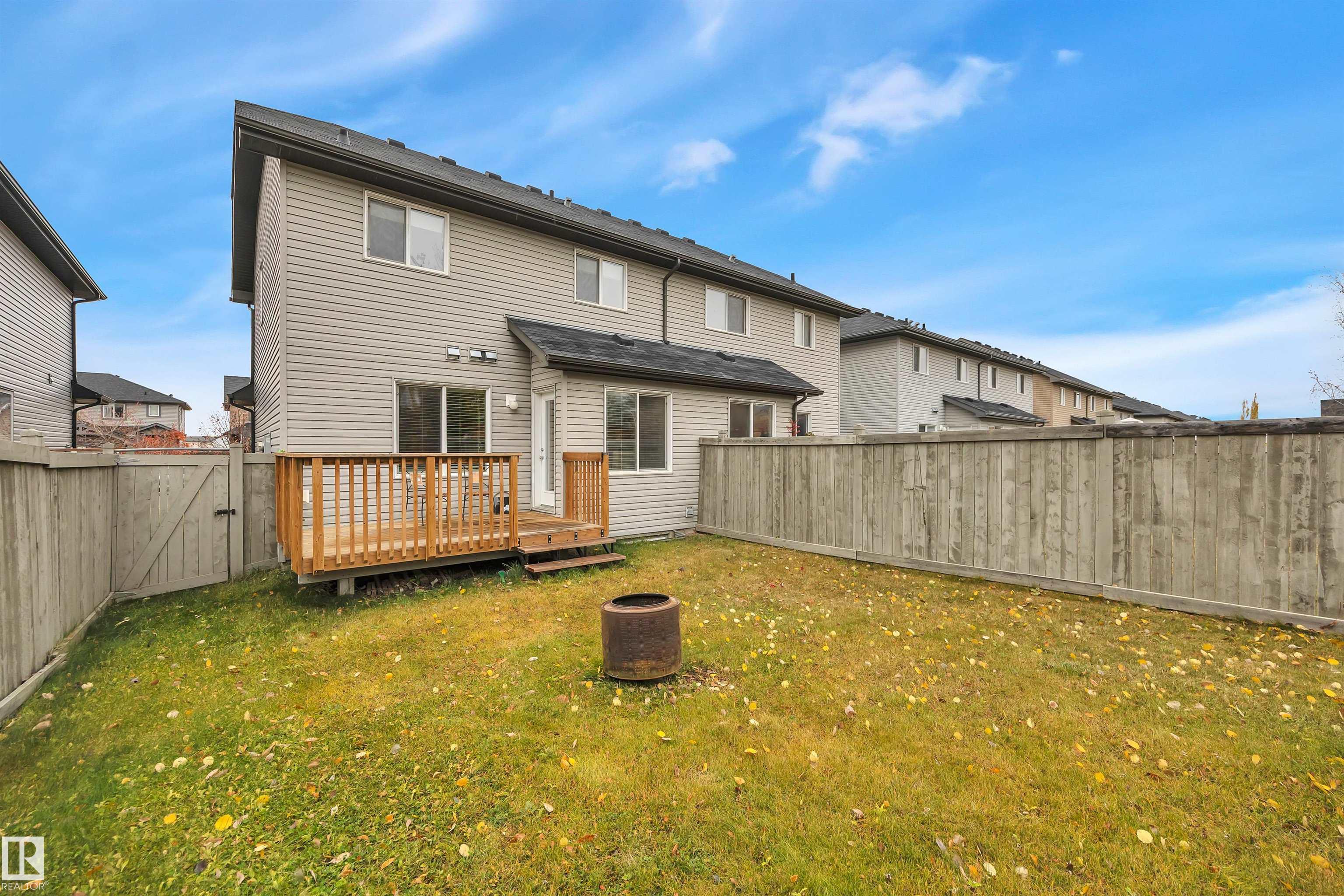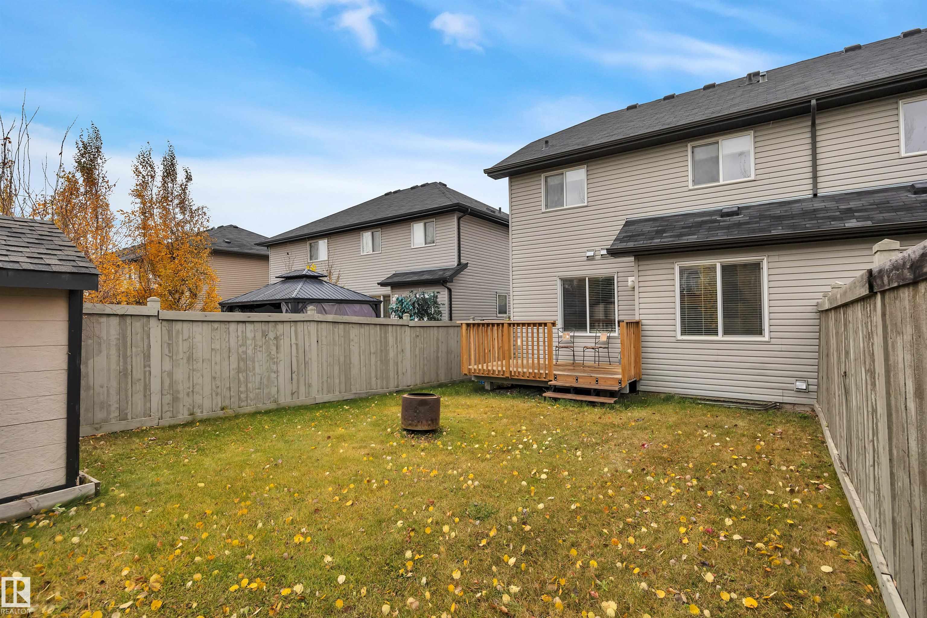 This half duplex is the perfect blend of style and convenience for professionals or first-time buyers! Step inside to find gleaming hardwood floors throughout the main level, which features a handy walk-through pantry, main floor laundry & a 2 pce bathroom. Kitchen has a large island with sink, great lighting, looking onto the dinette with a garden door to back deck. Space is open concept, inviting you to the living room. Upstairs, you'll find three comfortable bedrooms with plush carpeting, including a generous primary bdrm with a 4 pce ensuite & walk in closet. An additional 4-piece bathroom serves the other rooms. Enjoy outdoor living on the deck, leading to a yard that backs onto a tranquil trail.  A/C & water softener system recently added. The location is unbeatable: you're just 15 minutes from the EIA, and a simple street crossing brings you to a school, parks, trails, & playgrounds! Complete with a single attached finished garage, located on a quite street, this home makes life easy & affordable.