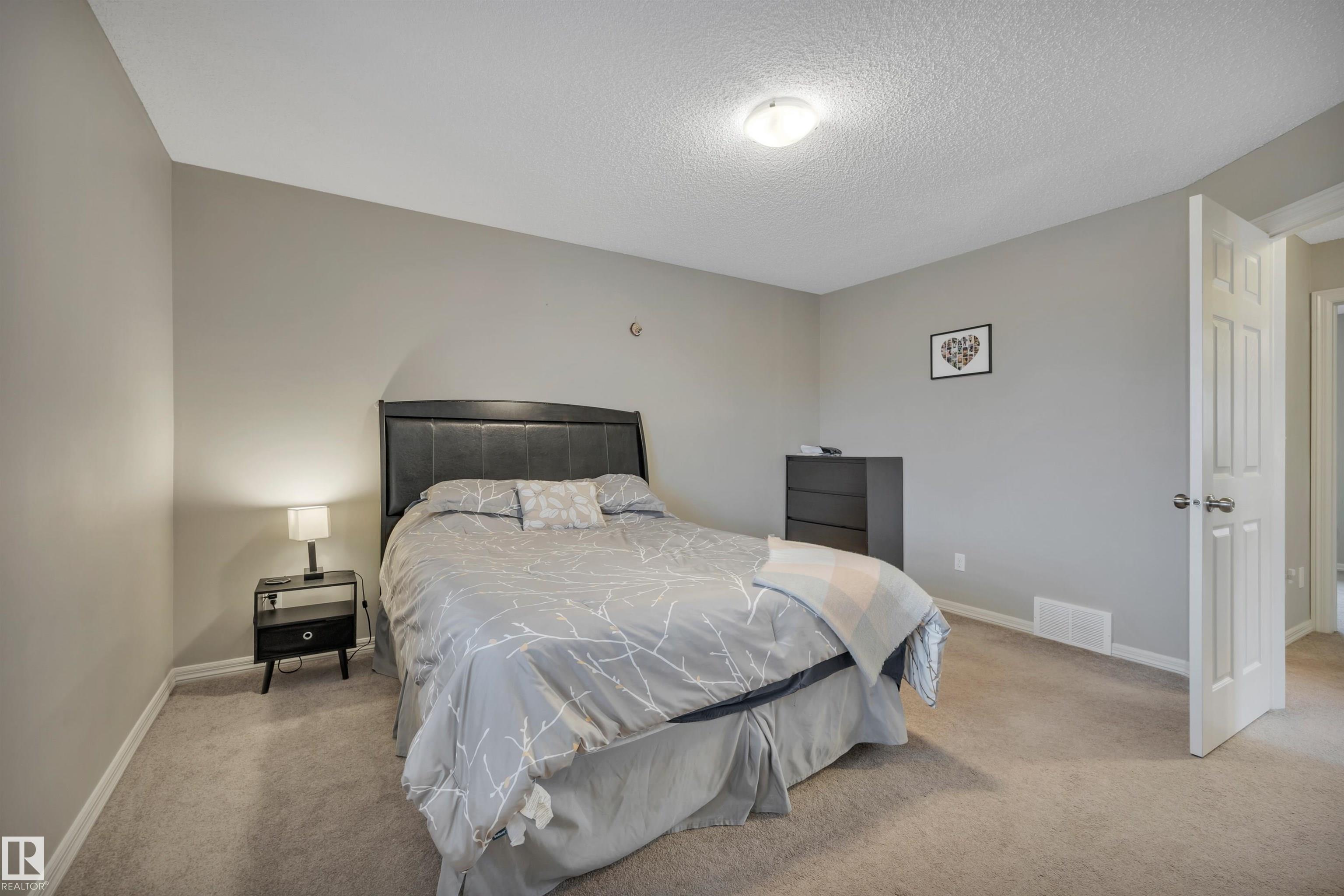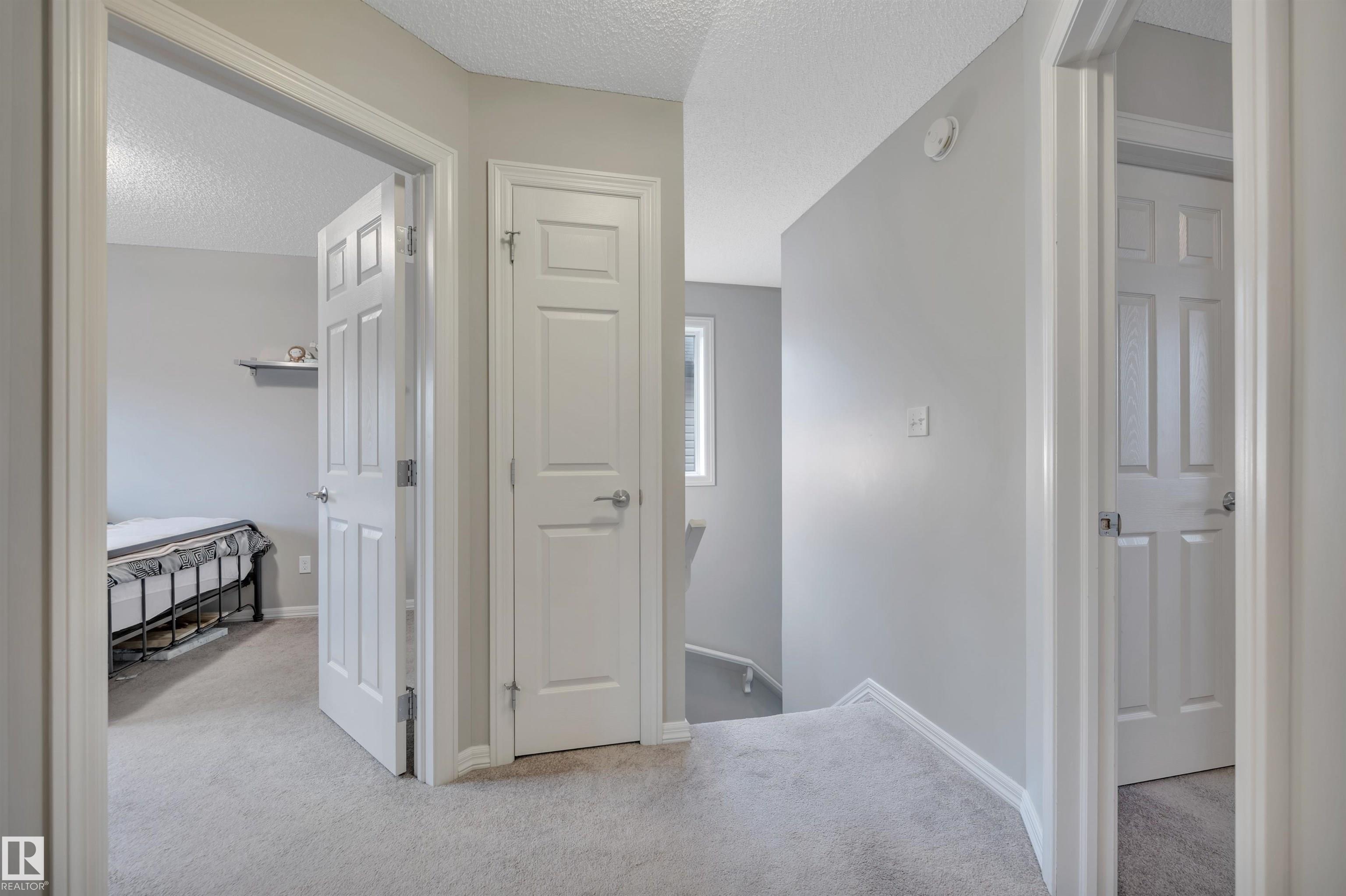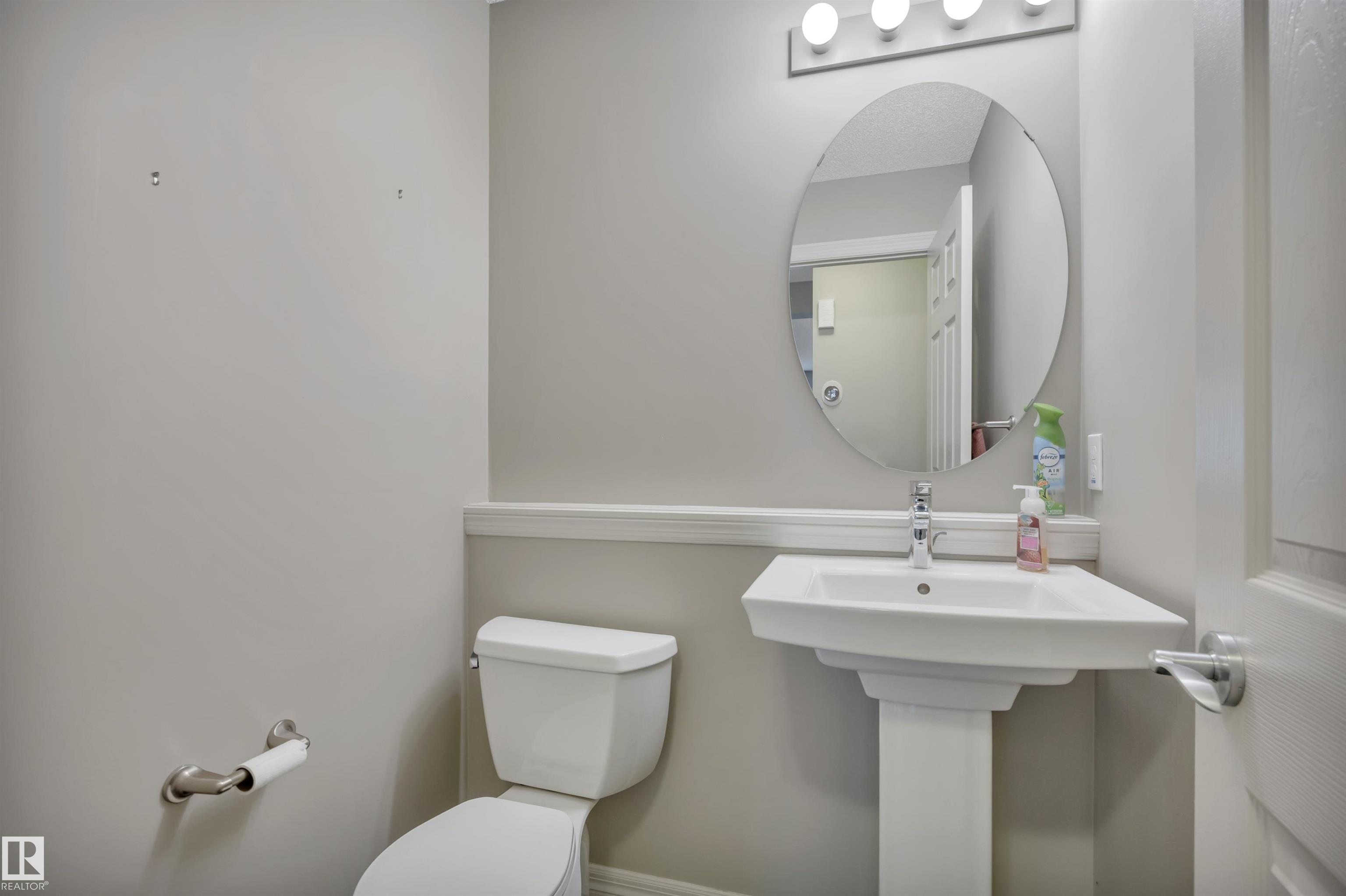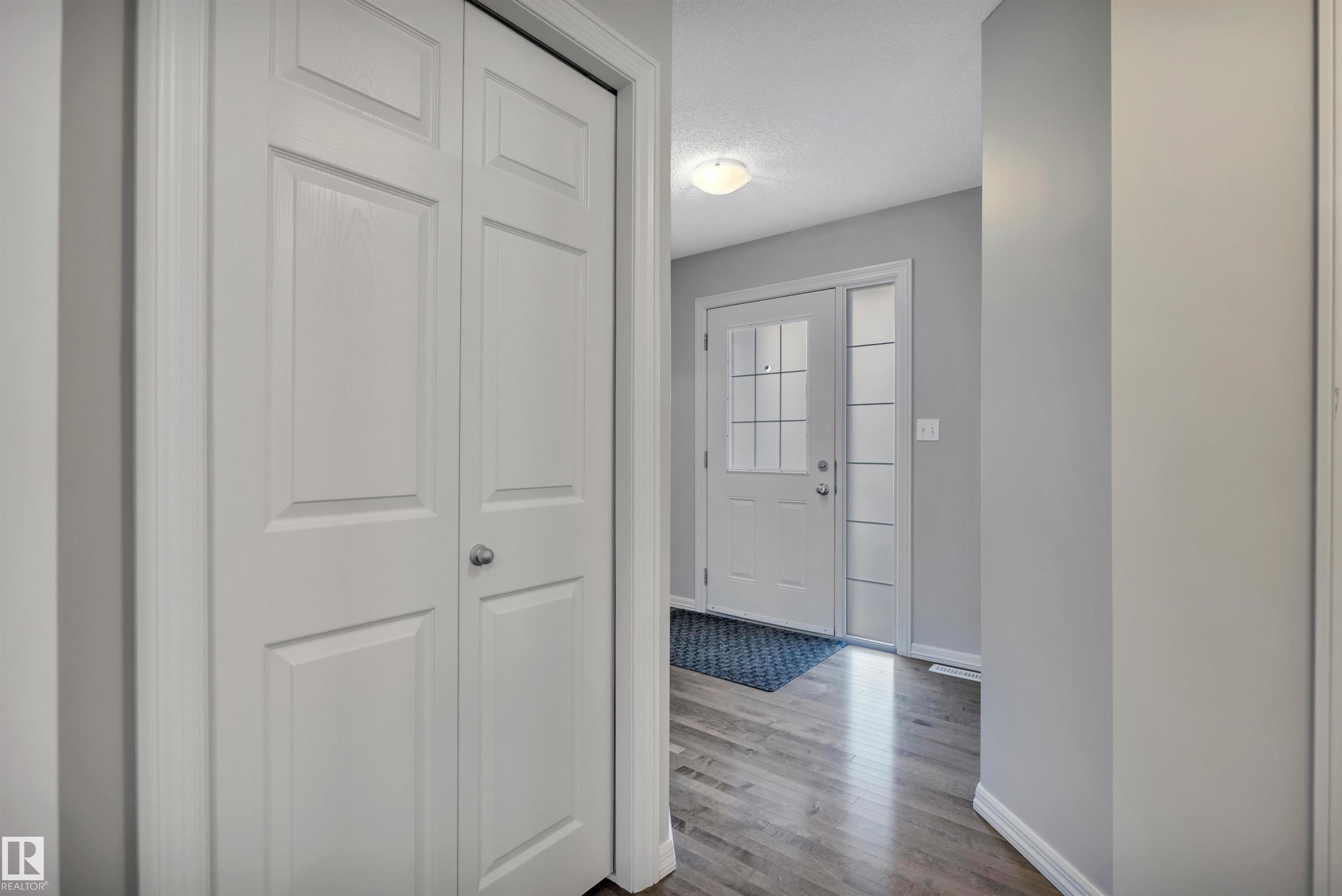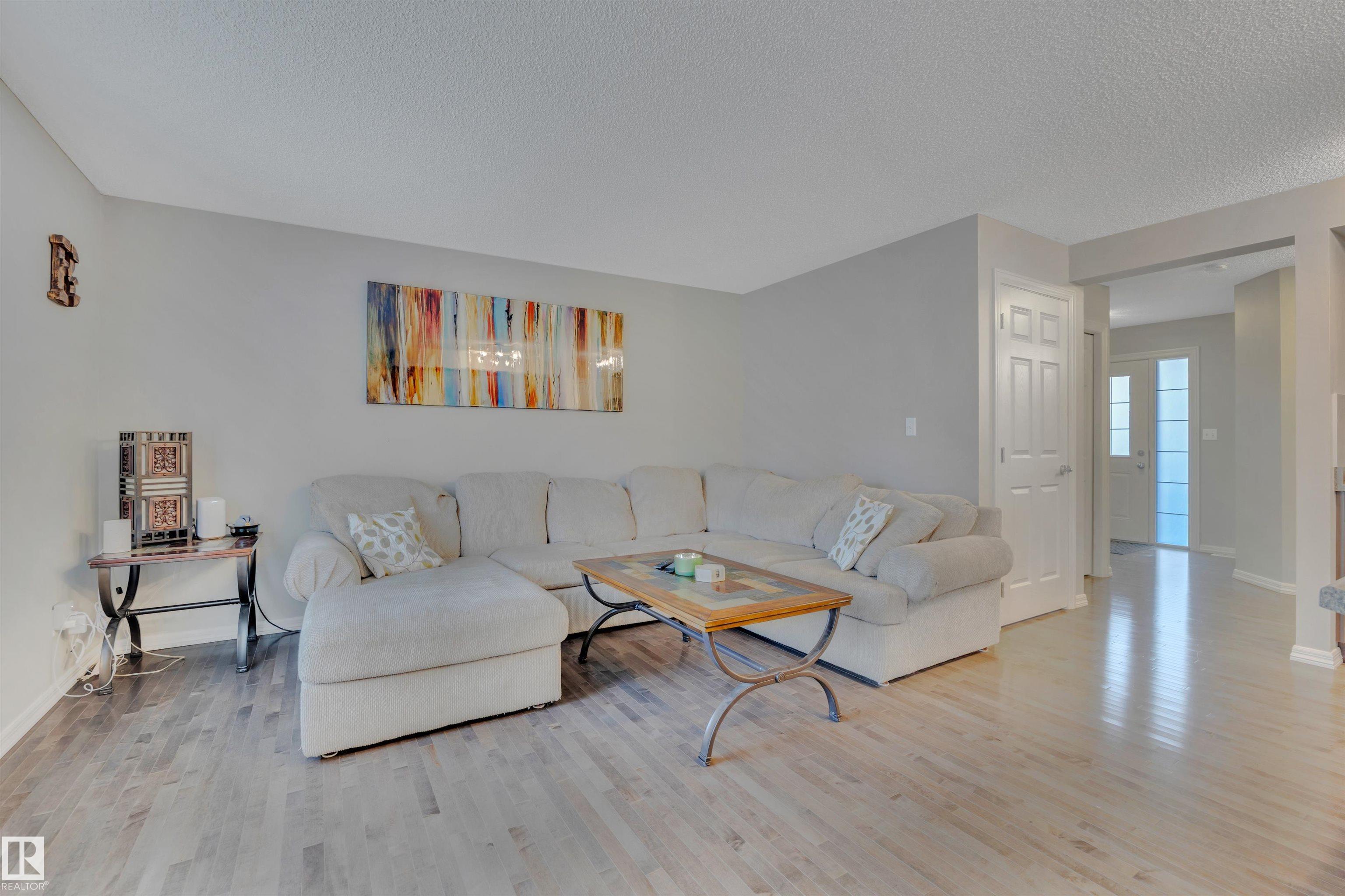 This half duplex is the perfect blend of style and convenience for professionals or first-time buyers! Step inside to find gleaming hardwood floors throughout the main level, which features a handy walk-through pantry, main floor laundry & a 2 pce bathroom. Kitchen has a large island with sink, great lighting, looking onto the dinette with a garden door to back deck. Space is open concept, inviting you to the living room. Upstairs, you'll find three comfortable bedrooms with plush carpeting, including a generous primary bdrm with a 4 pce ensuite & walk in closet. An additional 4-piece bathroom serves the other rooms. Enjoy outdoor living on the deck, leading to a yard that backs onto a tranquil trail.  A/C & water softener system recently added. The location is unbeatable: you're just 15 minutes from the EIA, and a simple street crossing brings you to a school, parks, trails, & playgrounds! Complete with a single attached finished garage, located on a quite street, this home makes life easy & affordable.
