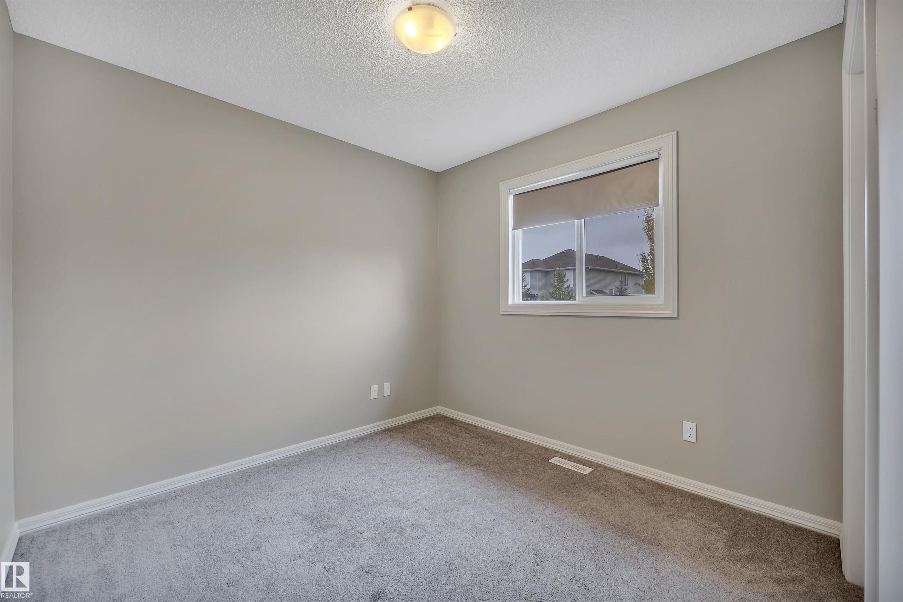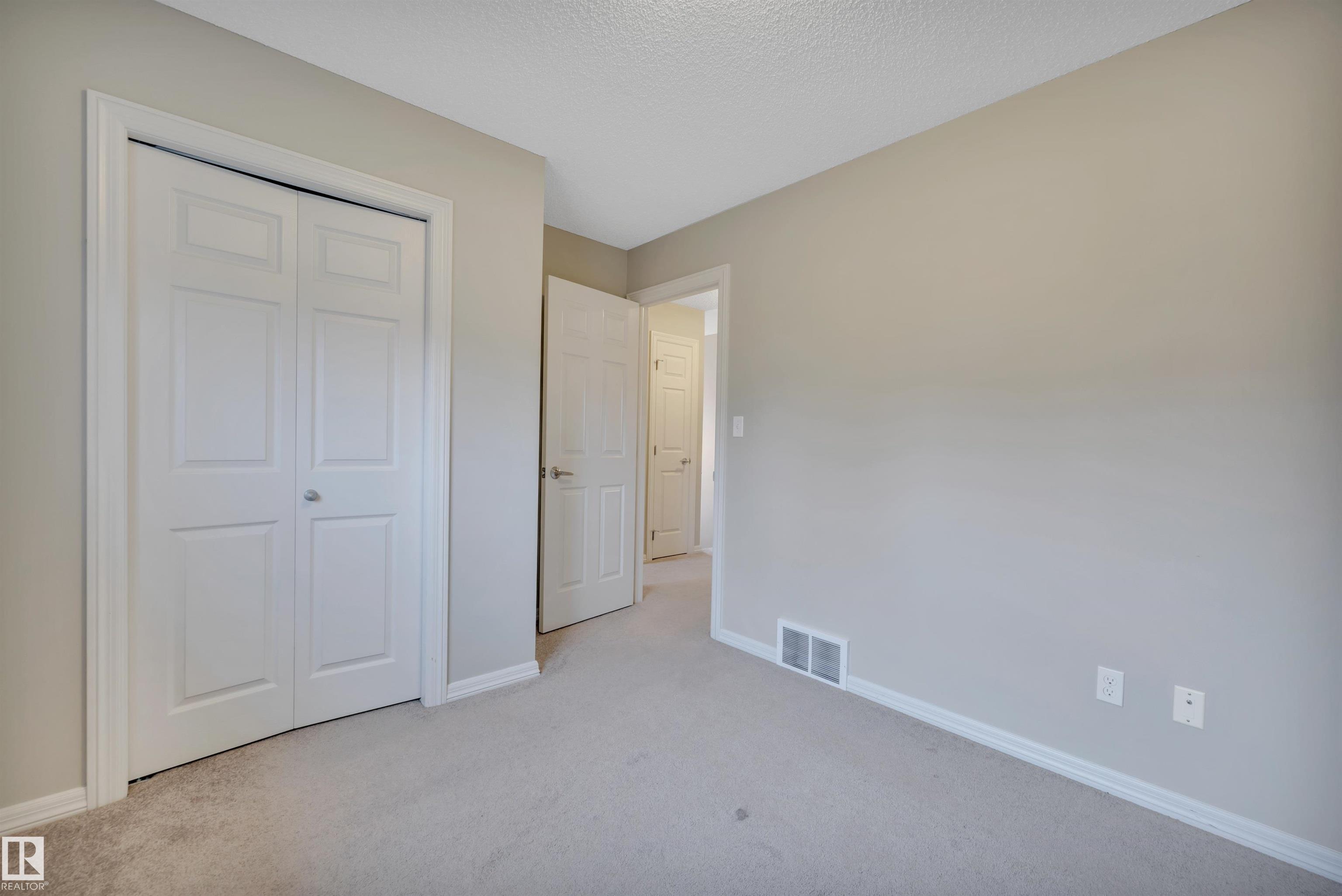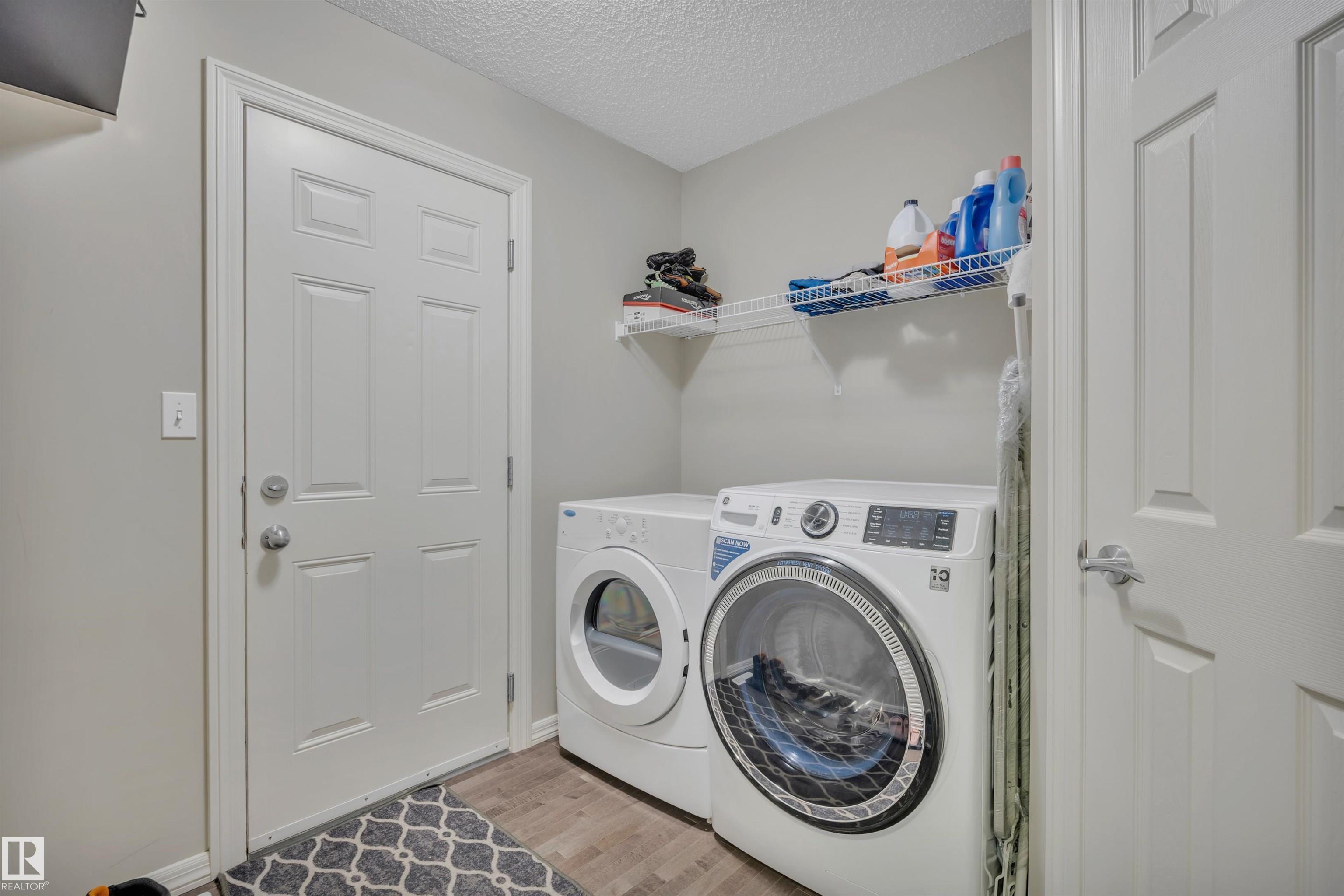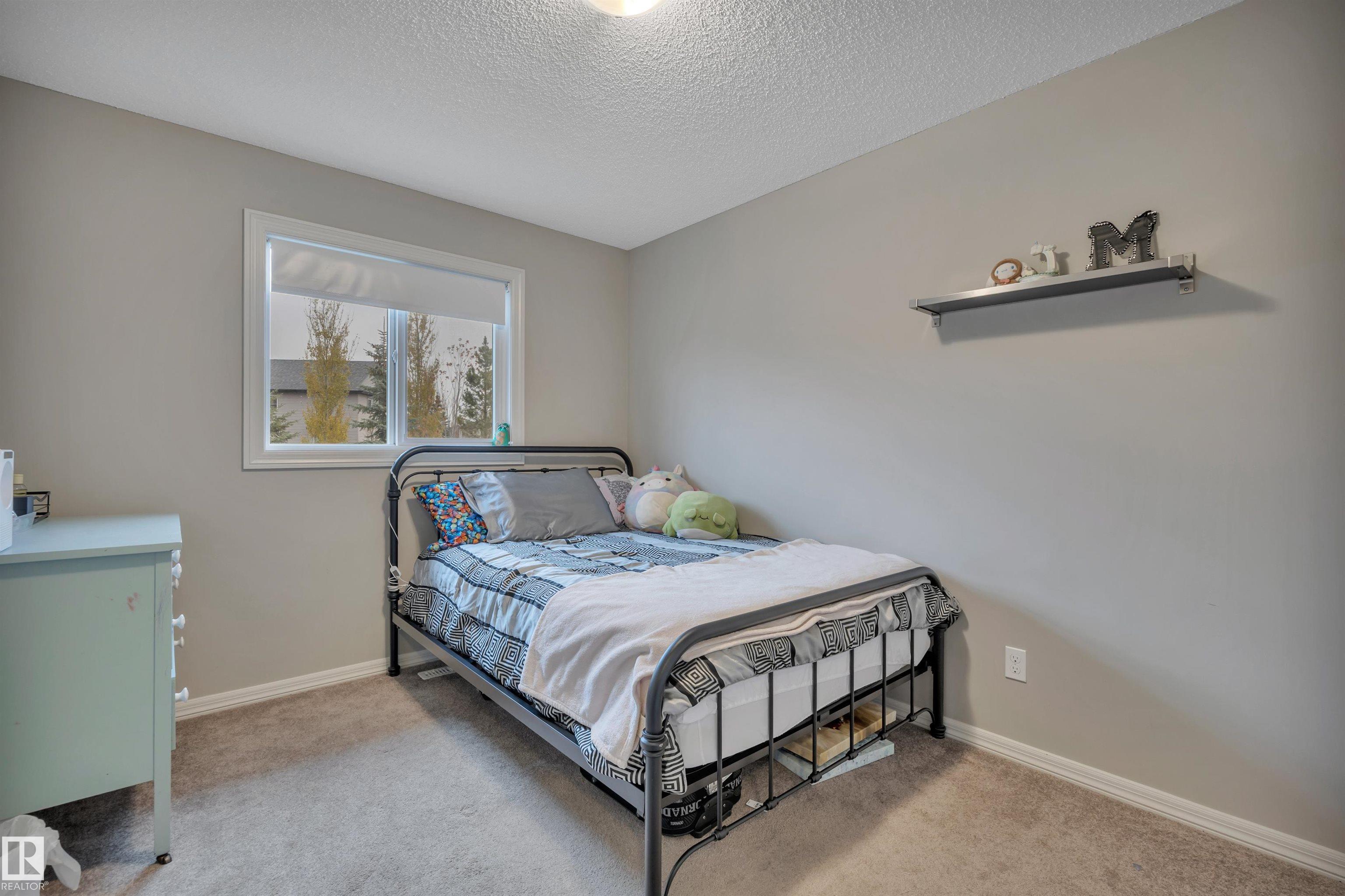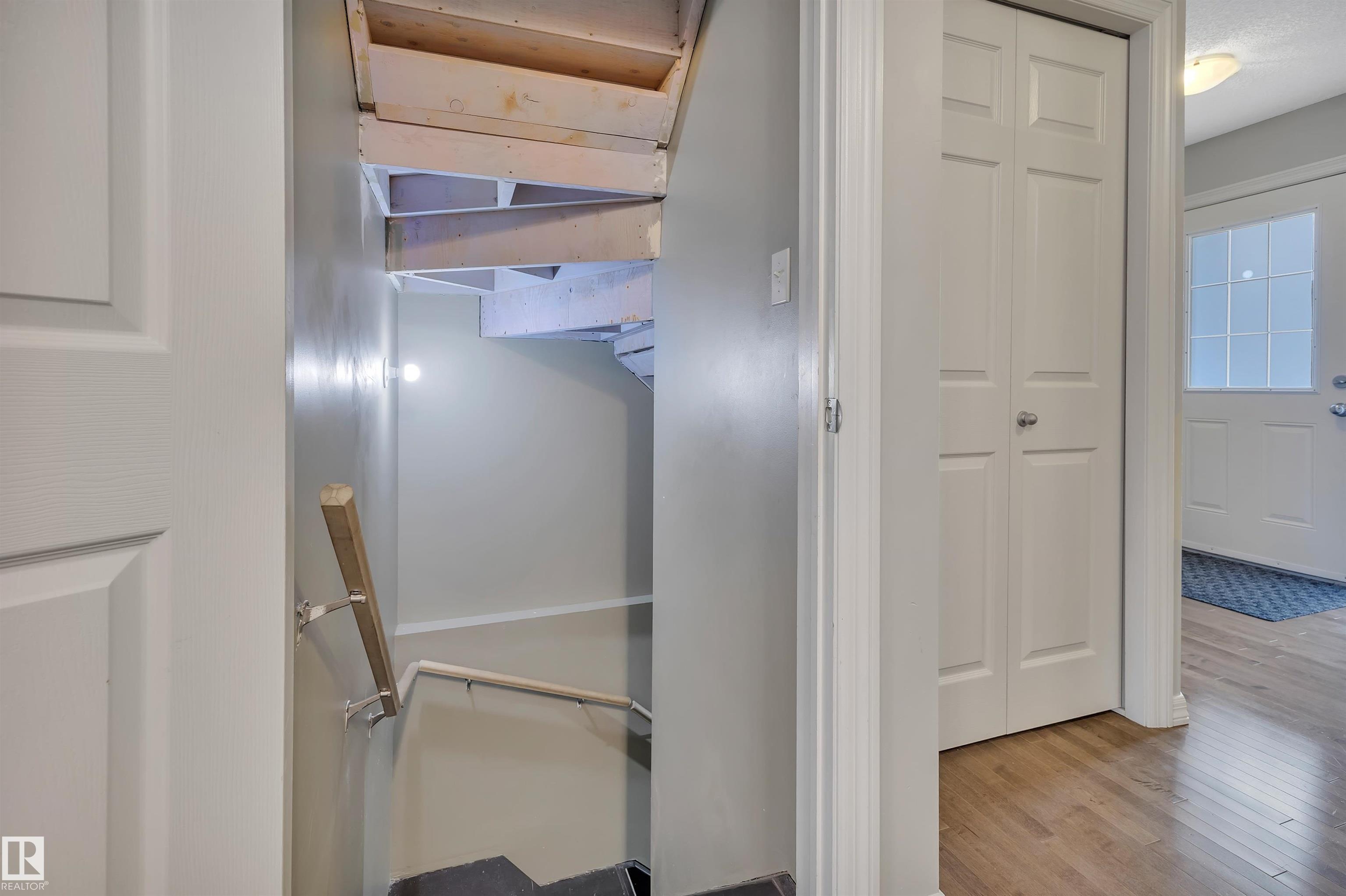 This half duplex is the perfect blend of style and convenience for professionals or first-time buyers! Step inside to find gleaming hardwood floors throughout the main level, which features a handy walk-through pantry, main floor laundry & a 2 pce bathroom. Kitchen has a large island with sink, great lighting, looking onto the dinette with a garden door to back deck. Space is open concept, inviting you to the living room. Upstairs, you'll find three comfortable bedrooms with plush carpeting, including a generous primary bdrm with a 4 pce ensuite & walk in closet. An additional 4-piece bathroom serves the other rooms. Enjoy outdoor living on the deck, leading to a yard that backs onto a tranquil trail.  A/C & water softener system recently added. The location is unbeatable: you're just 15 minutes from the EIA, and a simple street crossing brings you to a school, parks, trails, & playgrounds! Complete with a single attached finished garage, located on a quite street, this home makes life easy & affordable.