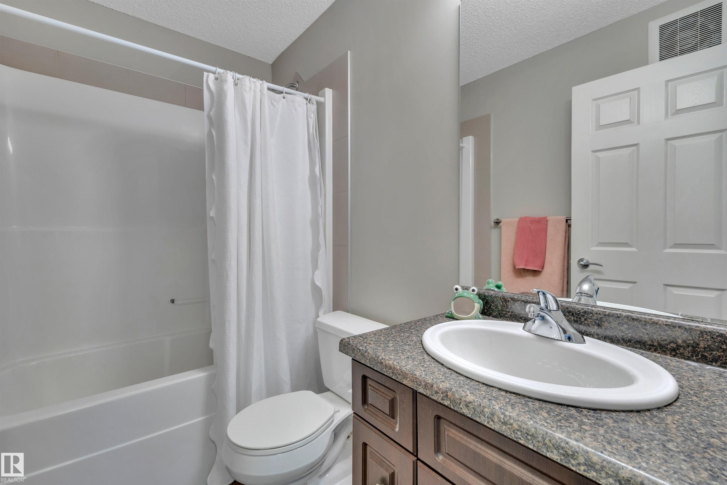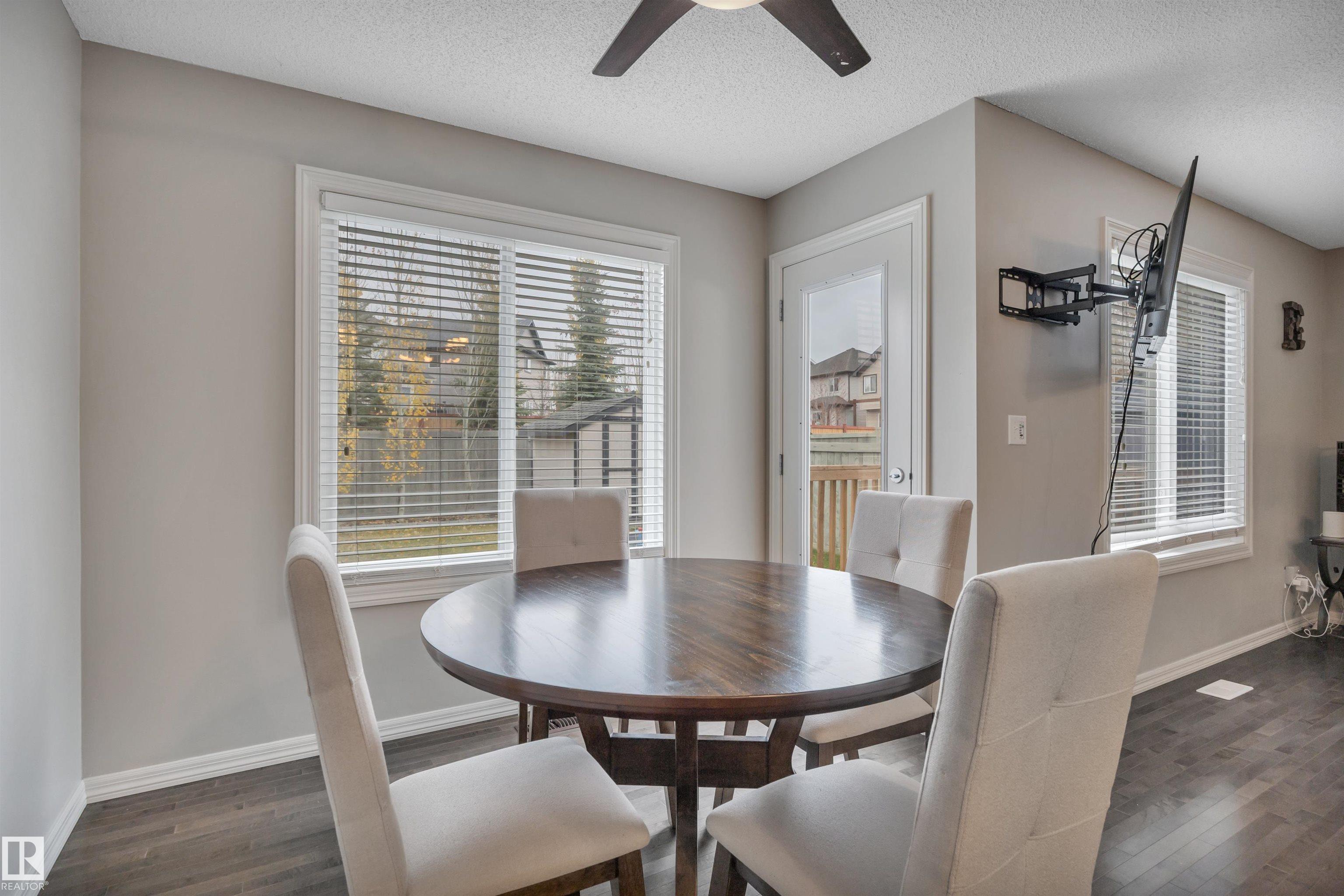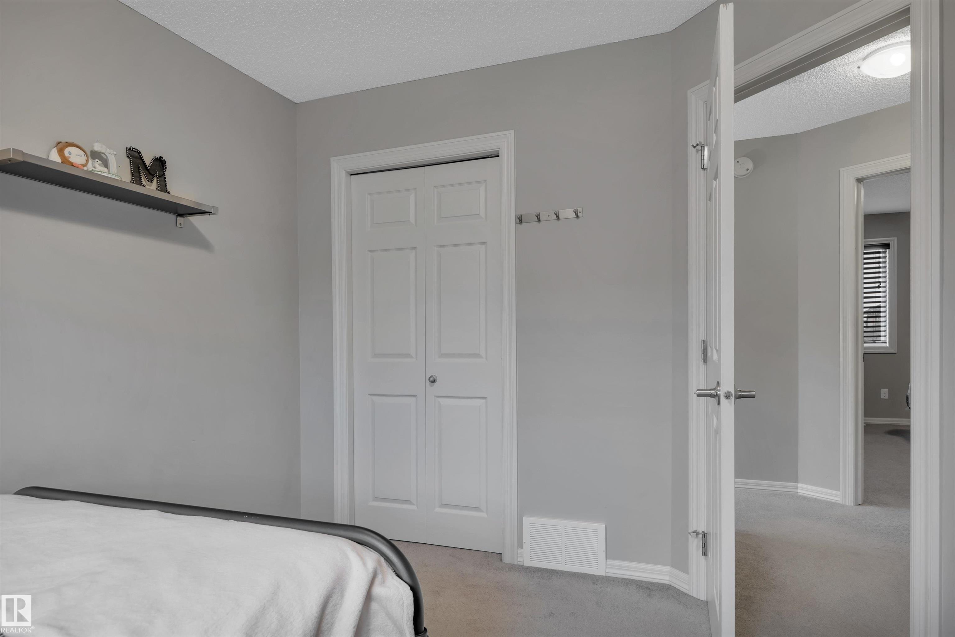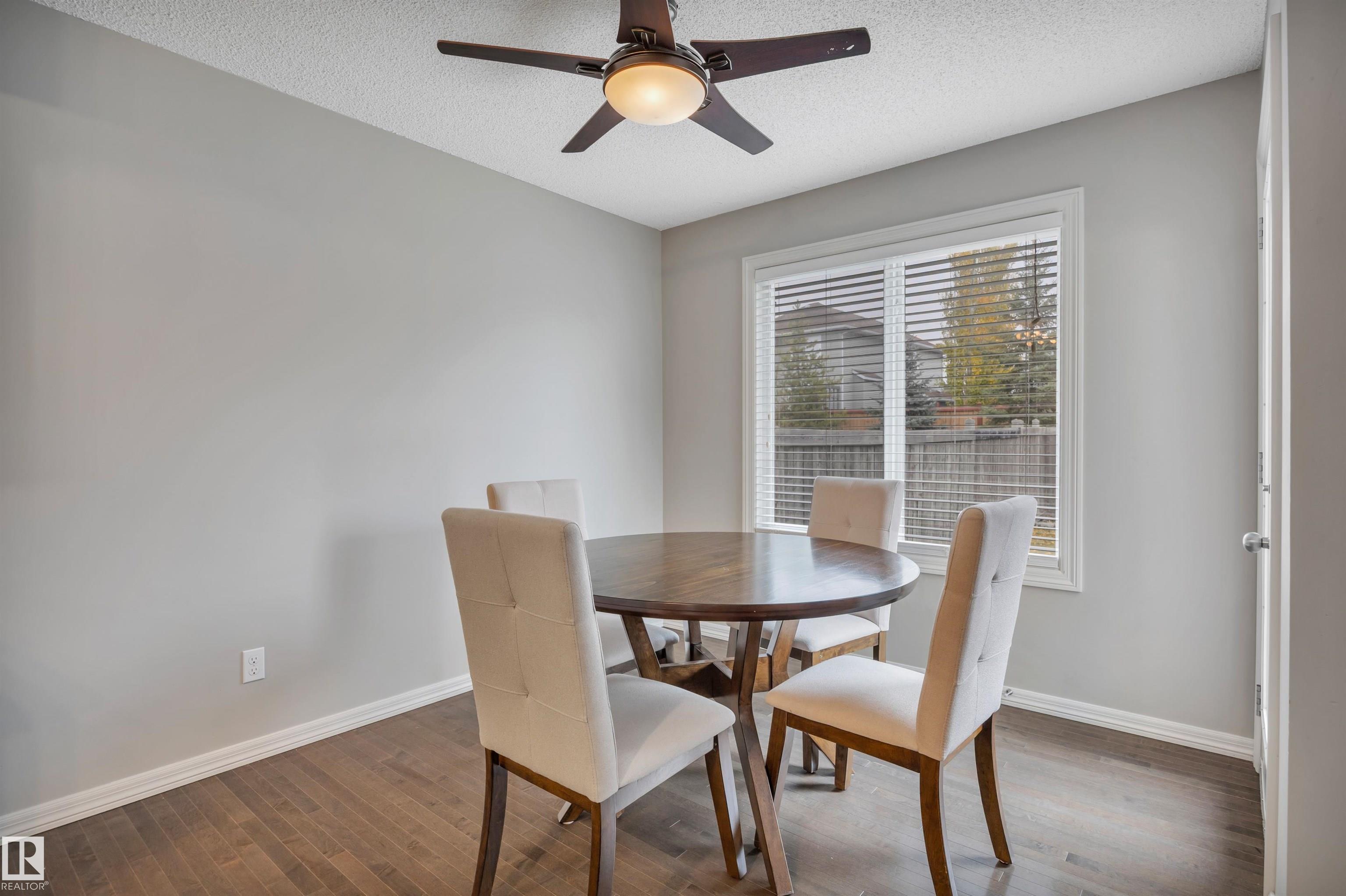 This half duplex is the perfect blend of style and convenience for professionals or first-time buyers! Step inside to find gleaming hardwood floors throughout the main level, which features a handy walk-through pantry, main floor laundry & a 2 pce bathroom. Kitchen has a large island with sink, great lighting, looking onto the dinette with a garden door to back deck. Space is open concept, inviting you to the living room. Upstairs, you'll find three comfortable bedrooms with plush carpeting, including a generous primary bdrm with a 4 pce ensuite & walk in closet. An additional 4-piece bathroom serves the other rooms. Enjoy outdoor living on the deck, leading to a yard that backs onto a tranquil trail.  A/C & water softener system recently added. The location is unbeatable: you're just 15 minutes from the EIA, and a simple street crossing brings you to a school, parks, trails, & playgrounds! Complete with a single attached finished garage, located on a quite street, this home makes life easy & affordable.