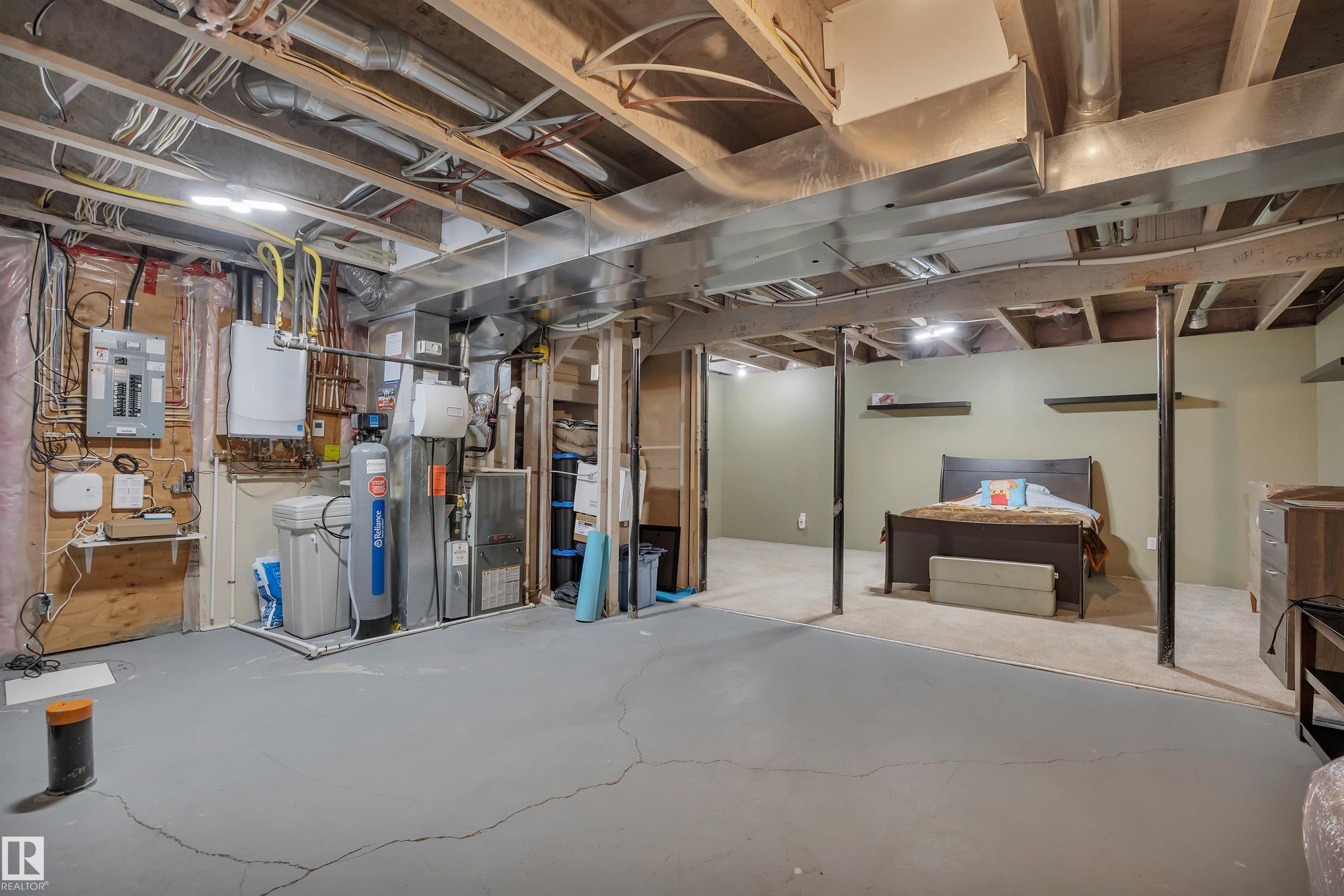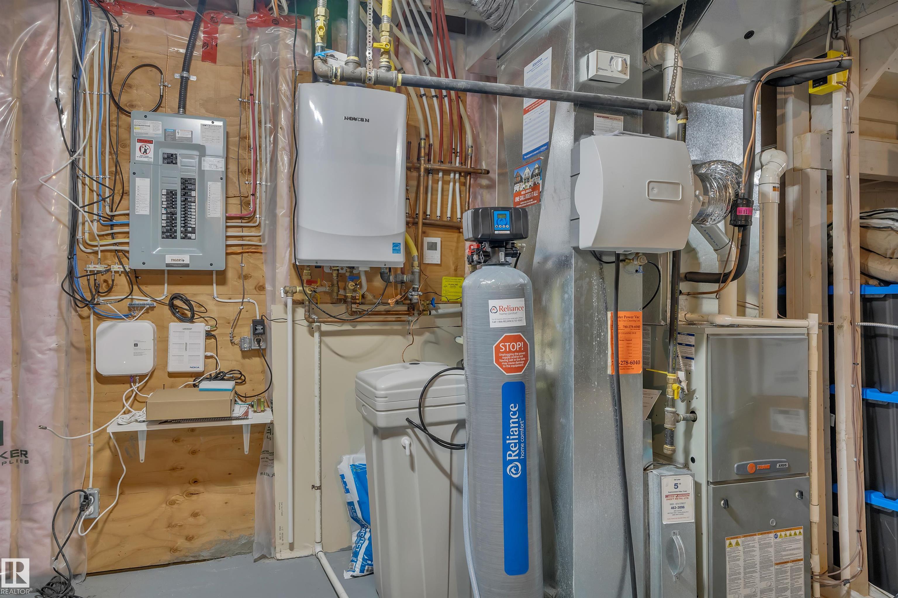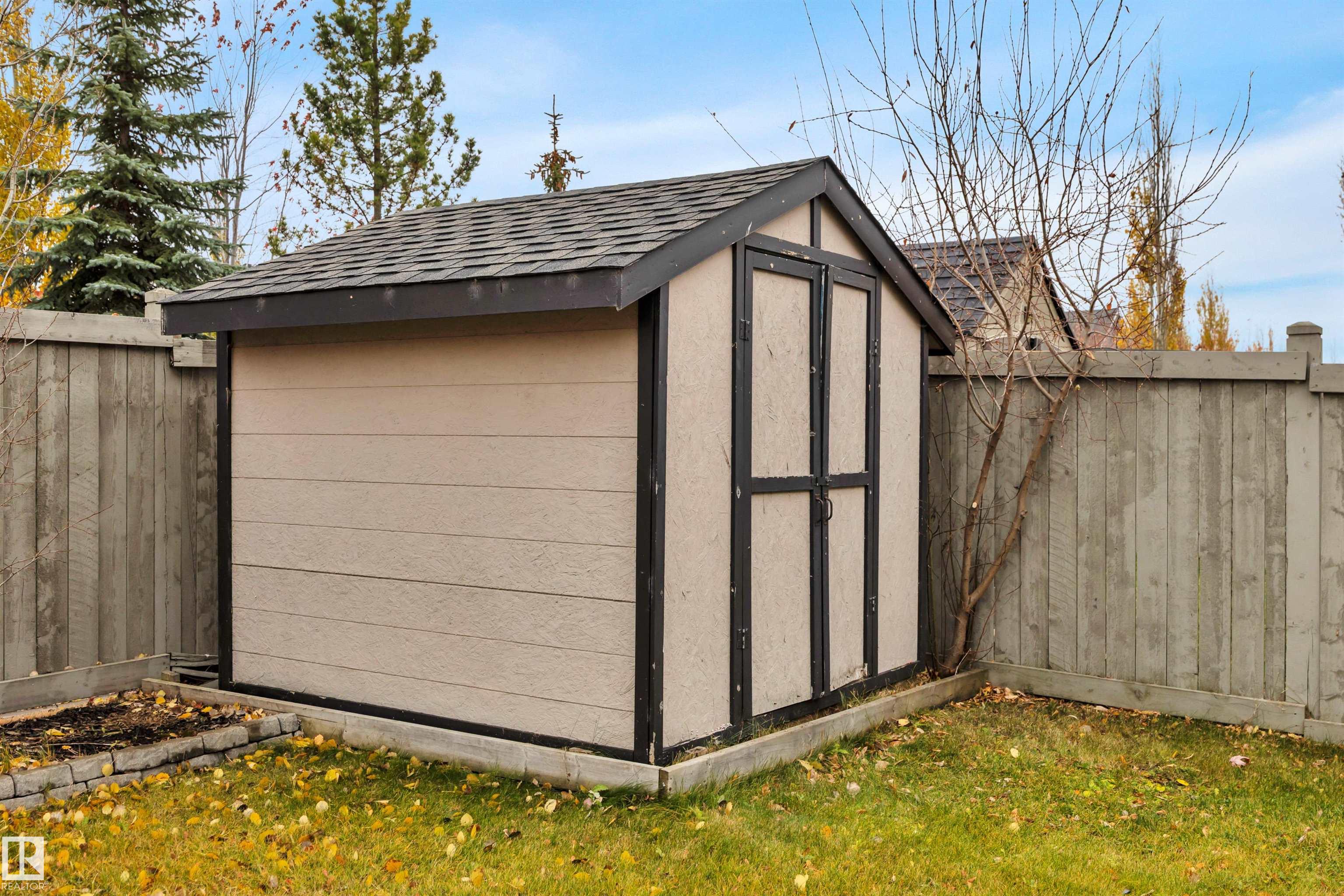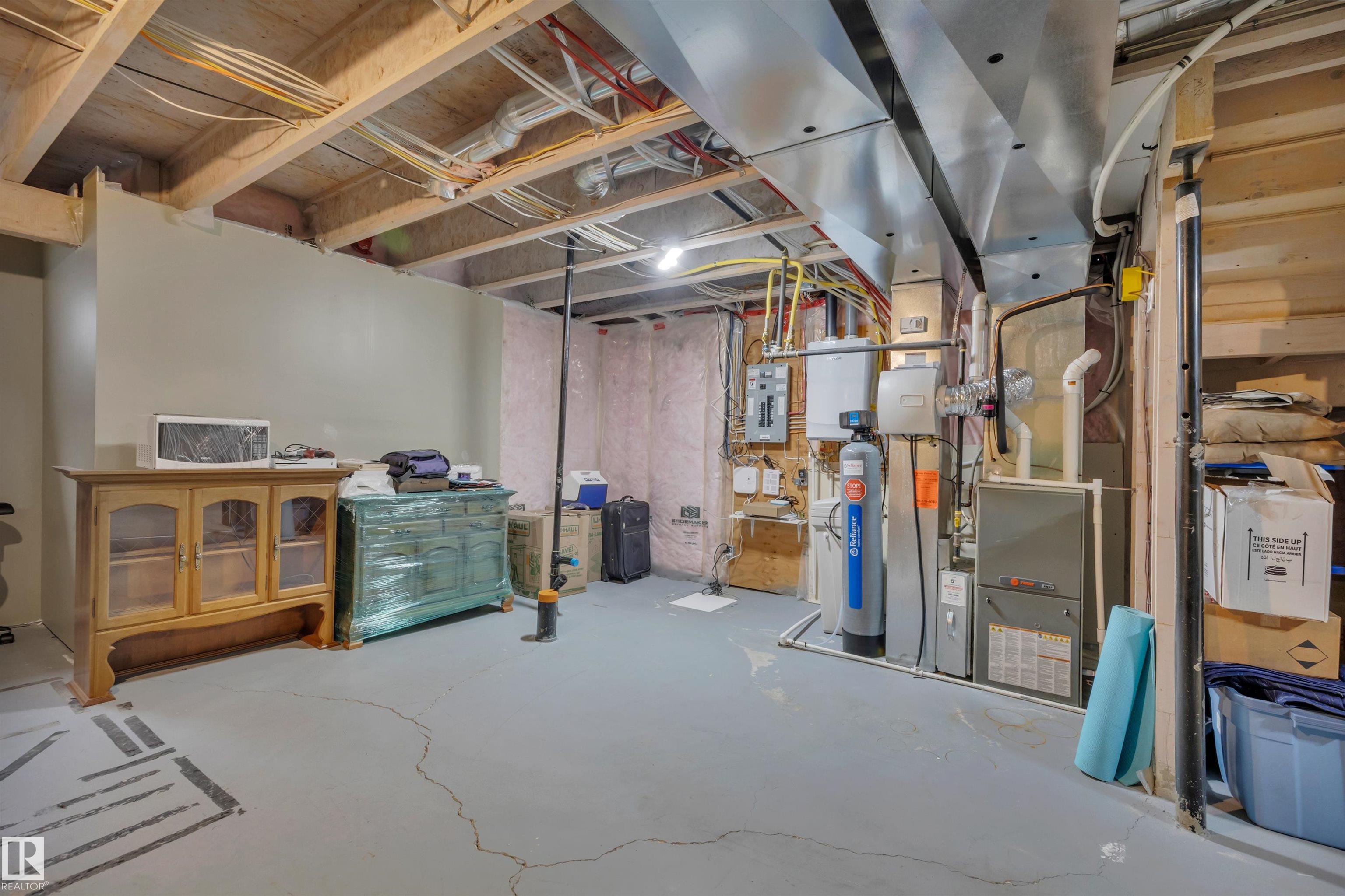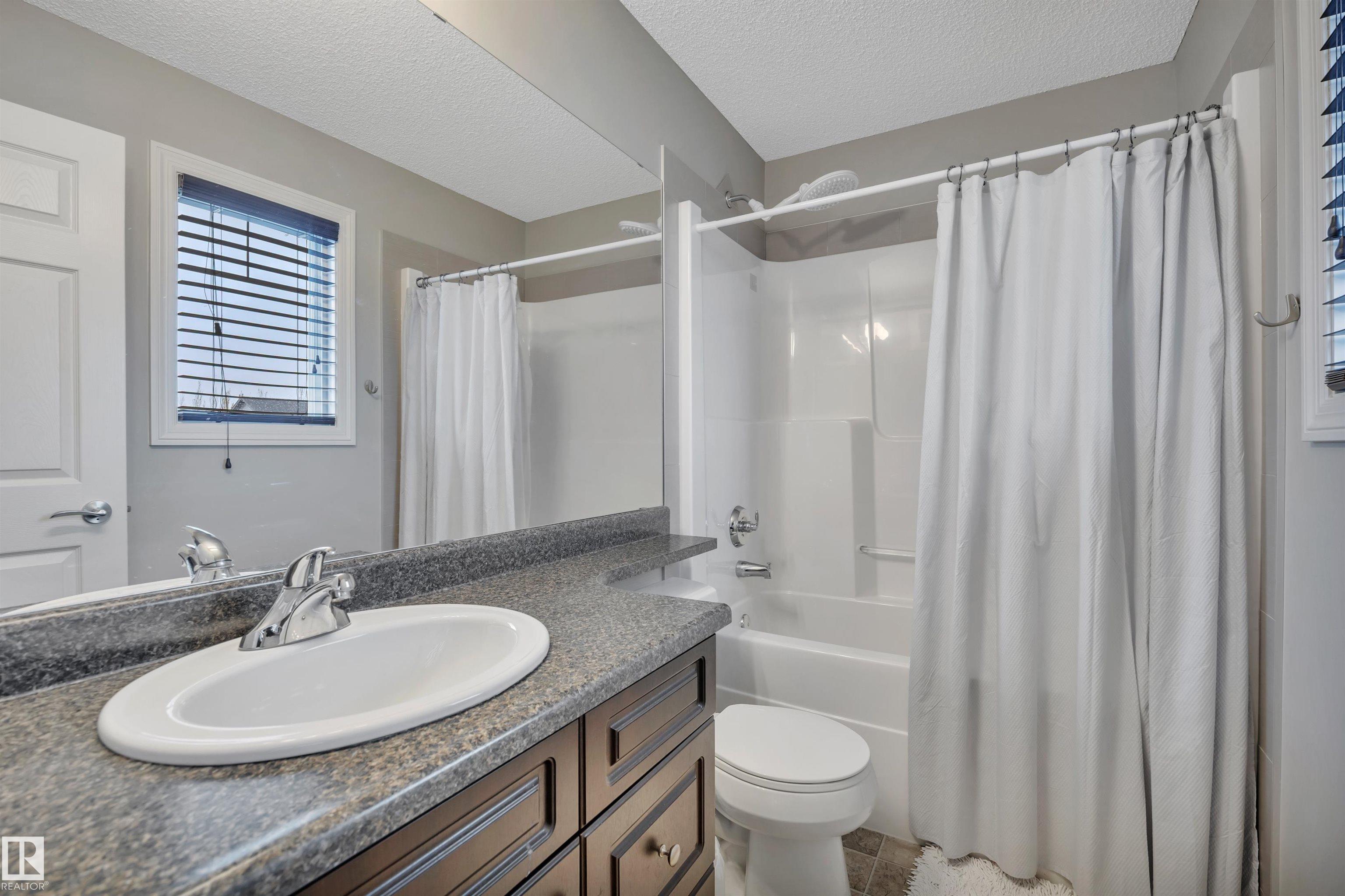 This half duplex is the perfect blend of style and convenience for professionals or first-time buyers! Step inside to find gleaming hardwood floors throughout the main level, which features a handy walk-through pantry, main floor laundry & a 2 pce bathroom. Kitchen has a large island with sink, great lighting, looking onto the dinette with a garden door to back deck. Space is open concept, inviting you to the living room. Upstairs, you'll find three comfortable bedrooms with plush carpeting, including a generous primary bdrm with a 4 pce ensuite & walk in closet. An additional 4-piece bathroom serves the other rooms. Enjoy outdoor living on the deck, leading to a yard that backs onto a tranquil trail.  A/C & water softener system recently added. The location is unbeatable: you're just 15 minutes from the EIA, and a simple street crossing brings you to a school, parks, trails, & playgrounds! Complete with a single attached finished garage, located on a quite street, this home makes life easy & affordable.
