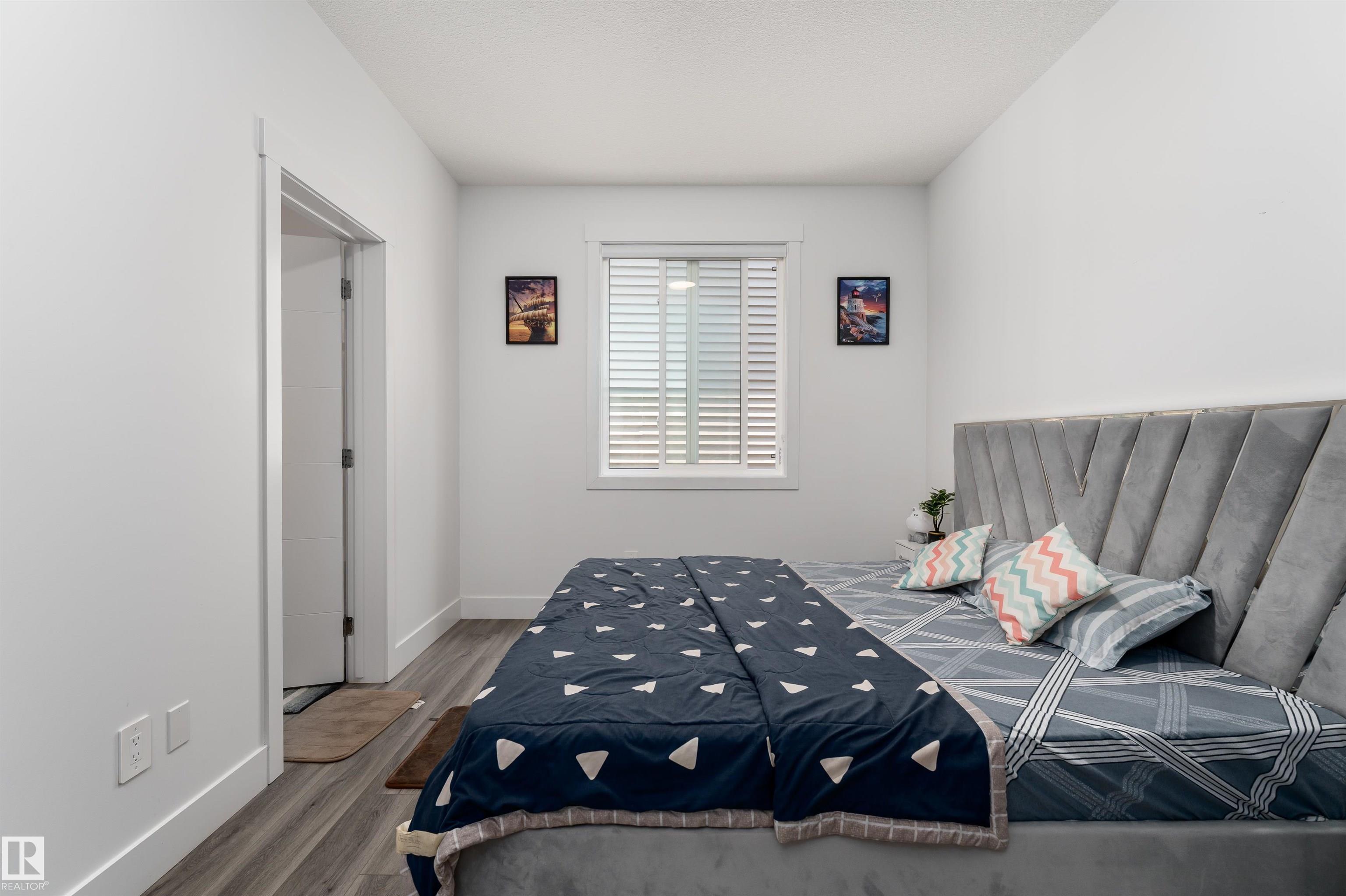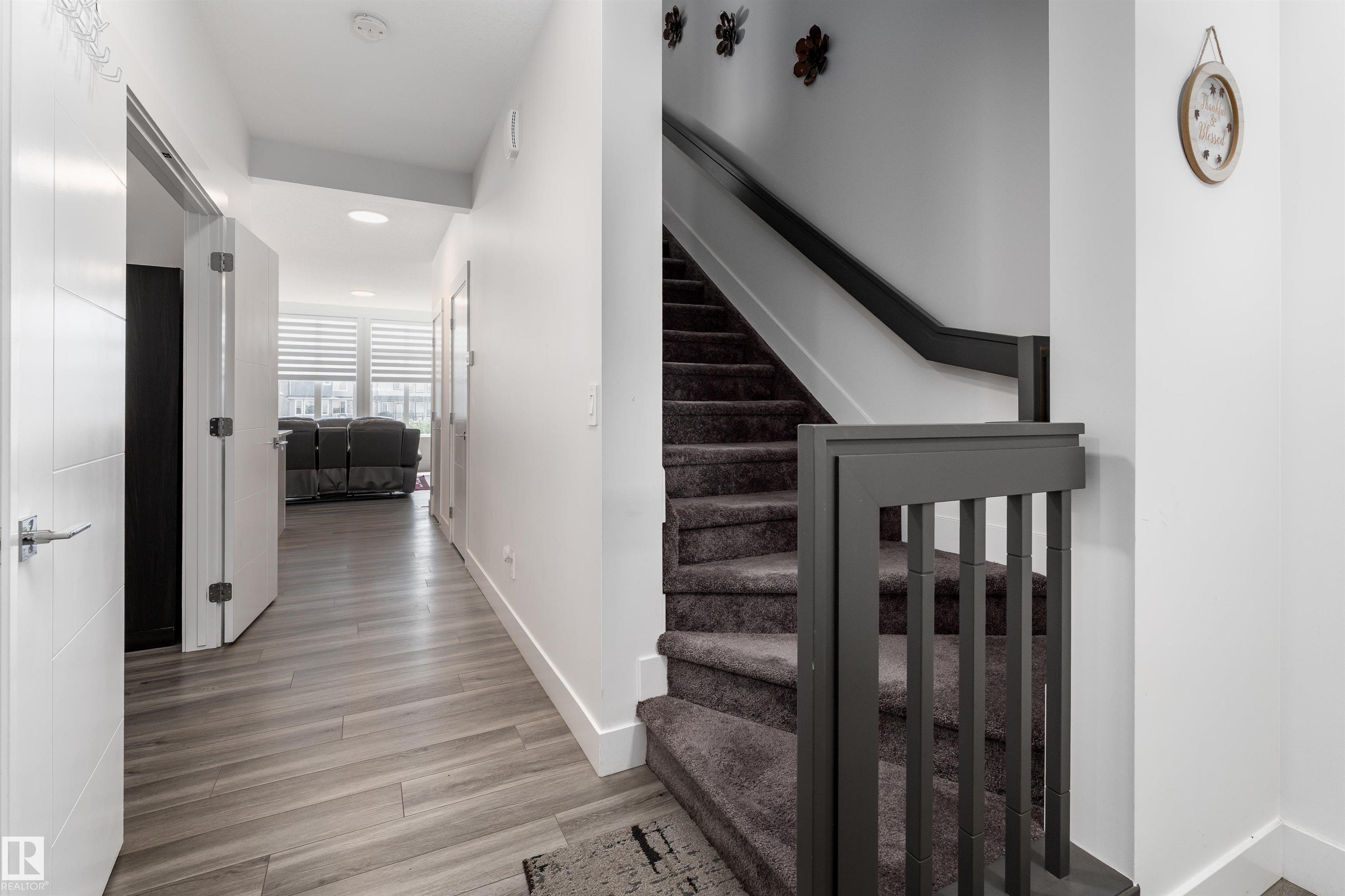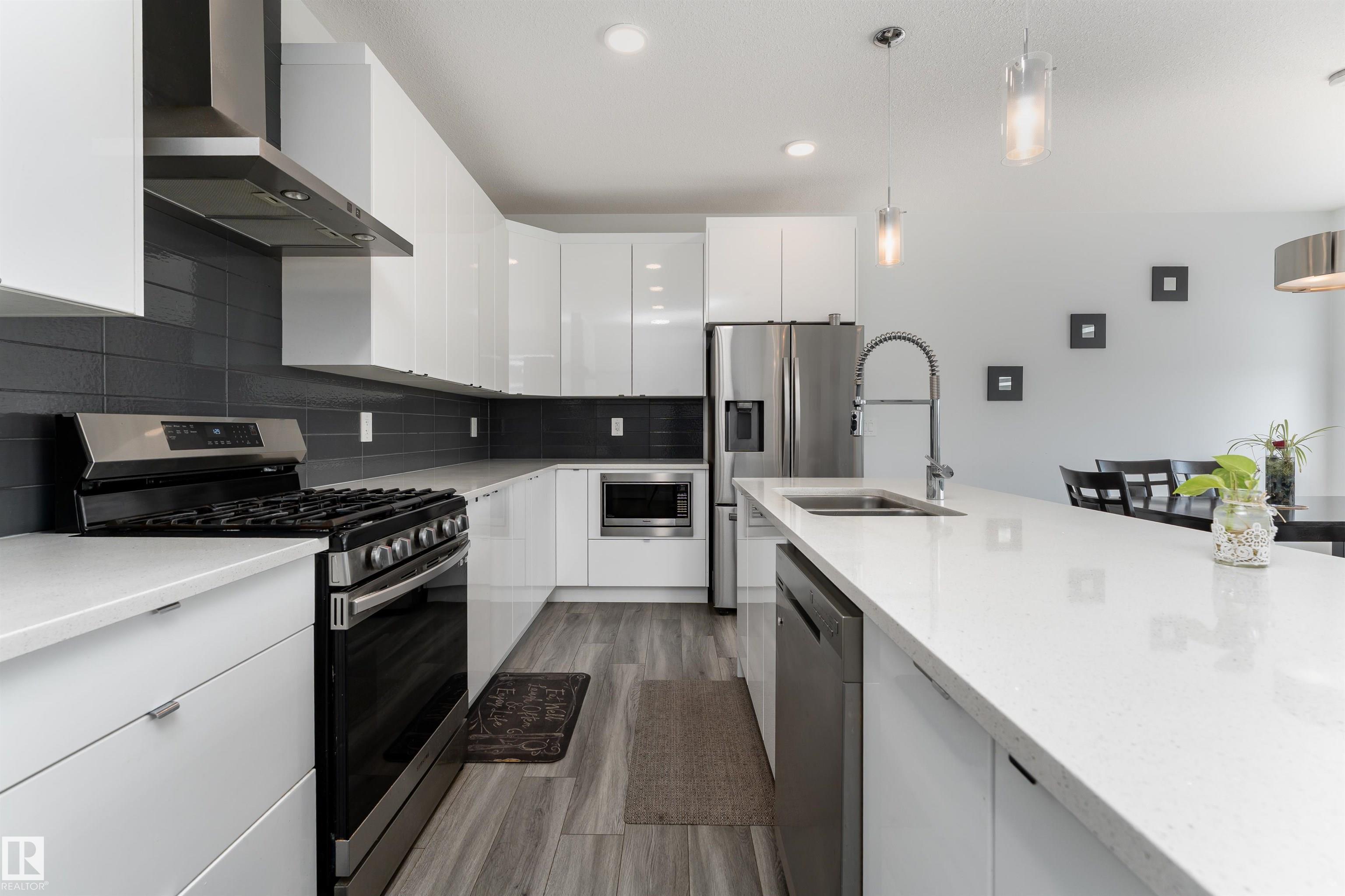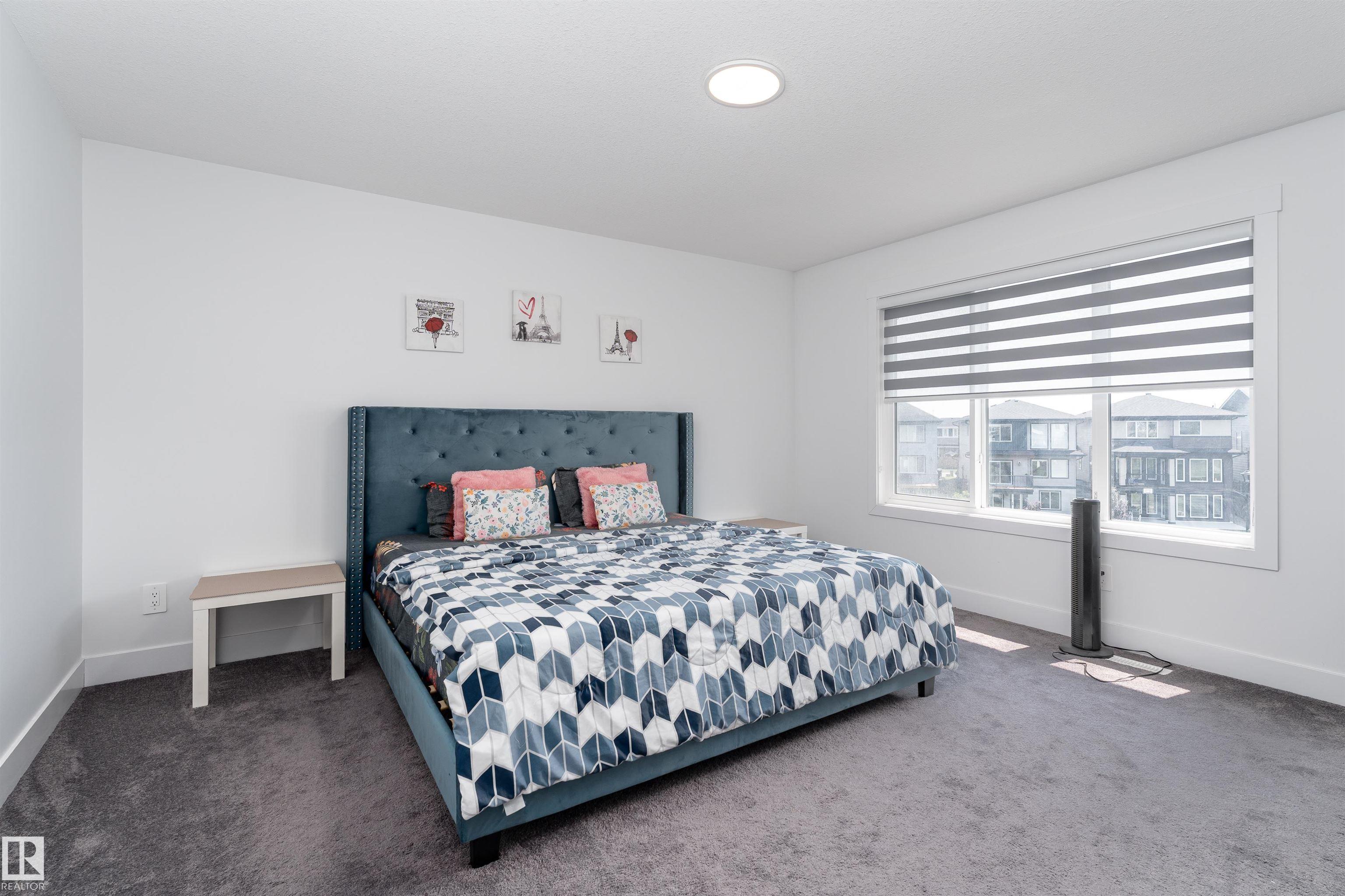 Welcome to this modern 2-storey home with a WALKOUT BASEMENT BACKING POND AND GREEN SPACE in the community of CAVANAGH!! The main floor with 9" CEILING is filled with natural light, thanks to large windows with CUSTOM BLINDS in the spacious living and dining areas. The dining room offers direct access to the balcony, perfect for relaxing or entertaining. The contemporary kitchen features sleek 42" WHITE CABINETRY, ample counter space, a central island, stainless steel appliances with a GAS RANGE and CHIMNEY STACK, QUARTZ COUNTERTOPS throughout and a WALK-IN PANTRY. A convenient BEDROOM AND a FULL BATHROOM completes the main level. Upstairs, the primary bedroom boasts expansive windows with a neighborhood view with a luxurious 5-piece ensuite and a walk-in closet, a cozy bonus room, upper-level laundry, two additional bedrooms and a 3-piece bathroom. Enjoy outdoor living in the FULLY LANDSCAPED YARD and convenience of DOUBLE ATTACHED GARAGE. Stylish, functional, and move-in ready?this home is a must-see!