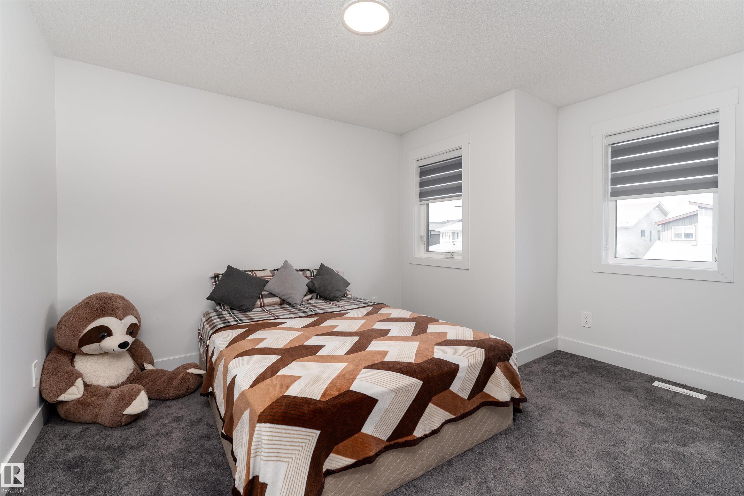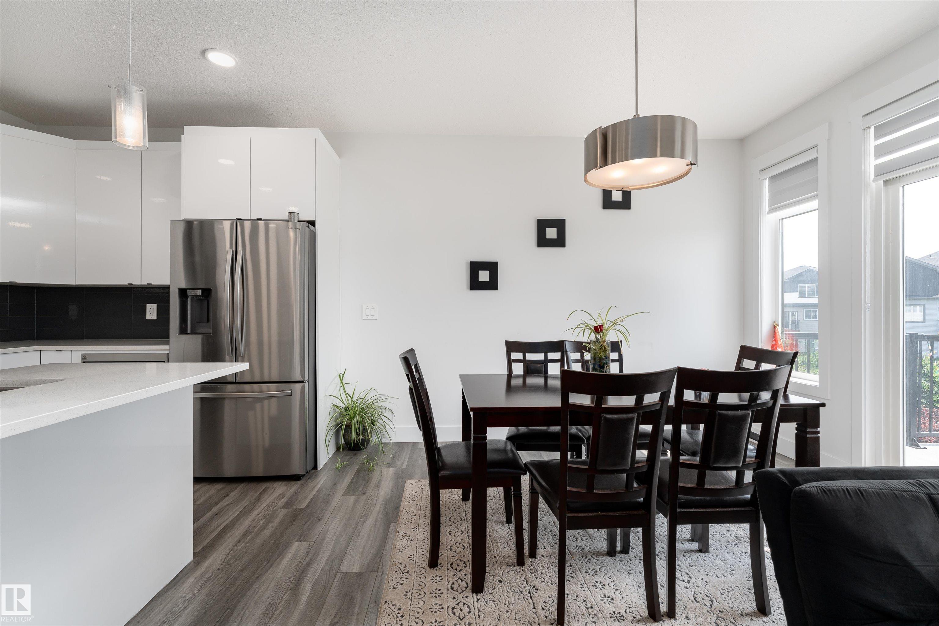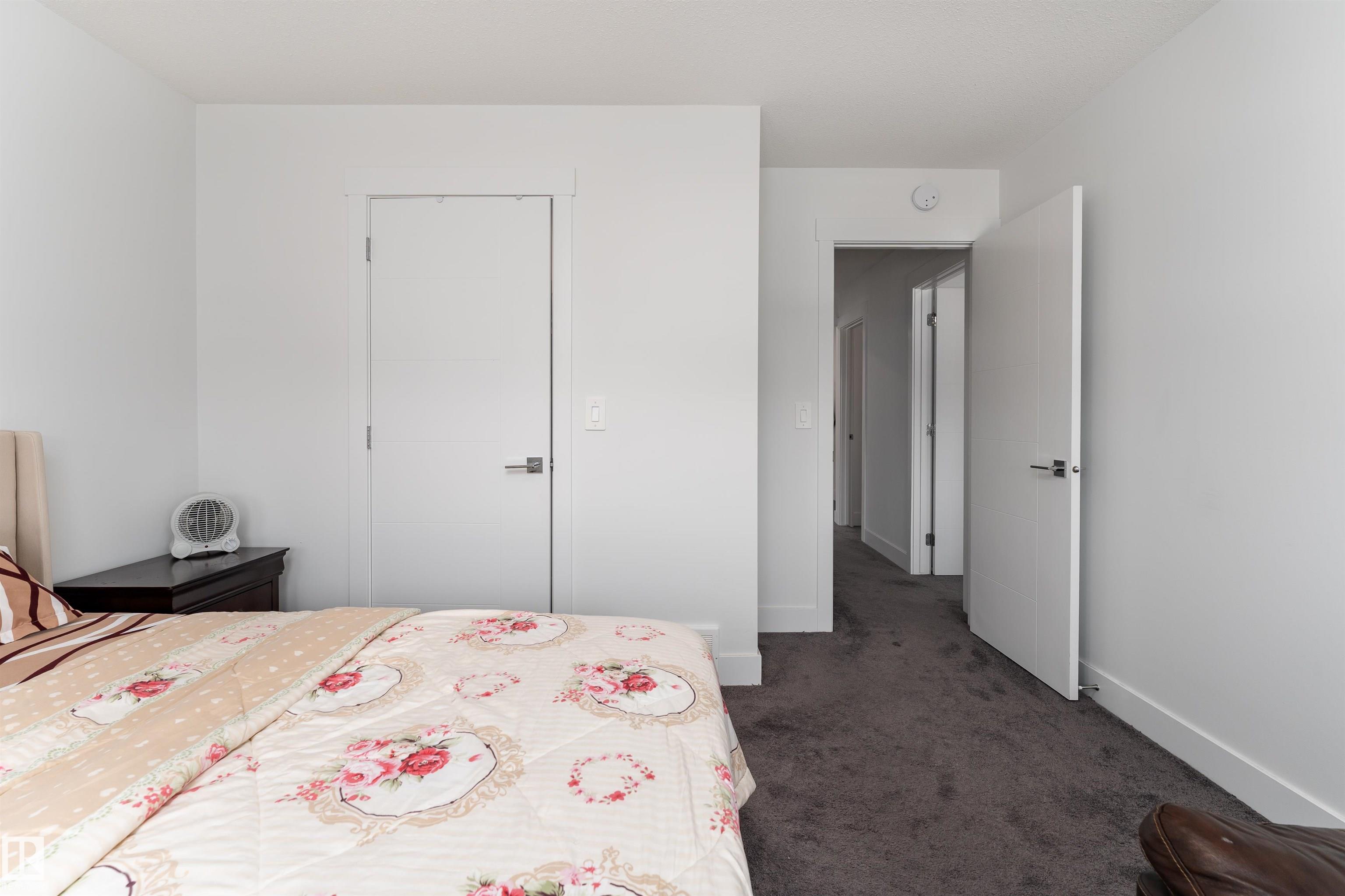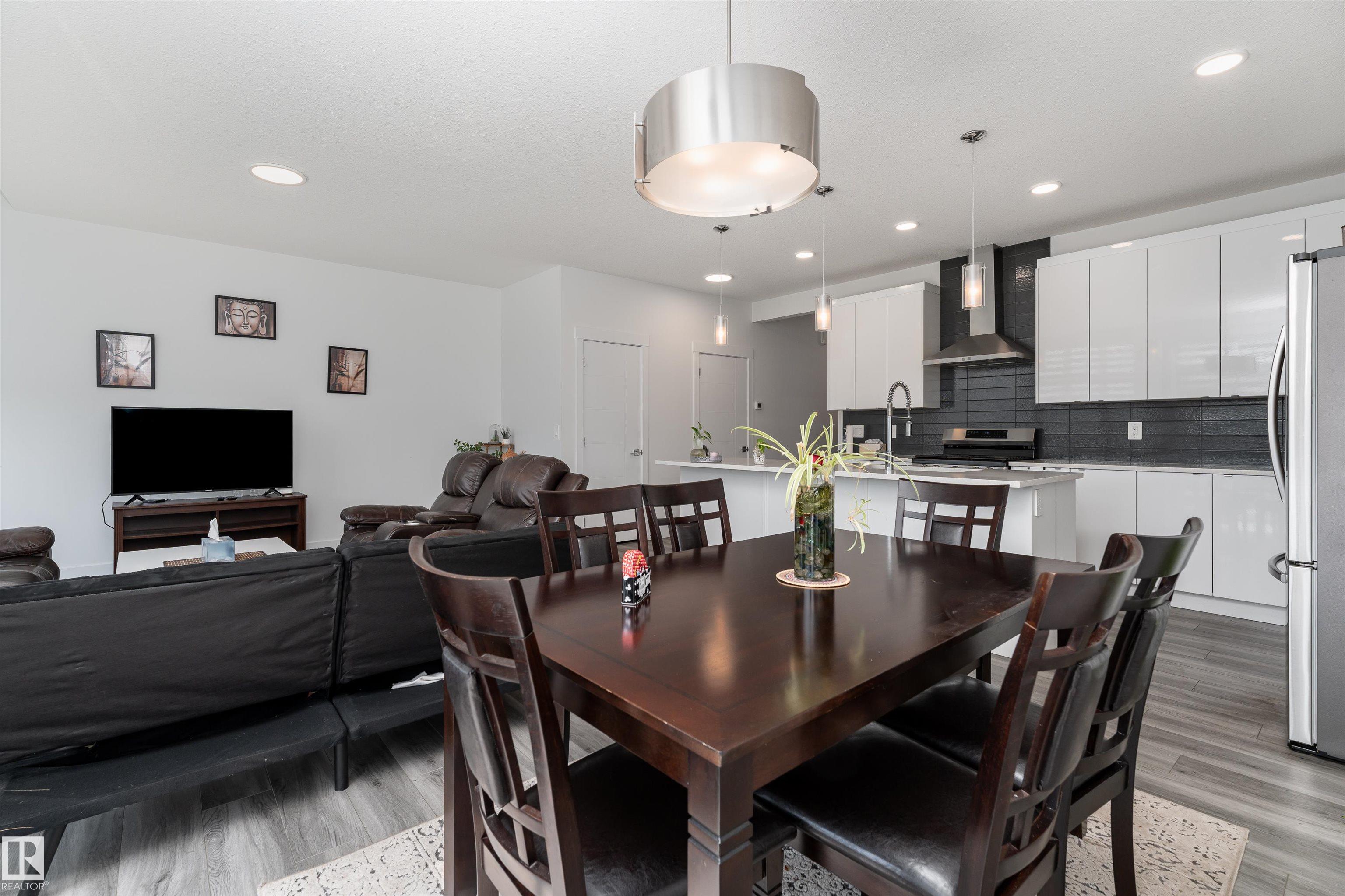 Welcome to this modern 2-storey home with a WALKOUT BASEMENT BACKING POND AND GREEN SPACE in the community of CAVANAGH!! The main floor with 9" CEILING is filled with natural light, thanks to large windows with CUSTOM BLINDS in the spacious living and dining areas. The dining room offers direct access to the balcony, perfect for relaxing or entertaining. The contemporary kitchen features sleek 42" WHITE CABINETRY, ample counter space, a central island, stainless steel appliances with a GAS RANGE and CHIMNEY STACK, QUARTZ COUNTERTOPS throughout and a WALK-IN PANTRY. A convenient BEDROOM AND a FULL BATHROOM completes the main level. Upstairs, the primary bedroom boasts expansive windows with a neighborhood view with a luxurious 5-piece ensuite and a walk-in closet, a cozy bonus room, upper-level laundry, two additional bedrooms and a 3-piece bathroom. Enjoy outdoor living in the FULLY LANDSCAPED YARD and convenience of DOUBLE ATTACHED GARAGE. Stylish, functional, and move-in ready?this home is a must-see!
