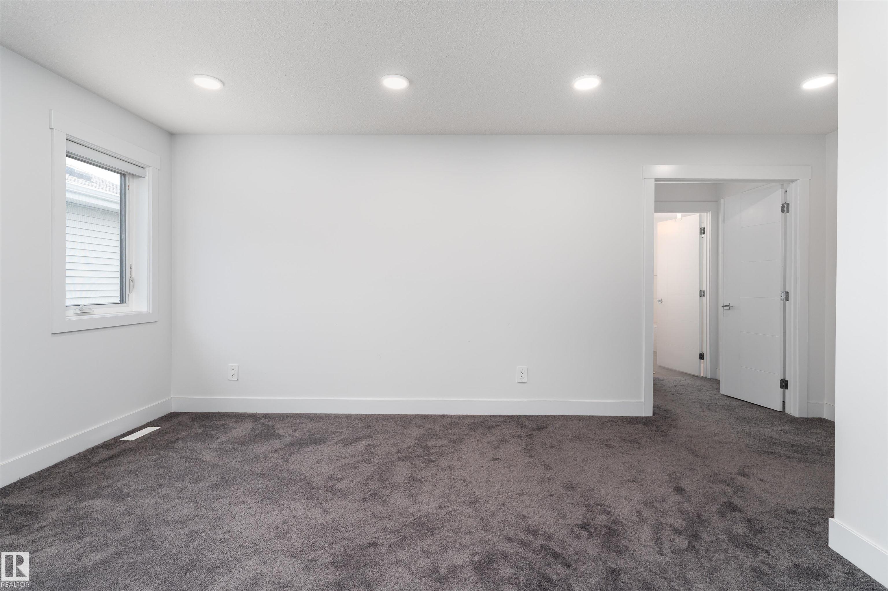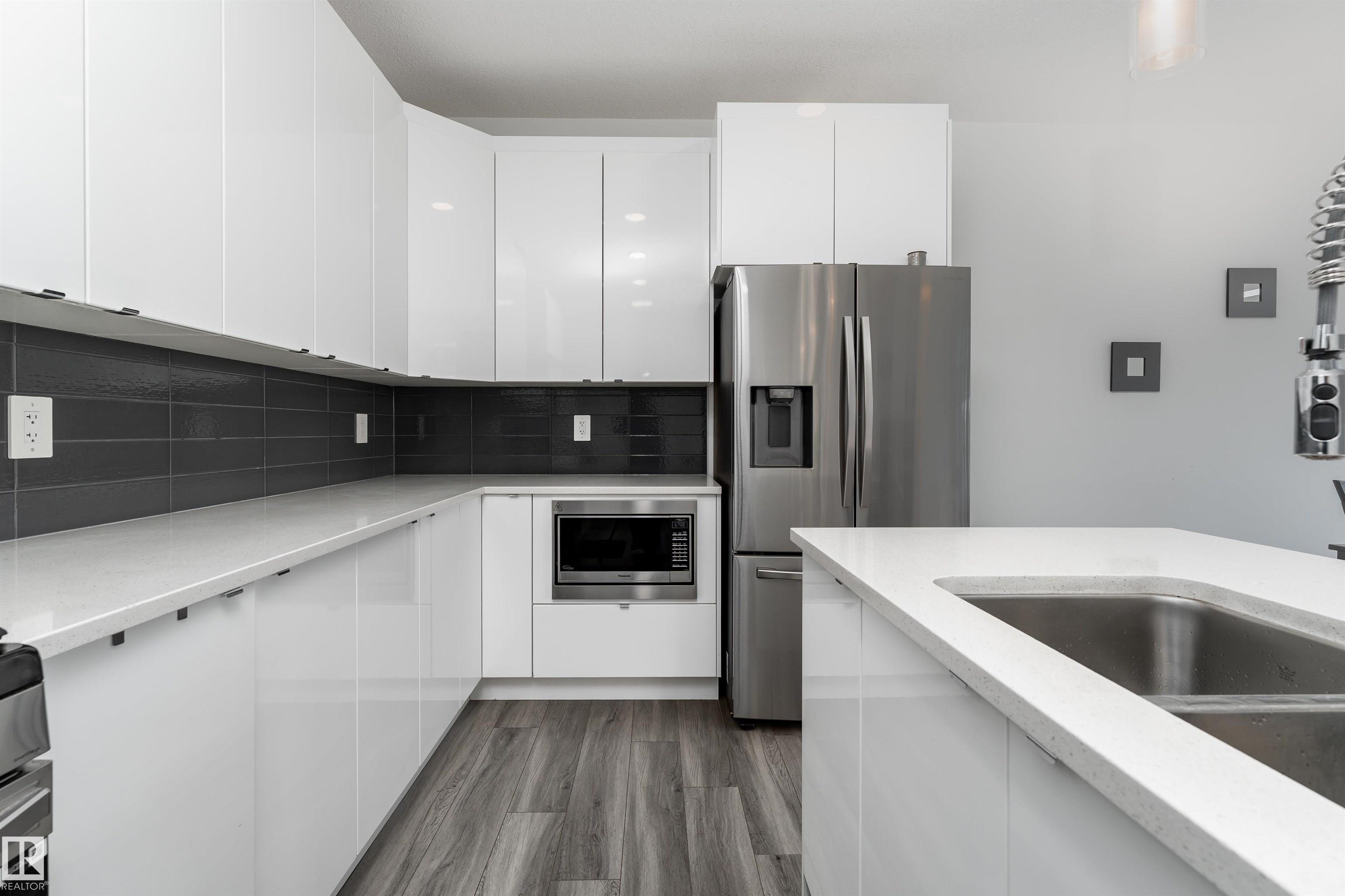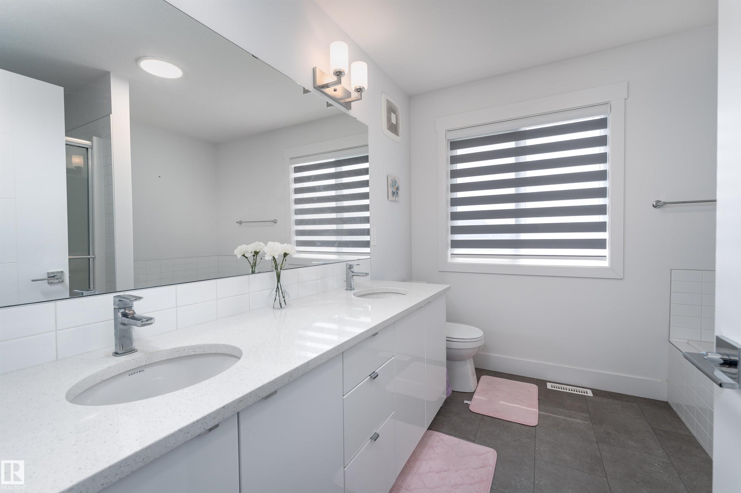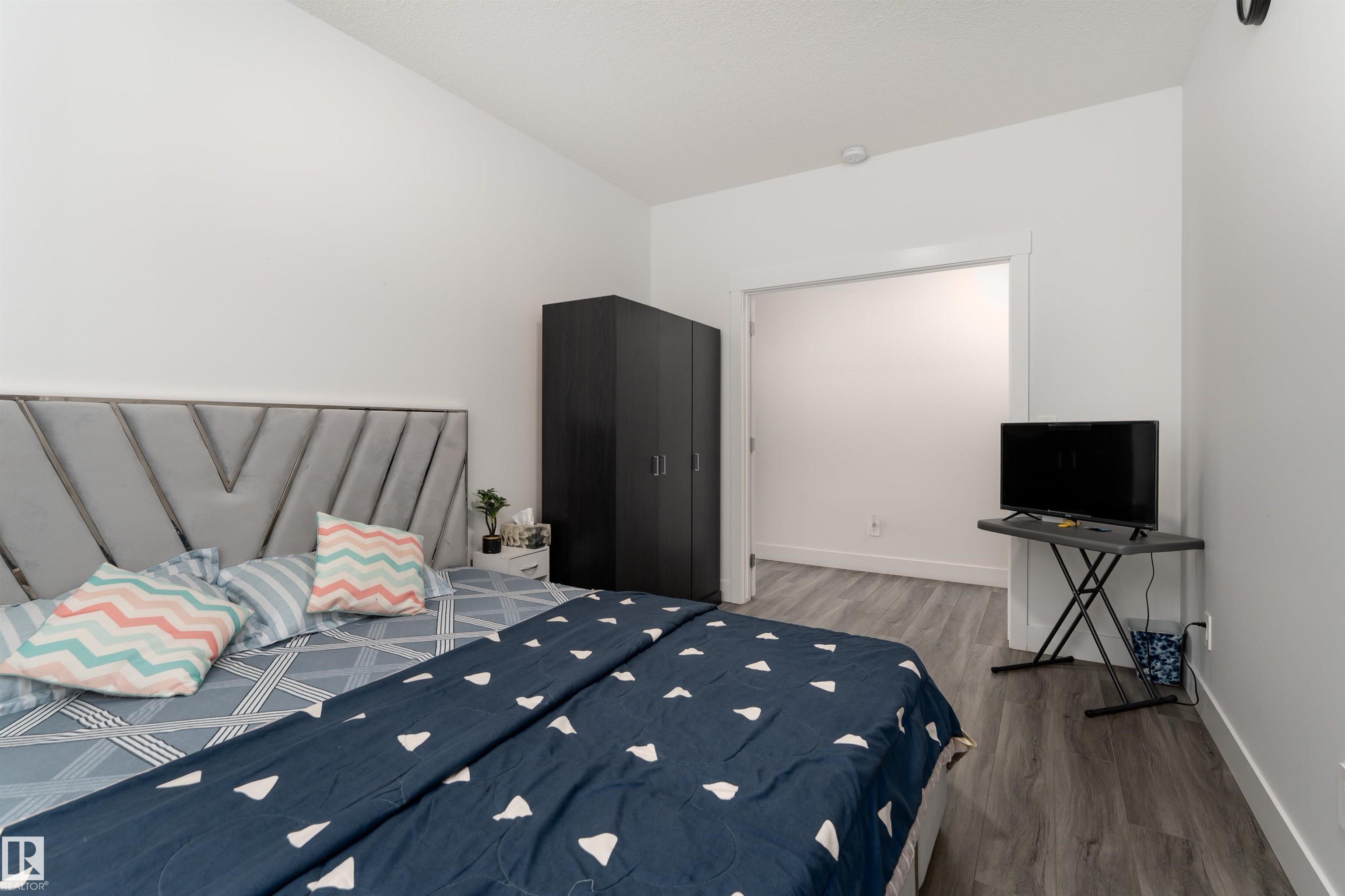 Welcome to this modern 2-storey home with a WALKOUT BASEMENT BACKING POND AND GREEN SPACE in the community of CAVANAGH!! The main floor with 9" CEILING is filled with natural light, thanks to large windows with CUSTOM BLINDS in the spacious living and dining areas. The dining room offers direct access to the balcony, perfect for relaxing or entertaining. The contemporary kitchen features sleek 42" WHITE CABINETRY, ample counter space, a central island, stainless steel appliances with a GAS RANGE and CHIMNEY STACK, QUARTZ COUNTERTOPS throughout and a WALK-IN PANTRY. A convenient BEDROOM AND a FULL BATHROOM completes the main level. Upstairs, the primary bedroom boasts expansive windows with a neighborhood view with a luxurious 5-piece ensuite and a walk-in closet, a cozy bonus room, upper-level laundry, two additional bedrooms and a 3-piece bathroom. Enjoy outdoor living in the FULLY LANDSCAPED YARD and convenience of DOUBLE ATTACHED GARAGE. Stylish, functional, and move-in ready?this home is a must-see!
