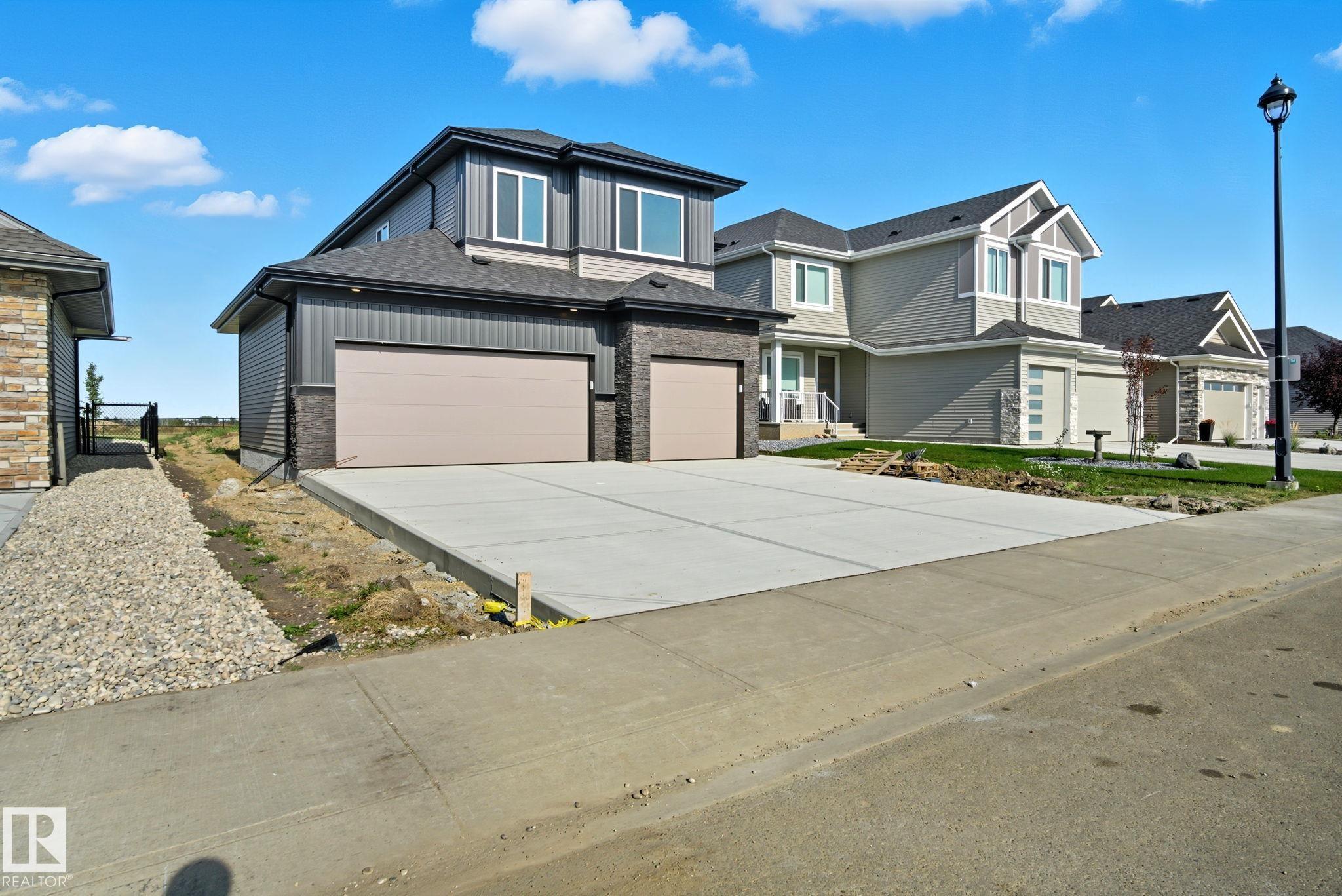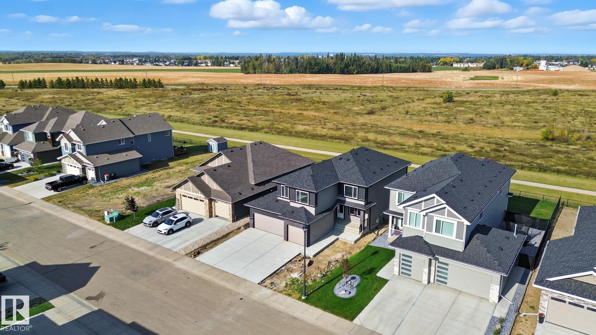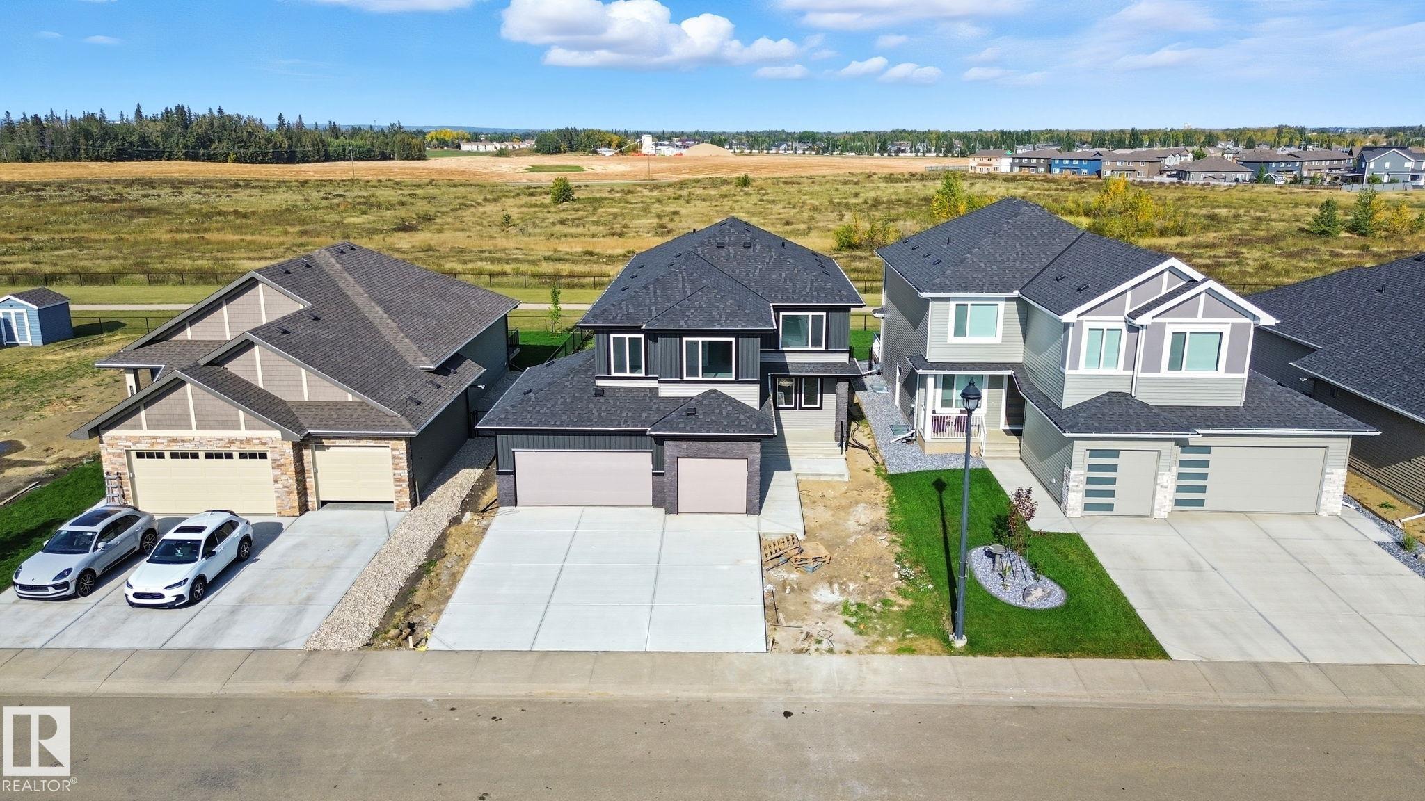Executive family living in Stony Plain's most prestigious subdivision! This brand new 2700 sq ft PLUS fully finished basement 2-storey is the perfect place to call home. Open concept main floor with beautiful white kitchen, quartz countertops & huge pantry. Appliance allowance included. Great dining area to host family & friends! Massive living room with towering ceilings, loads of windows & electric fireplace. Front den is perfect home office! Upstairs master suite features tons of space, 5pc ensuite & large walk in closet! 2 more bedrooms are perfect for kids or guests. UPSTAIRS LAUNDRY! Fully finished basement features massive rec room with wet bar, perfect for a home movie night with a great spot for a pool table too! 4th bedroom too! Triple attached garage is fully insulated! Great location backing onto a greenspace & walking path. Close to restaurants & shopping. some photos are virtually staged