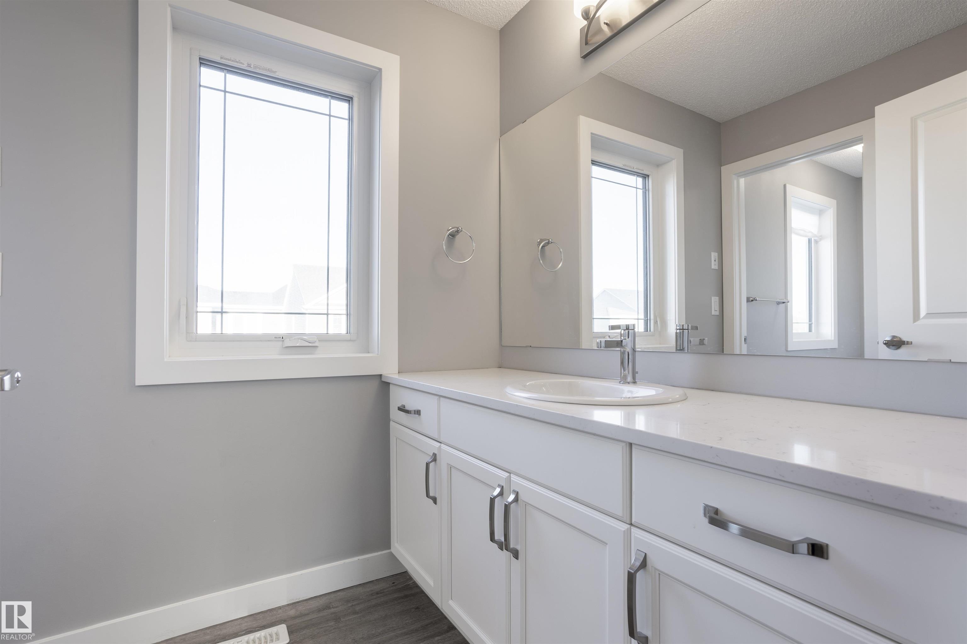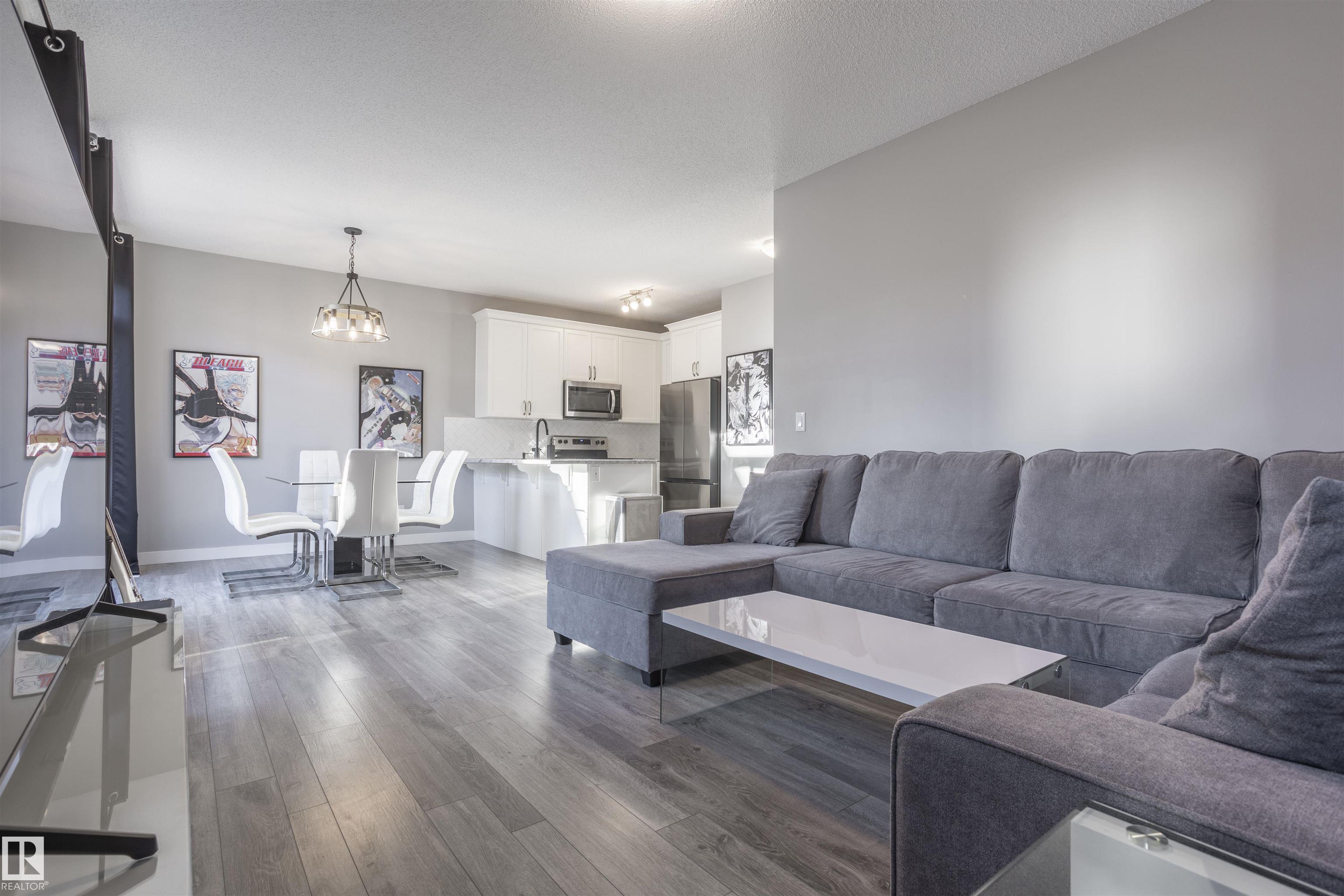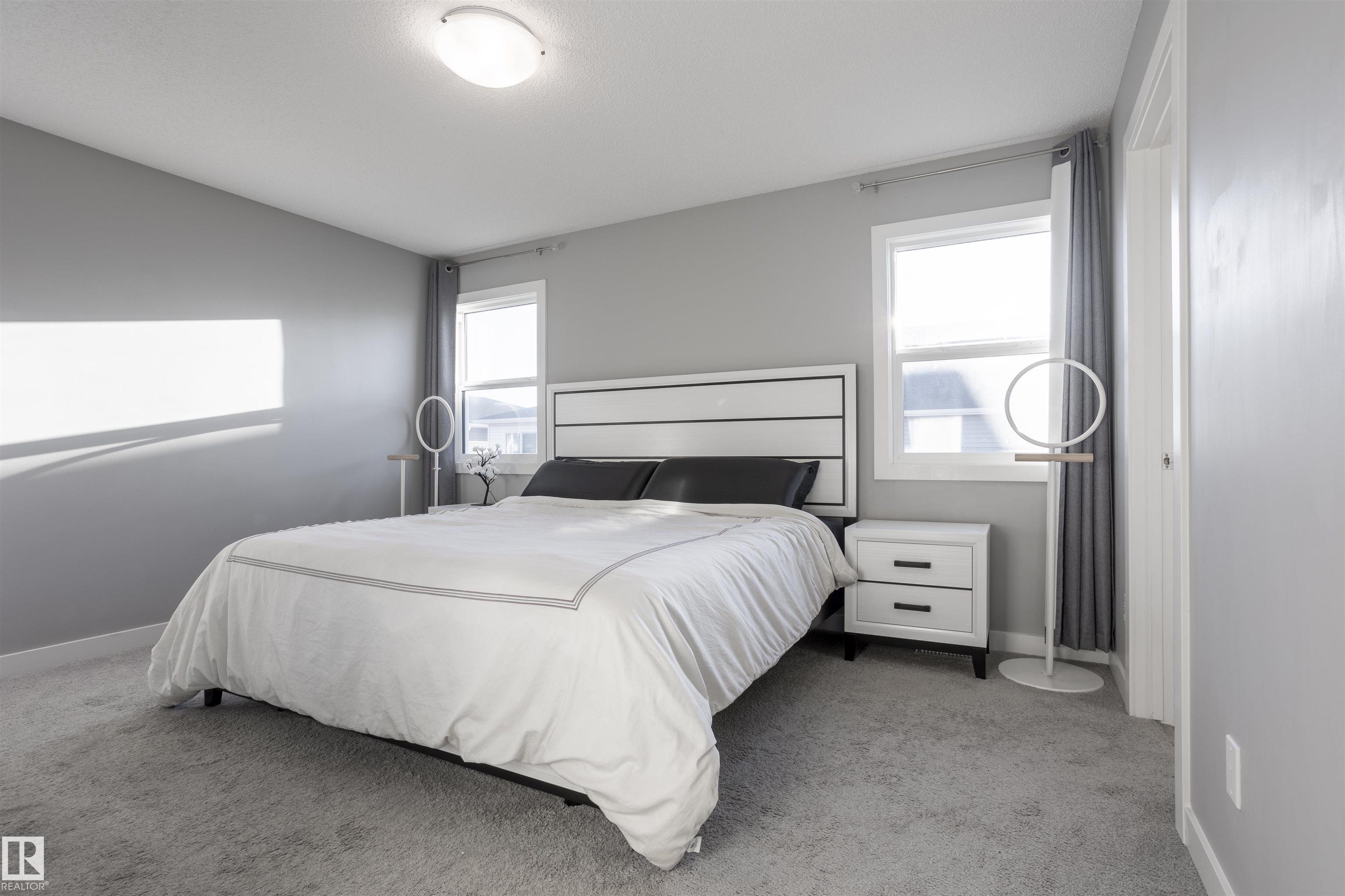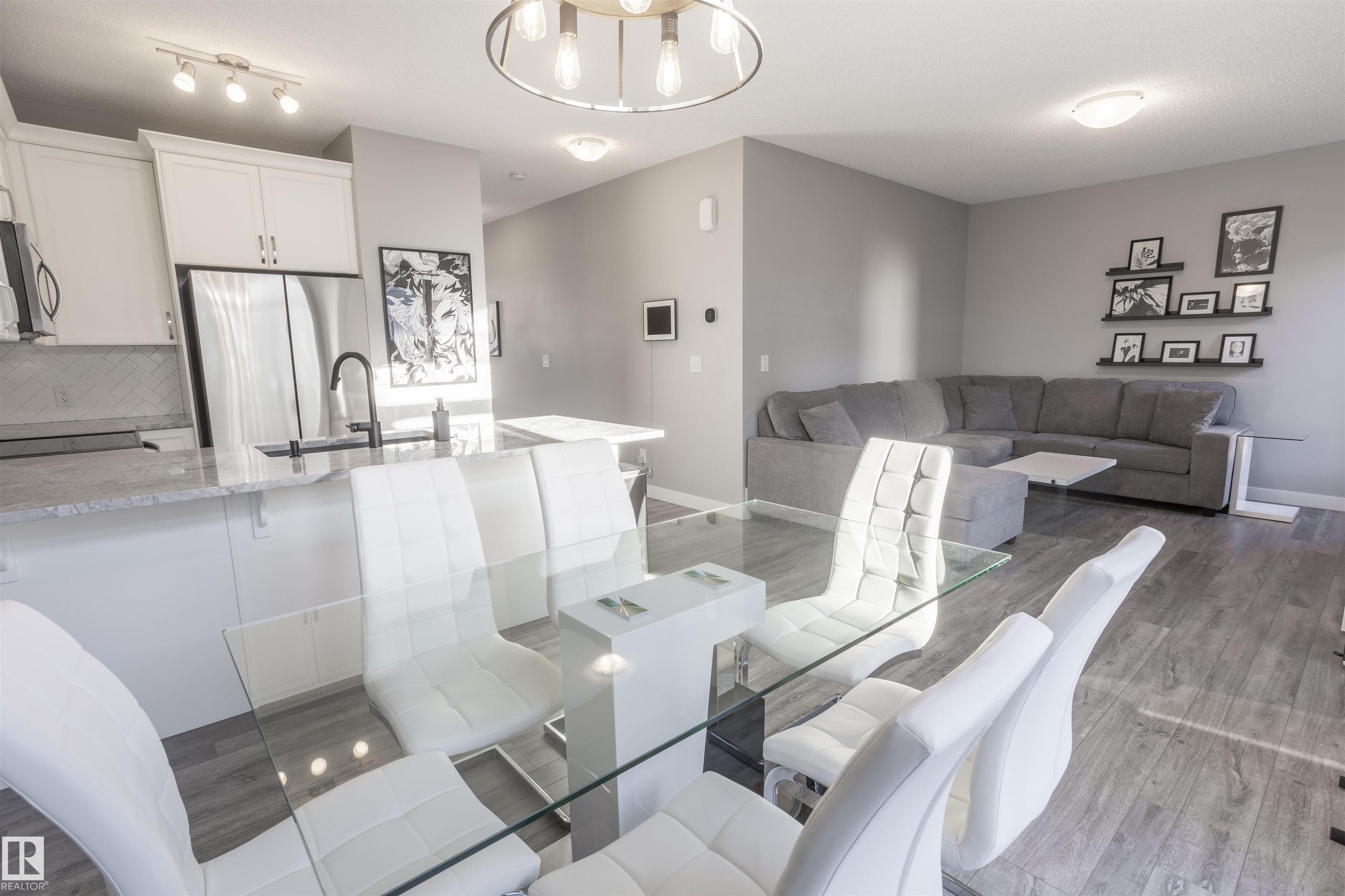 Step inside this stunning, air conditioned, low maintenance landscaped, 3-bedroom, 2.5-bath home and prepare to be impressed. Bright, welcoming, and beautifully finished, it offers a perfect mix of modern style and everyday comfort. The main floor showcases soaring 9-foot ceilings, luxury vinyl plank flooring, and a designer kitchen complete with quartz countertops and a gorgeous herringbone backsplash. The open layout flows seamlessly for entertaining or family time, and the fully fenced backyard is ideal for kids and pets. Upstairs, a large main bath with a private water closet complements two generous bedrooms and an expansive primary suite featuring a walk-in closet and elegant ensuite with quartz finishes. Convenient upstairs laundry adds practicality to busy days, while the unfinished basement is ready for your ideas. Nestled on a quiet street, this home is just steps from a private playground, spray park, skating rink, and scenic walking trails. Stylish, functional, and move-in ready
