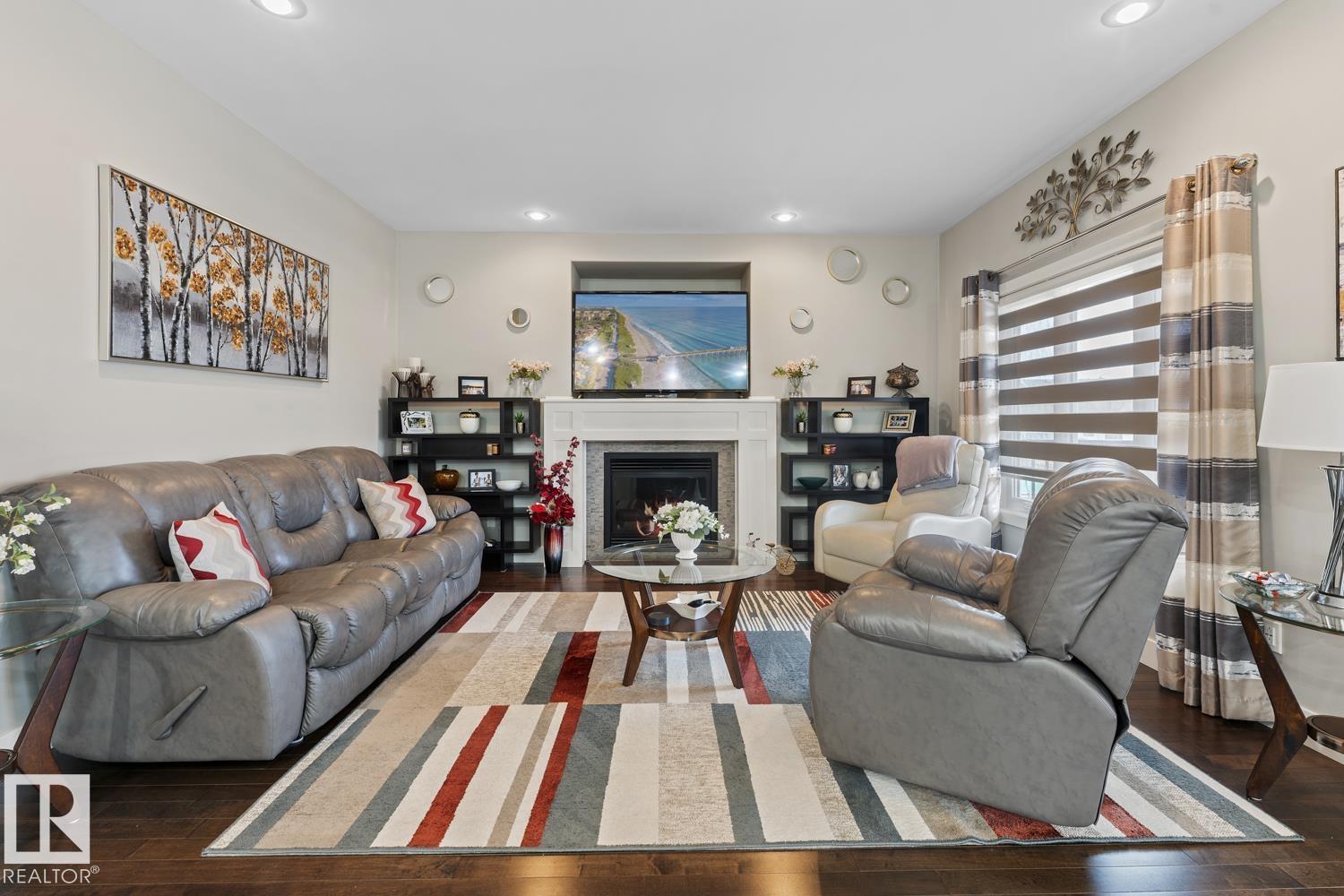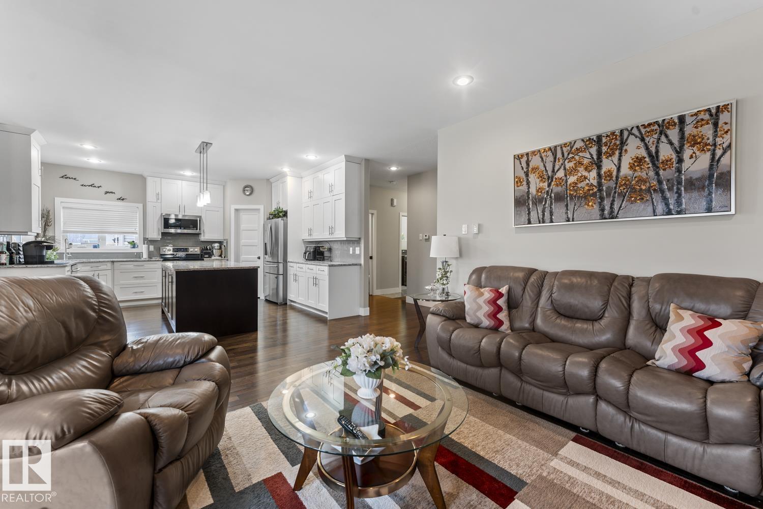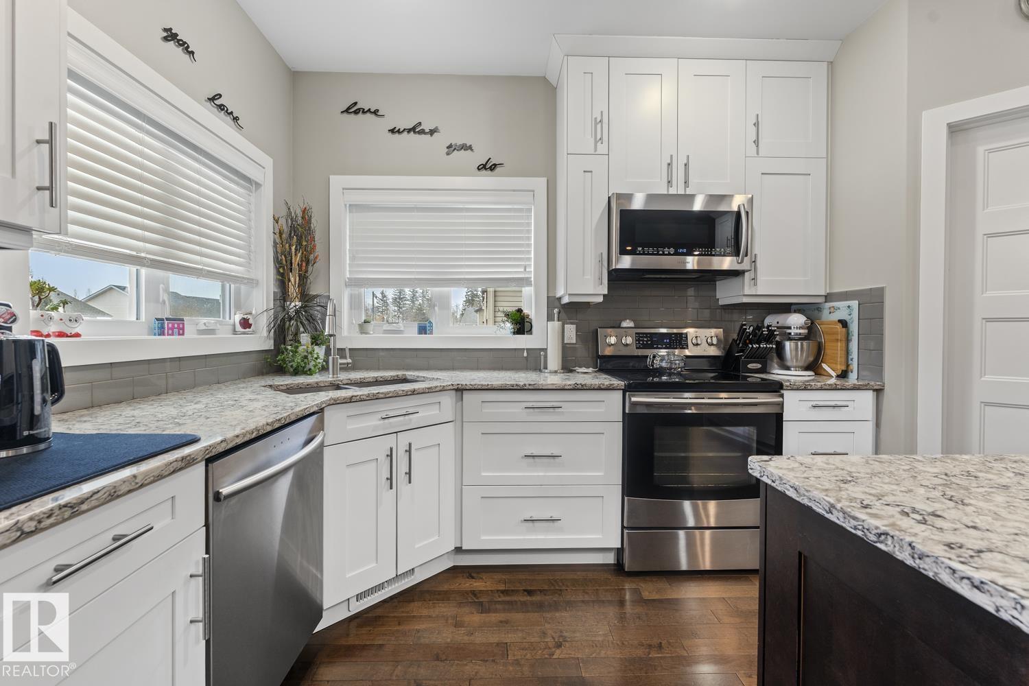 Custom executive 2-storey home on sought-after Lockhart Way in Lakewood Estates. This over 2500 sq ft home features stunning hardwood floors, a dream kitchen, impressive bonus room, and a backyard built for entertaining. The open concept main floor features white kitchen with huge centre island, stone counters and stainless steel appliances. Flow is seamless into the large living room with gas fireplace and good sized dining room with access to the large 2-tier back deck. Laundry, 1/2 bath and access to the oversized heated garage is also on this level. Upstairs is a large bonus room, along with a full bath and 3 bedrooms including primary with private balcony facing the lake, large walk-in and impressive 5-piece ensuite. The basement is nearly completed - only floor is needed and includes 2 more bedrooms, family room and bathroom. Added upgrades include Air Conditioning and wiring for a hot tub. fenced, landscaped, with ample parking - it's all here for your next home in Cold Lake!