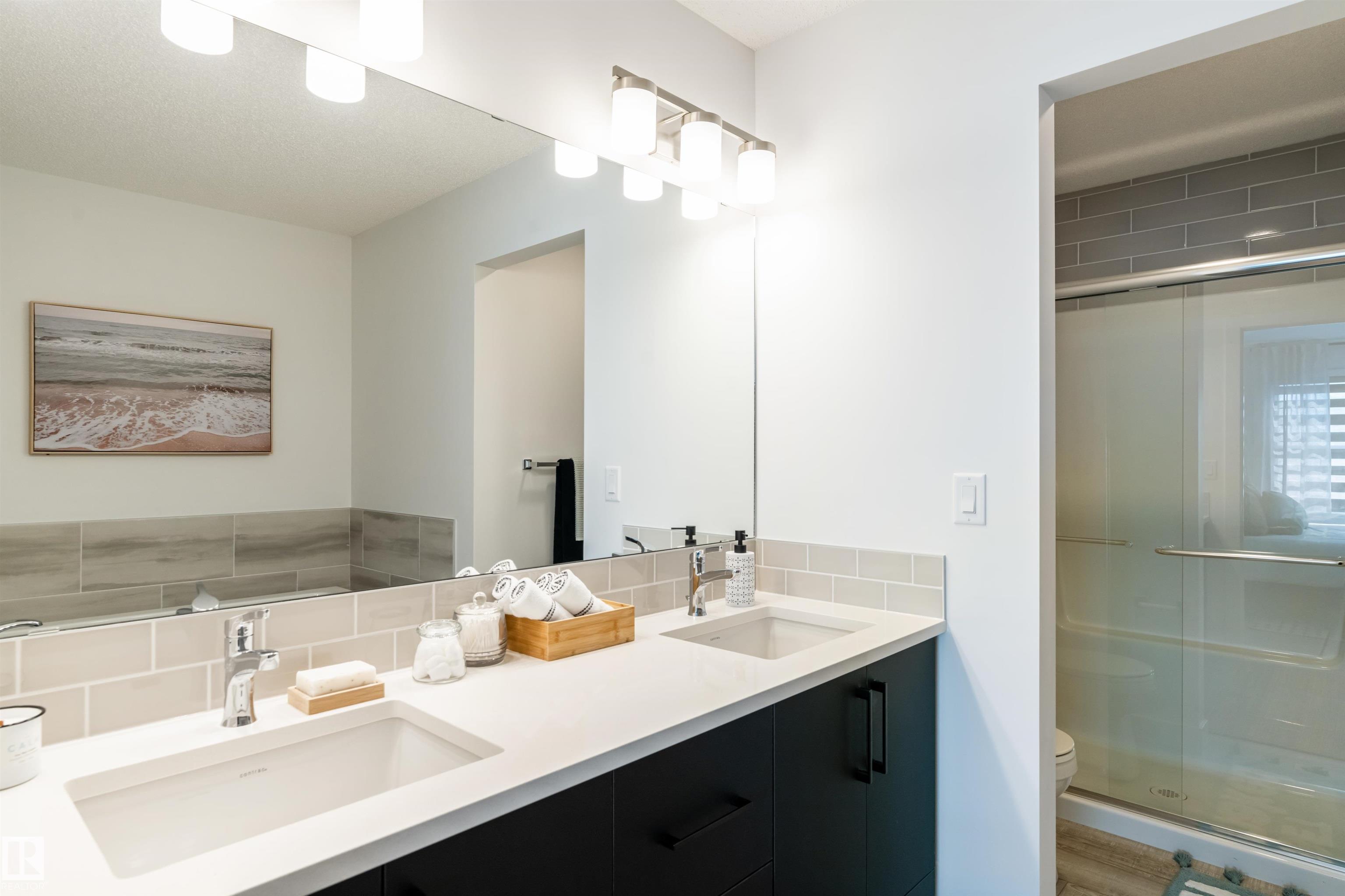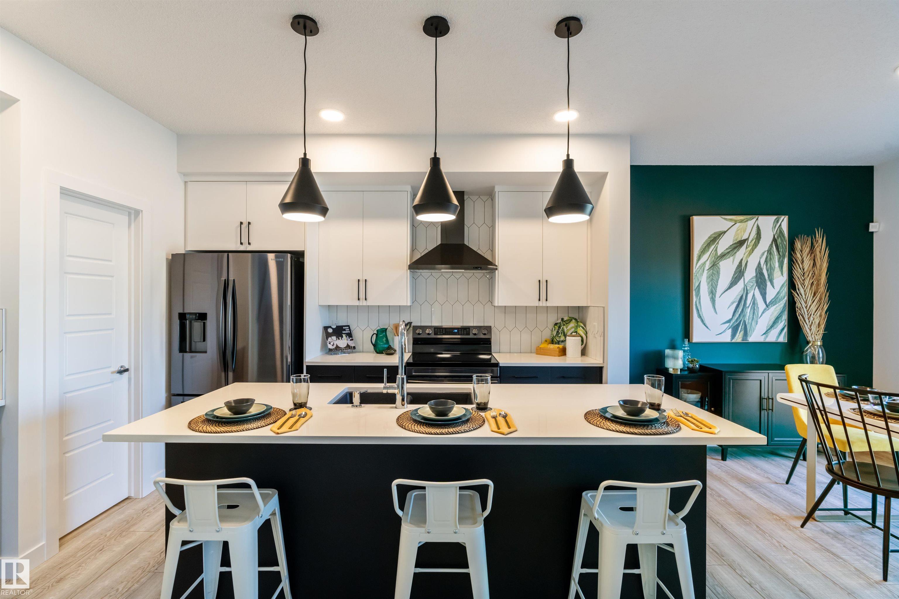 MOVE IN READY AND WAITING FOR YOU! In the desired community of Black Stone, the home features 4 bedrooms on the upper level and provides over 2,100 sf of UPGRADED family living. The main floor is highlighted by a GREAT kitchen with a large center island/eating bar, stone counter tops, an appliance allowance, a water line to the fridge, pot & pan drawers, soft-close doors/drawers plus an upgraded backsplash. Other main floor highlights include 9' ceilings, a functional family room with fireplace, wood & metal spindle railings, and a MAIN FLOOR DEN for working from home. The upper level features a HUGE master bedroom with a vaulted ceiling, double sinks, a free standing soaker tub, a walk-in shower plus the washer/dryer are conveniently located. Other highlightS include a SEPERATE SIDE ENTRANCE to the basement (9',ceilings) with rough-ins for a bathroom, wet bar & laundry. The gas lines for the BBQ and kitchen are also roughed-in PLUS the attached garage has an 8' door and is 2' longer. THIS IS THE ONE!