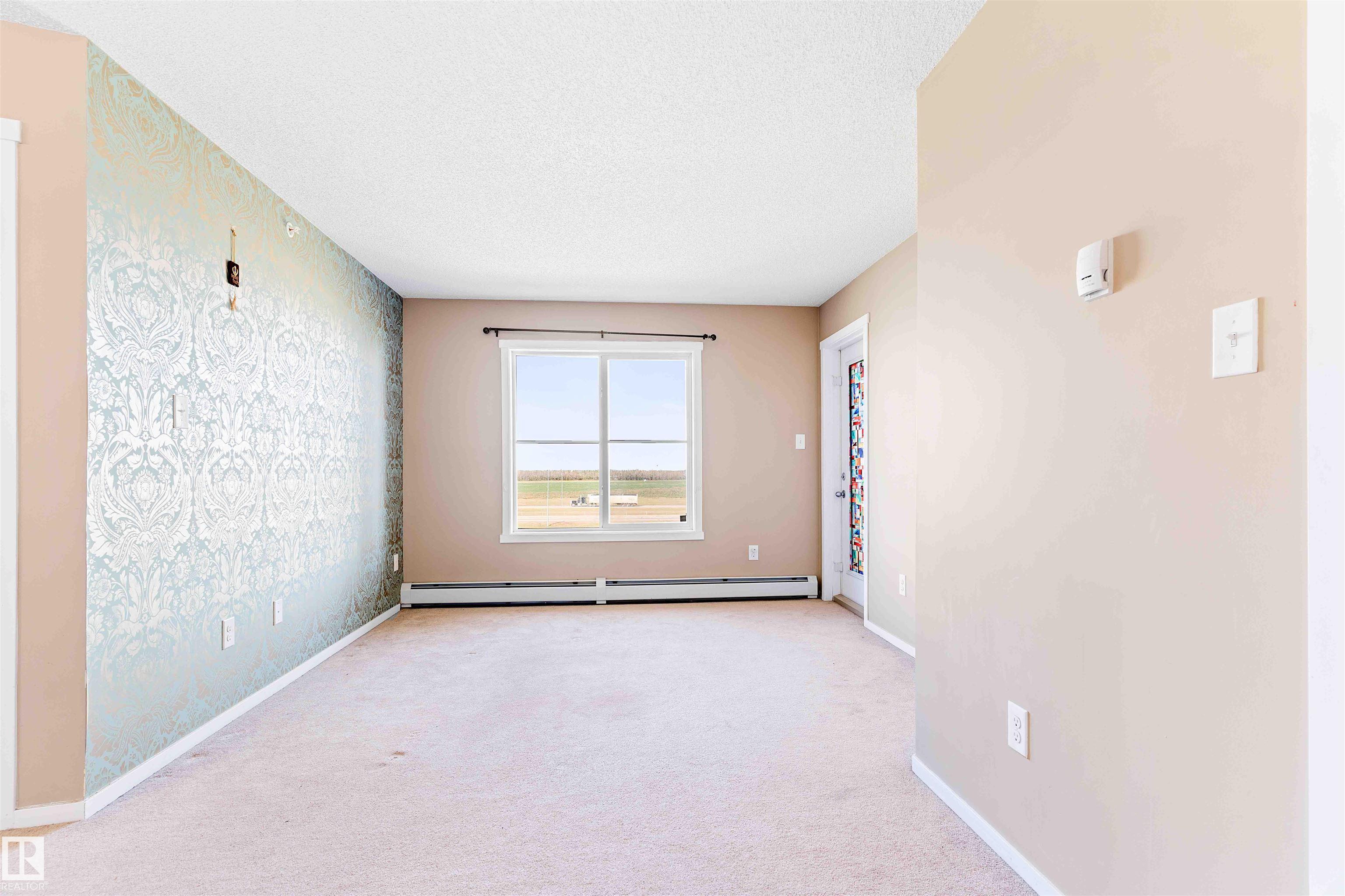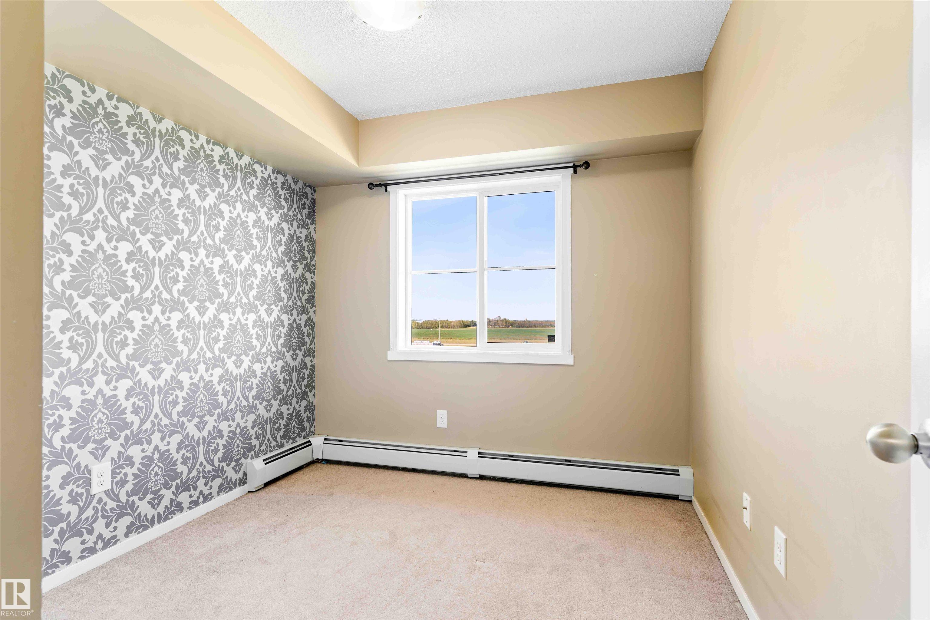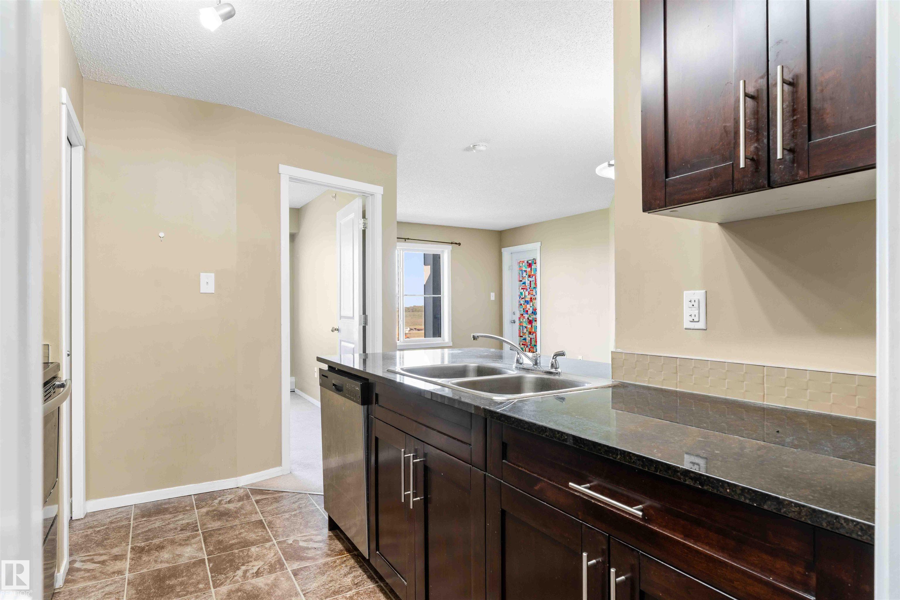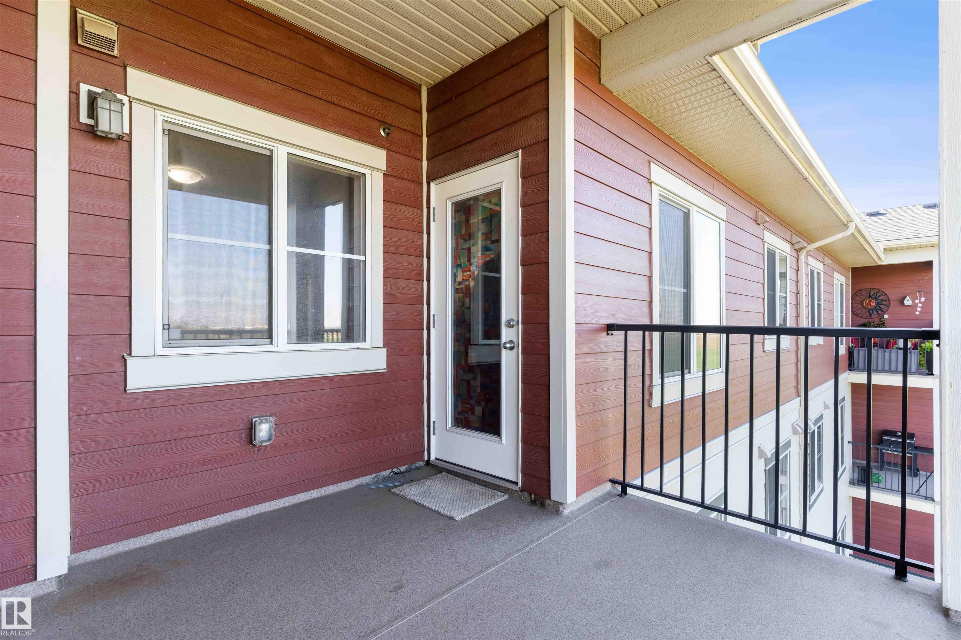 PRICED TO SELL! Welcome to Vita Estates! This move-in ready 2 Bed, 2 Bath condo offers modern open-concept living with stylish finishes throughout. The bright primary bedroom features a walk-through closet and a private 4-piece ensuite. Enjoy a beautiful kitchen with granite countertops, stainless steel appliances, and ample cabinet space. The spacious living room leads to a covered balcony with peaceful countryside views. Additional highlights include in-suite laundry with stacked front-load washer & dryer, extra storage, and secure building access with elevator. Conveniently located with easy access to Anthony Henday Drive, 82 Street, and 97 Street. Perfect for first-time buyers, downsizers, or investors!