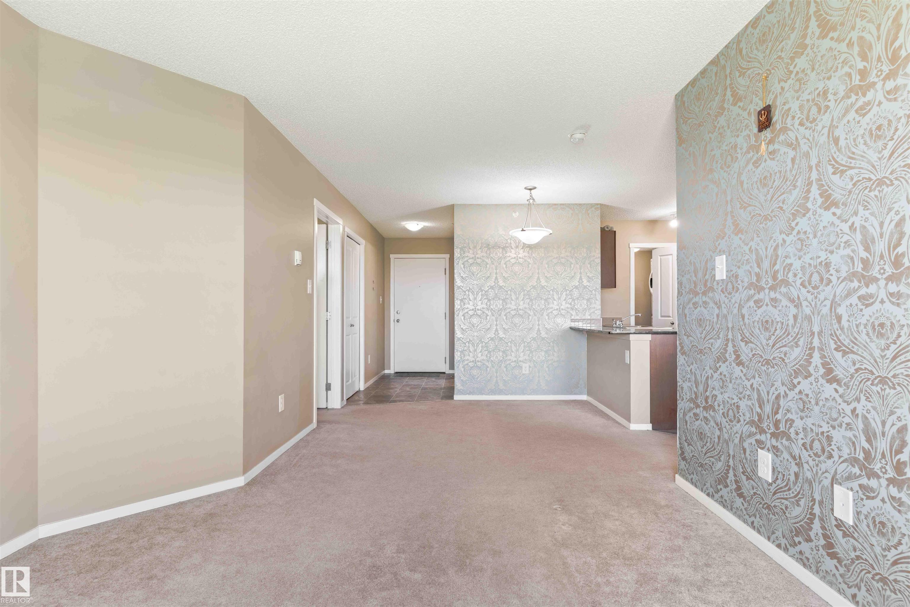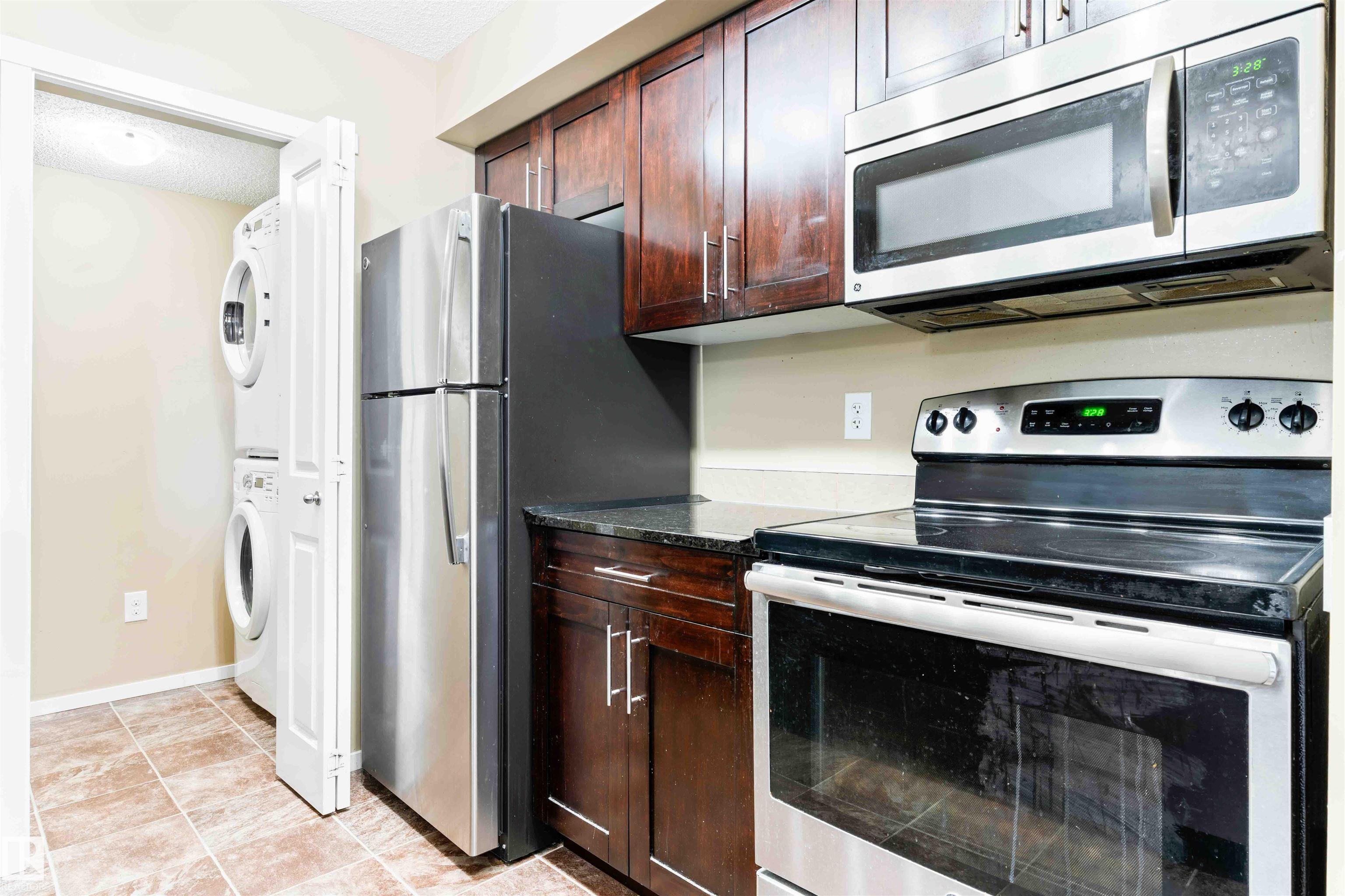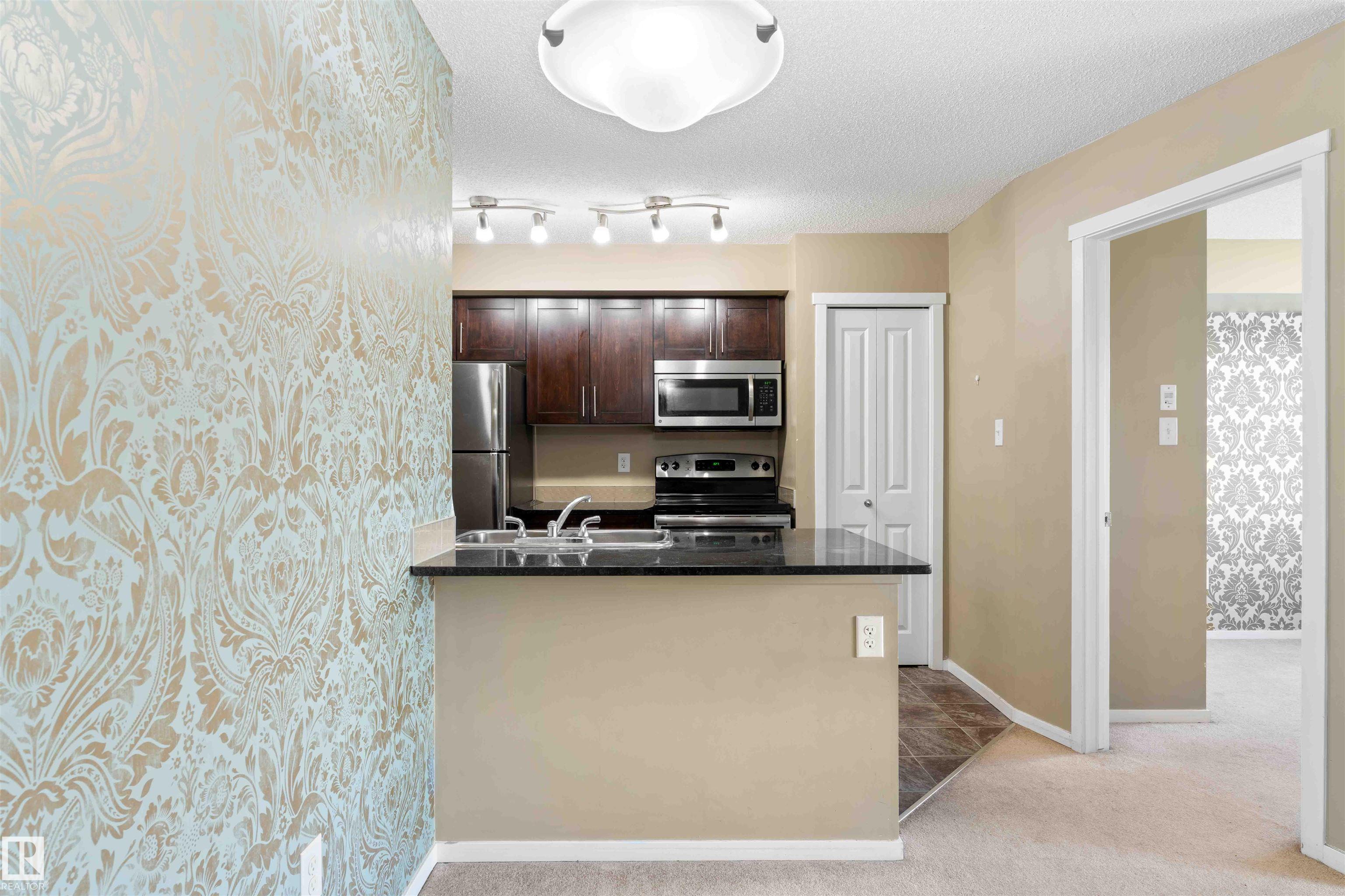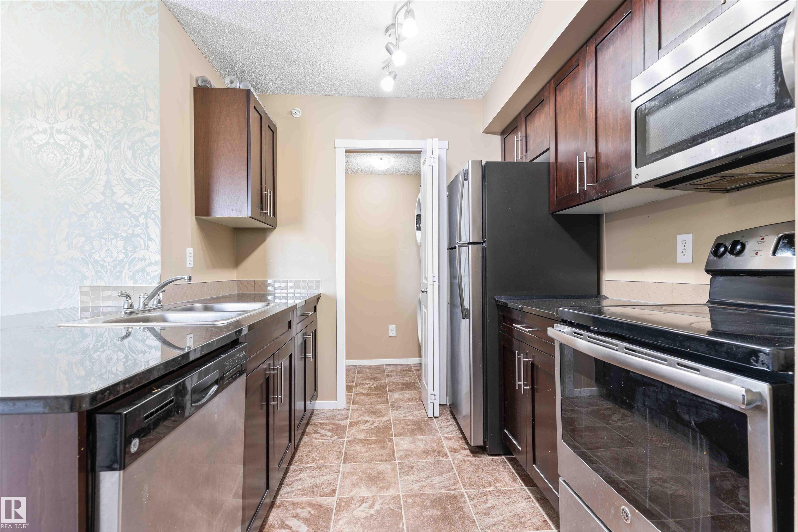PRICED TO SELL! Welcome to Vita Estates! This move-in ready 2 Bed, 2 Bath condo offers modern open-concept living with stylish finishes throughout. The bright primary bedroom features a walk-through closet and a private 4-piece ensuite. Enjoy a beautiful kitchen with granite countertops, stainless steel appliances, and ample cabinet space. The spacious living room leads to a covered balcony with peaceful countryside views. Additional highlights include in-suite laundry with stacked front-load washer & dryer, extra storage, and secure building access with elevator. Conveniently located with easy access to Anthony Henday Drive, 82 Street, and 97 Street. Perfect for first-time buyers, downsizers, or investors!