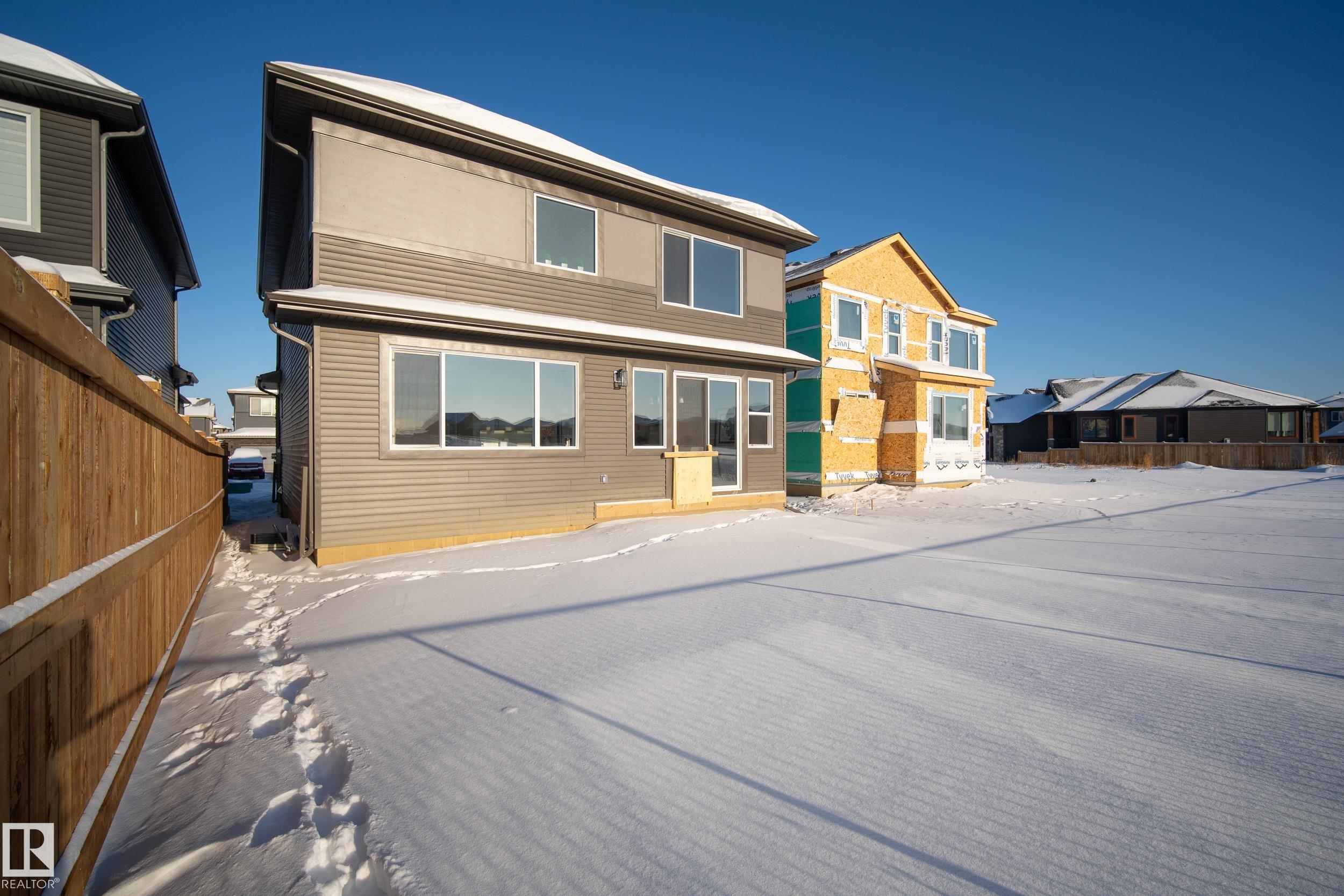 Beautiful brand new home by Legacy Signature Homes on a 34? pocket lot, loaded with upgrades and designed for modern living. Features an attached TRIPLE garage with floor drain, open concept main floor with a den, bright living room with electric fireplace, walkthrough pantry, and a custom mudroom with built-in storage. The kitchen and dining area flow seamlessly for both everyday living and entertaining. Upstairs offers a spacious bonus room, convenient laundry, and two bedrooms with a full 4-piece bath. The impressive primary suite includes a 5-piece ensuite with freestanding tub, walk-in shower, private water closet, and generous walk-in closet. Backing onto a field, this home offers peaceful views with walking access to the local school. Ideally located close to everyday amenities and still a short drive to all that Edmonton has to offer, this home perfectly blends comfort, style, and function.
