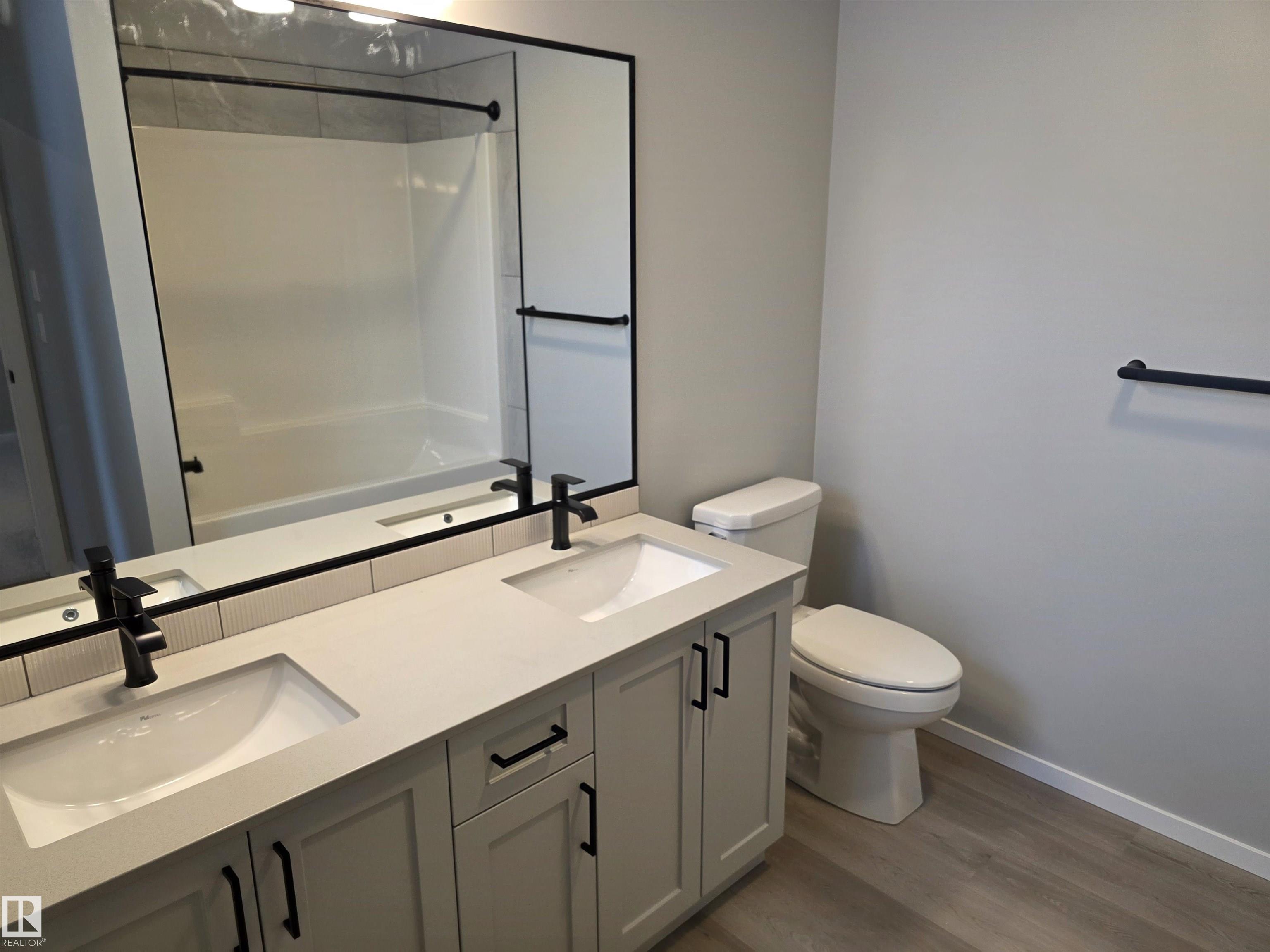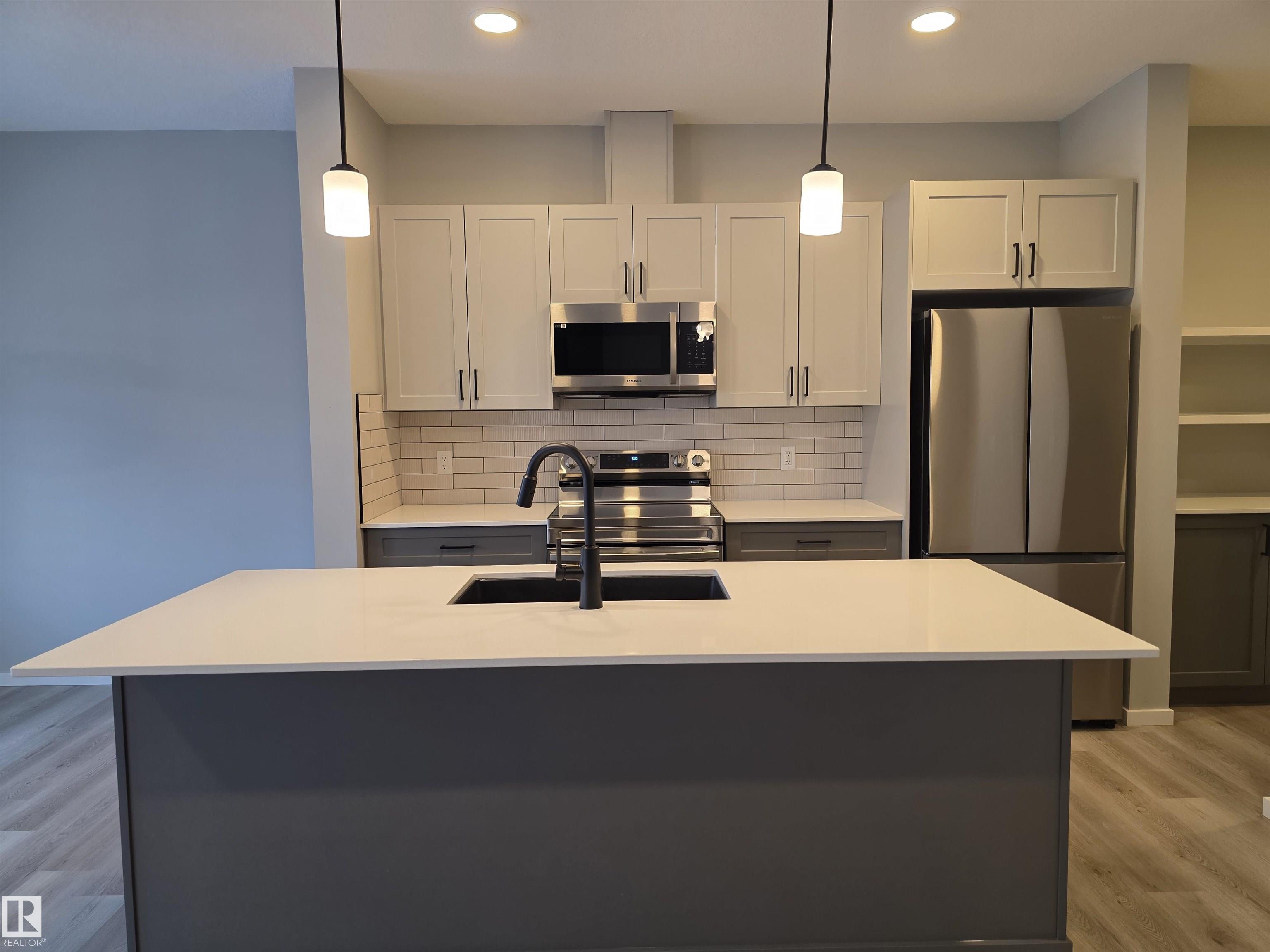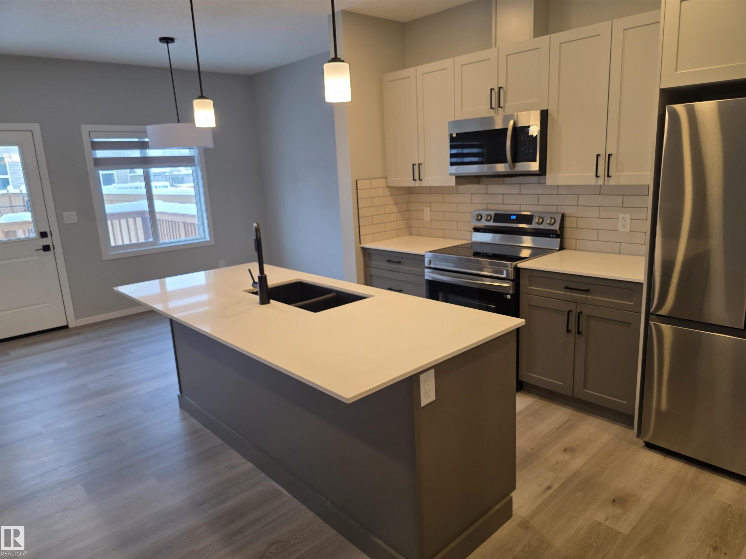 IMMEDIATE POSSESSION. This newly built 2-storey half duplex by Alquinn Homes offers exceptional value backing greenspace and a deck already included. The main floor showcases a contemporary open-concept design that seamlessly connects the kitchen, dining, and living areas?ideal for both everyday living and entertaining. The modern kitchen is thoughtfully appointed with a central island, breakfast bar, walk-in pantry, and refined finishes throughout. A practical rear mudroom adds convenience with a built-in bench and cubbies. Upstairs, enjoy the flexibility of a bonus room alongside upper-floor laundry, 2 additional bedrooms, and a full bathroom. The primary suite is a private retreat, featuring a spacious walk-in closet and a beautifully finished 5pc ensuite with elegant fixtures. UPGRADES: deck, fully fenced yard, upgraded appliances, triple-pane windows, upgraded flooring, MDF shelving throughout, double closet doors, soft-close cabinetry, sill granite sinks, and more.