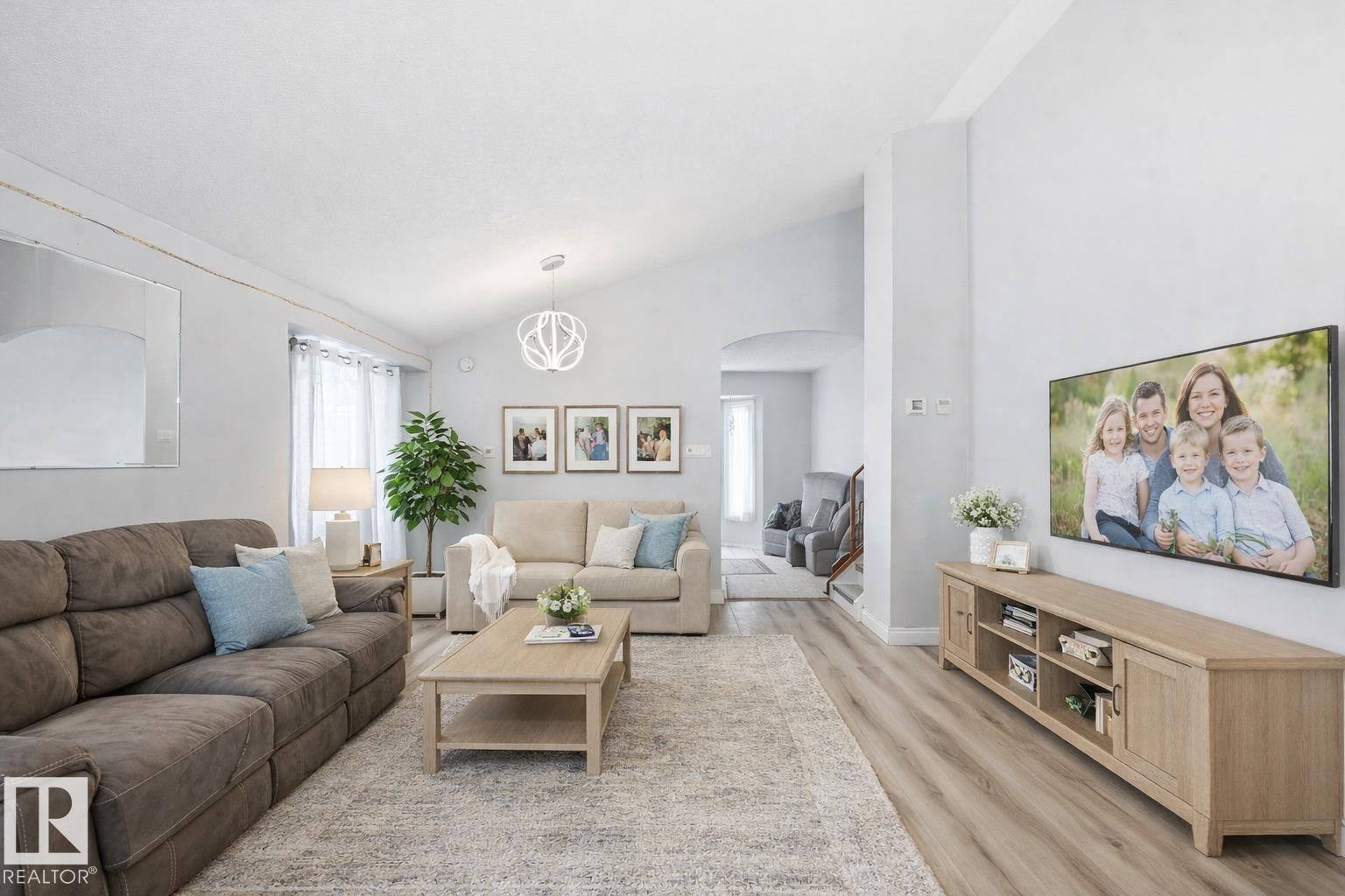 Welcome to this well-maintained 4-level split in the desirable community of Bisset! Situated on a large pie-shaped lot, this home offers plenty of outdoor space for entertaining, gardening, or future possibilities. Inside, you?ll find 3 spacious bedrooms and 2.5 bathrooms, providing a functional layout ideal for families or first-time buyers. The thoughtful floor plan creates defined living spaces while maintaining a comfortable flow throughout the home. Key upgrades include NEW SAMSUNG APPLIANCES, a NEW HIGH EFFICIENT FURNACE,NEW HOT WATER TANK and recently installed 25 -YEAR SHINGLE AND EAVESTROUGHS, offering peace of mind and improved energy efficiency for years to come. Located close to parks, schools, shopping, public transit, and easy access to major routes, this home combines VALUE, SPACE , and LOCATION. A fantastic opportunity to own in a family-friendly southeast Edmonton neighbourhood!
