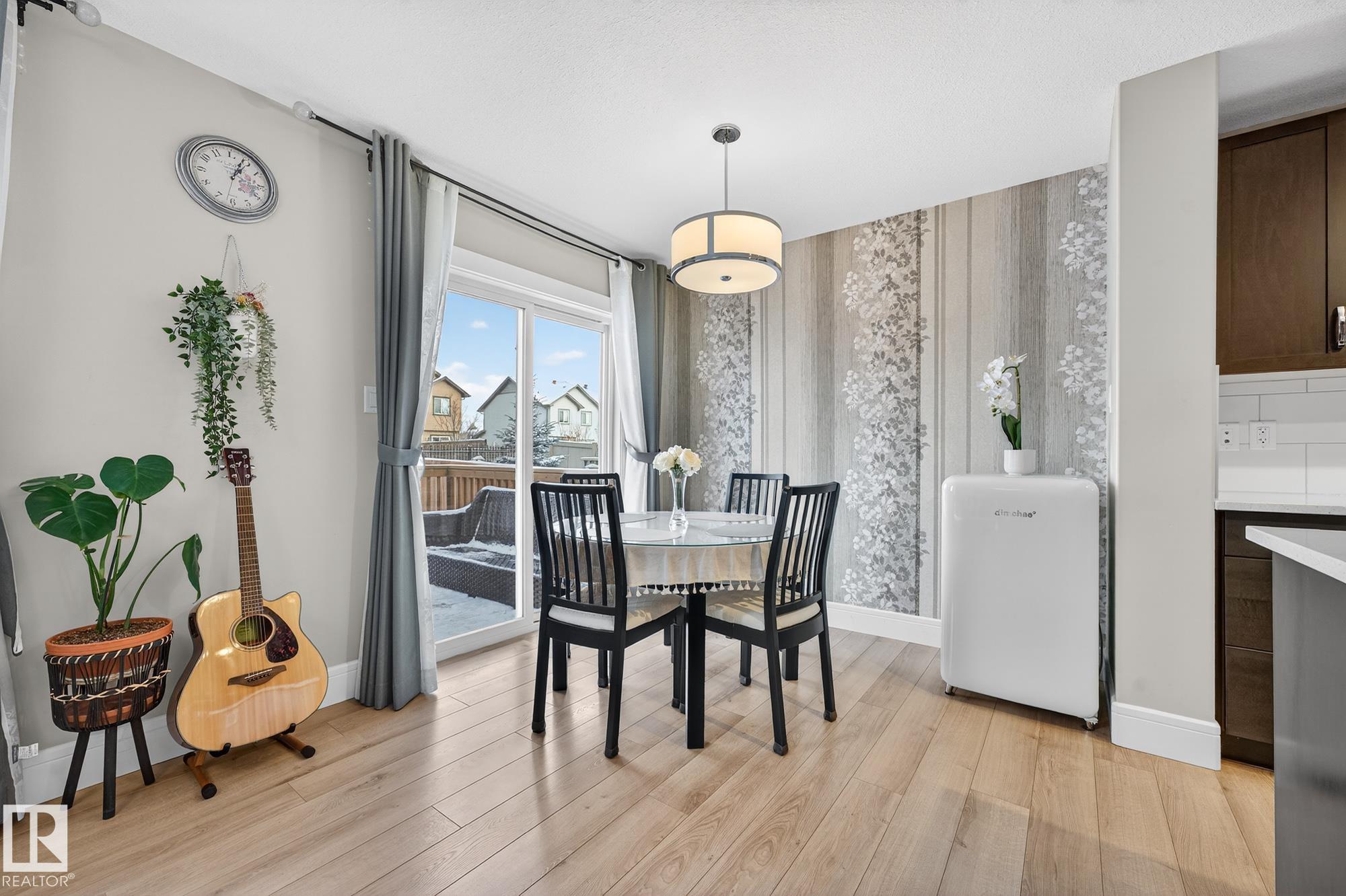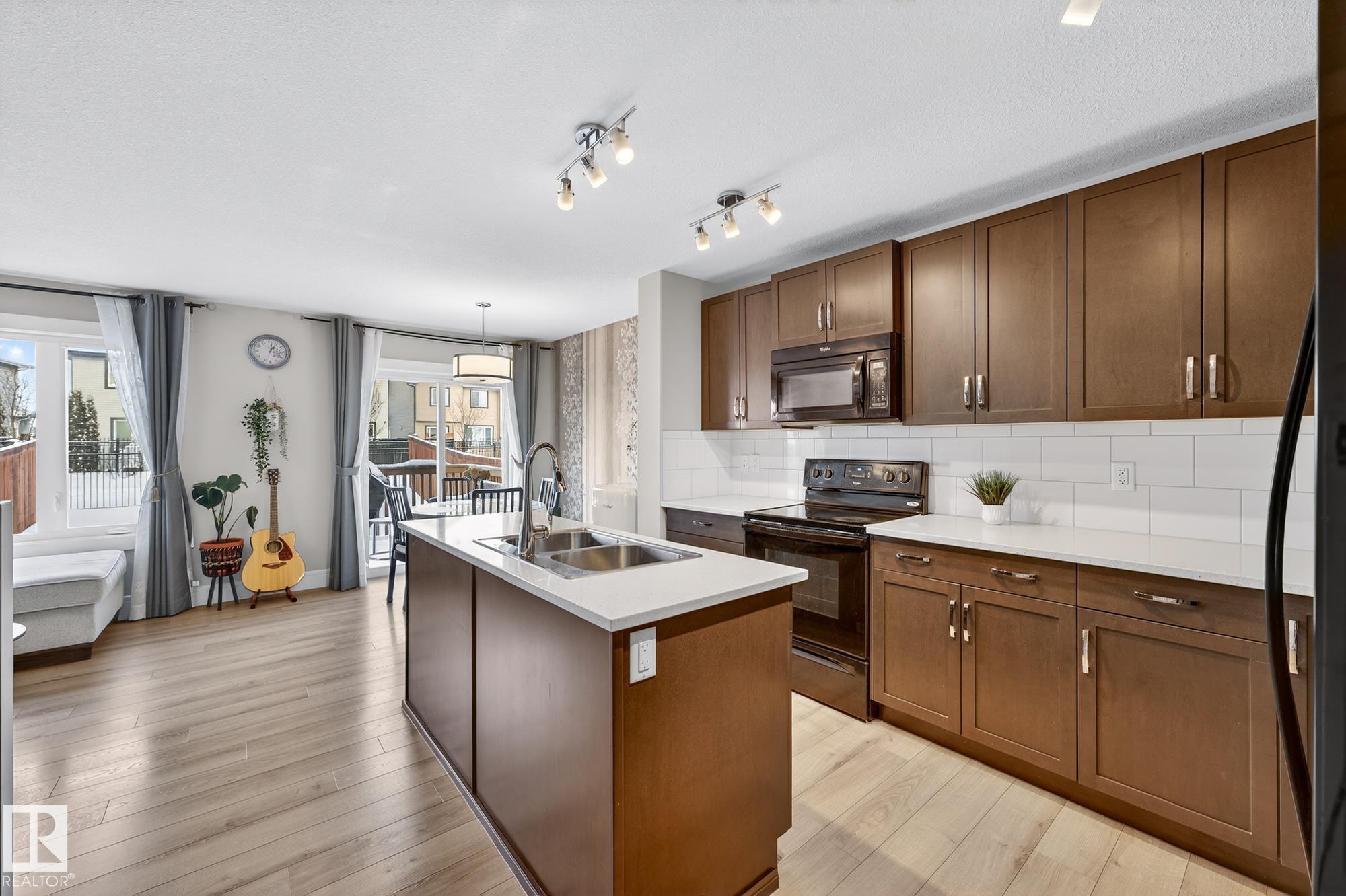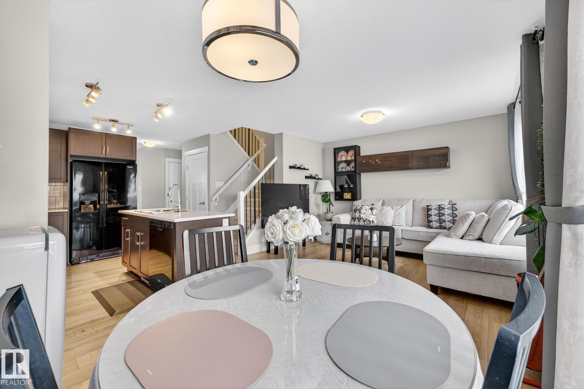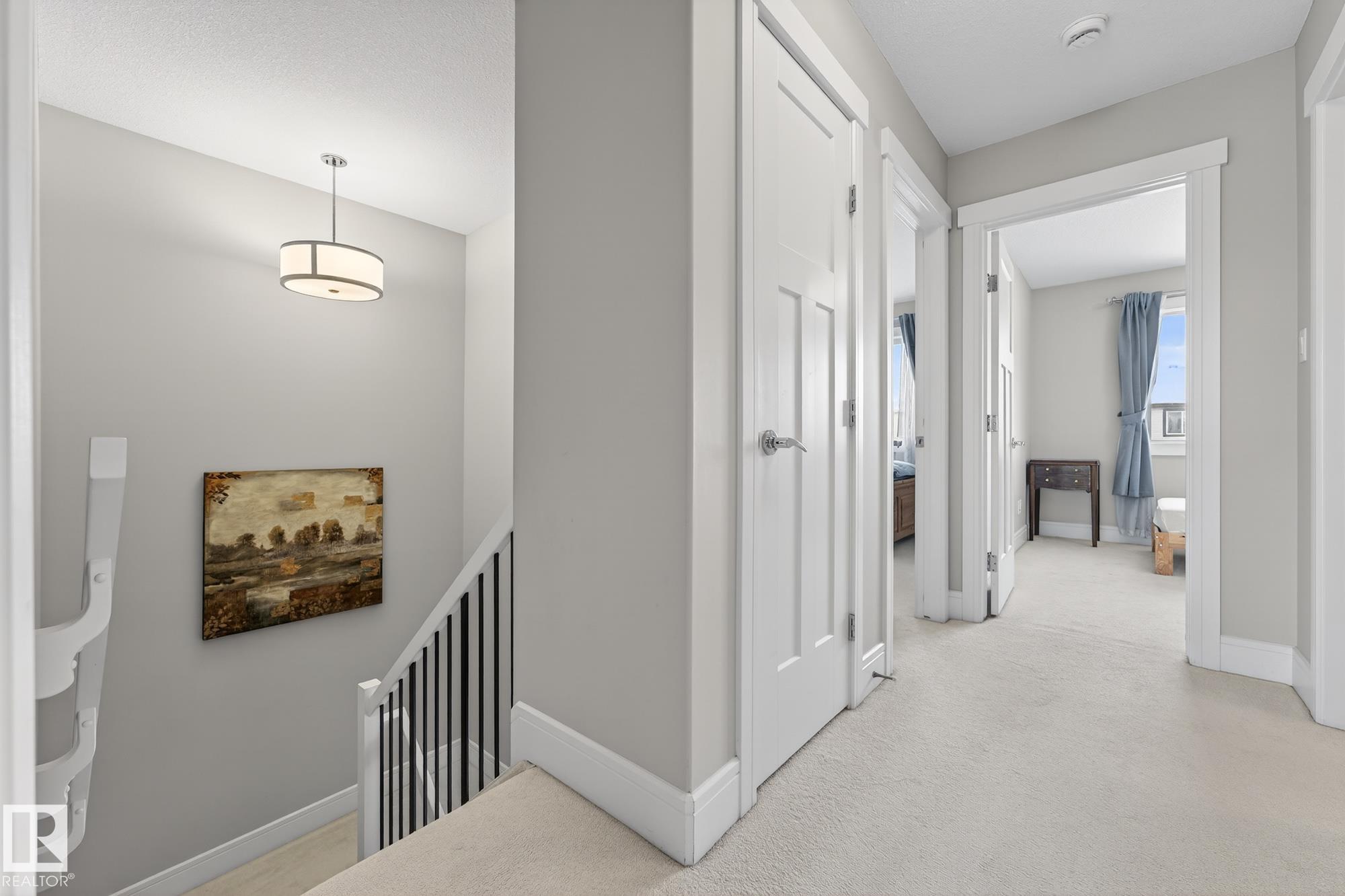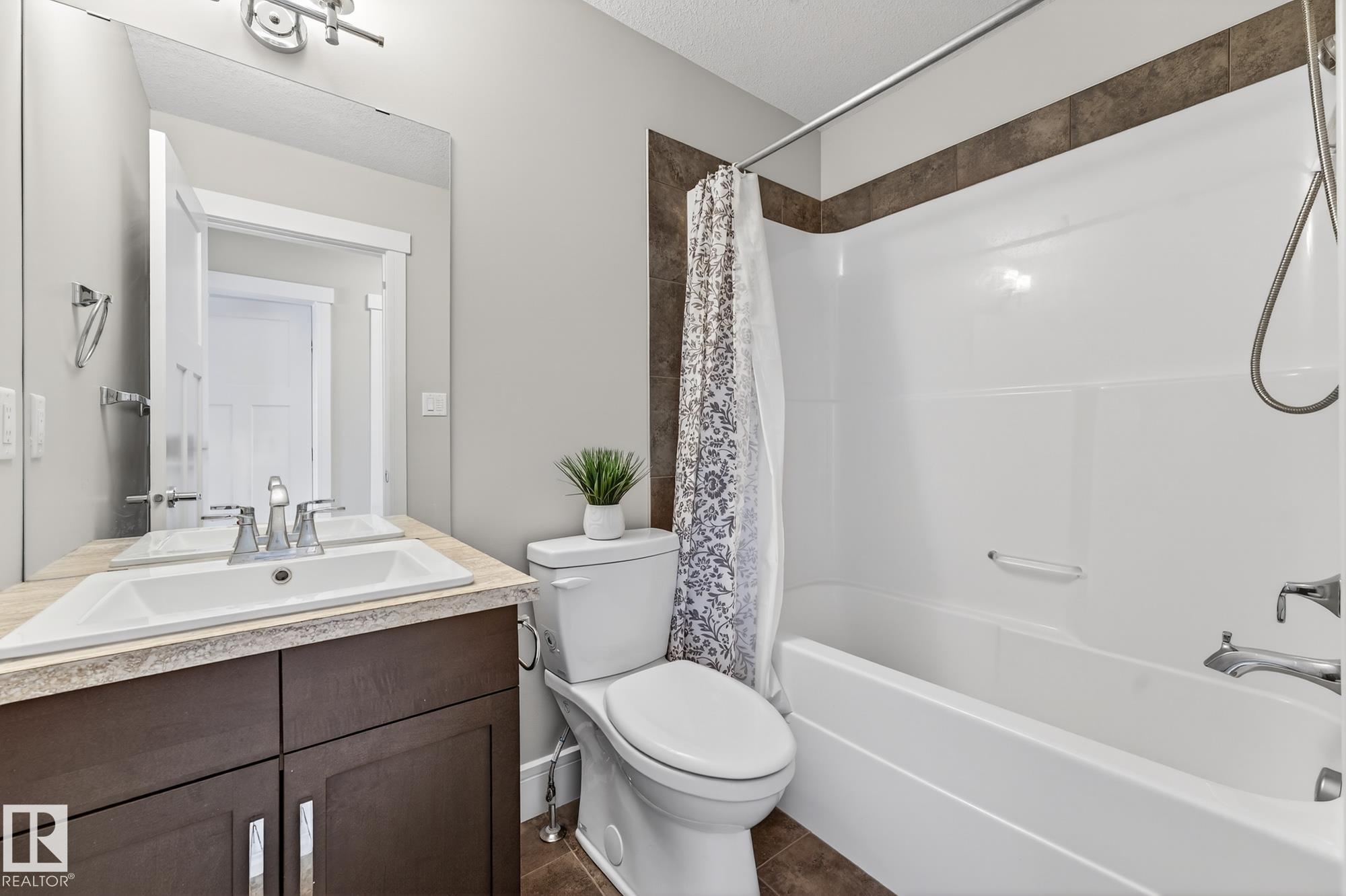 This is the perfect home for your New Year's resolution! Located in highly desirable Windermere, this home offers total living space of 1,845 Sq Ft ,and an unbeatable lifestyle. Enjoy the premium location steps from a top playground and backing onto a peaceful walking trail leading to a scenic pond, plus the convenience of great schools and shopping nearby. The open-concept main floor features durable laminate flooring and a gourmet kitchen with sleek quartz countertops and black appliances. The living room includes custom built-ins and display shelving for smart storage. Upstairs, the massive Primary Suite boasts a dramatic vaulted ceiling, a spacious w/i closet, and a luxurious 4-piece ensuite, complemented by two additional bedrooms and a second 4-piece bath. The fully finished basement enhances the living space with resilient laminate flooring, a home theatre-wired bonus room, and a 2-piece bath. Don't miss this gem! A perfect lifestyle property awaits?come live life!
