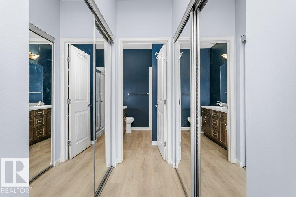 Lovely 2 bed/2bath PLUS den has tons of space. It features an open concept design with bedrooms tucked away from the living space. The large open kitchen includes upgraded granite countertops with SS appliances and opens onto the dining and family room, and the covered patio offers a private oasis with gas hook-up to BBQ year round. The massive primary bedroom includes a 4 pc. ensuite and walk-through closet, and the second bedroom offers tons of space to spread out! Your home also comes complete with in-suite laundry and a den - as well as central A/C for the summer and a fireplace for cozy winter nights. Also included is a titled underground parking stall c/w storage unit. Enjoy fantastic amenities with an exercise room, social/games/theatre room and guest suite rental for extra visitors. Close to shopping, schools, public transit, and just off the Henday to zip anywhere in the city!