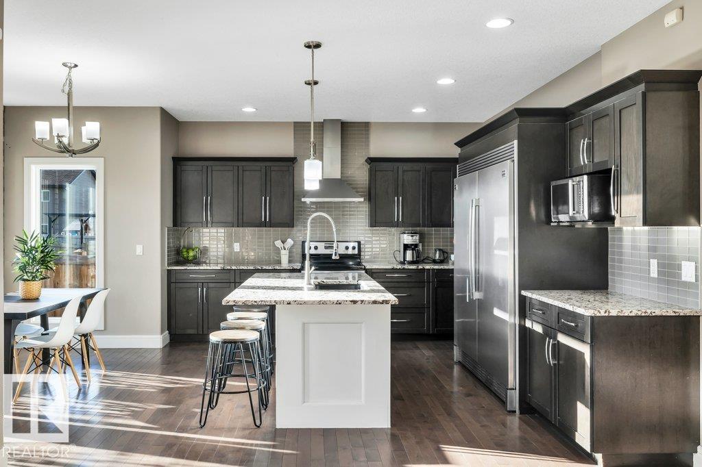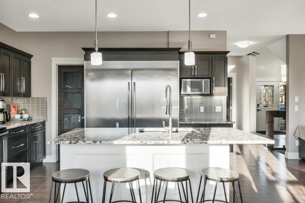 Welcome to a bright, stylish 3-bed, 2.5-bath family home with a sunny south-facing backyard and standout curb appeal. The Riverstone rock exterior & wide entry porch make a great first impression, and inside you?ll love the soaring open-to-above entry, glass-panel staircase, & feature brick walls in the dining room & living room. A main-floor den is ideal for a home office, flex space, or guests. The kitchen/dining area is designed for everyday living & entertaining, featuring granite countertops, stainless steel appliances, an oversized refrigerator, & a walk-through pantry that connects to the mudroom for easy organization. Upstairs features a bonus room, upper laundry, two junior bedrooms with a full bath, plus a primary retreat with a walk-in closet & a 5-piece ensuite. Enjoy a larger-than-average fenced & landscaped yard, deck, and a blank canvas basement with NEW HWT, rough-in plumbing?ready for your custom finish. Great location & a functional layout that works. NOT a zero lot line. Welcome Home!