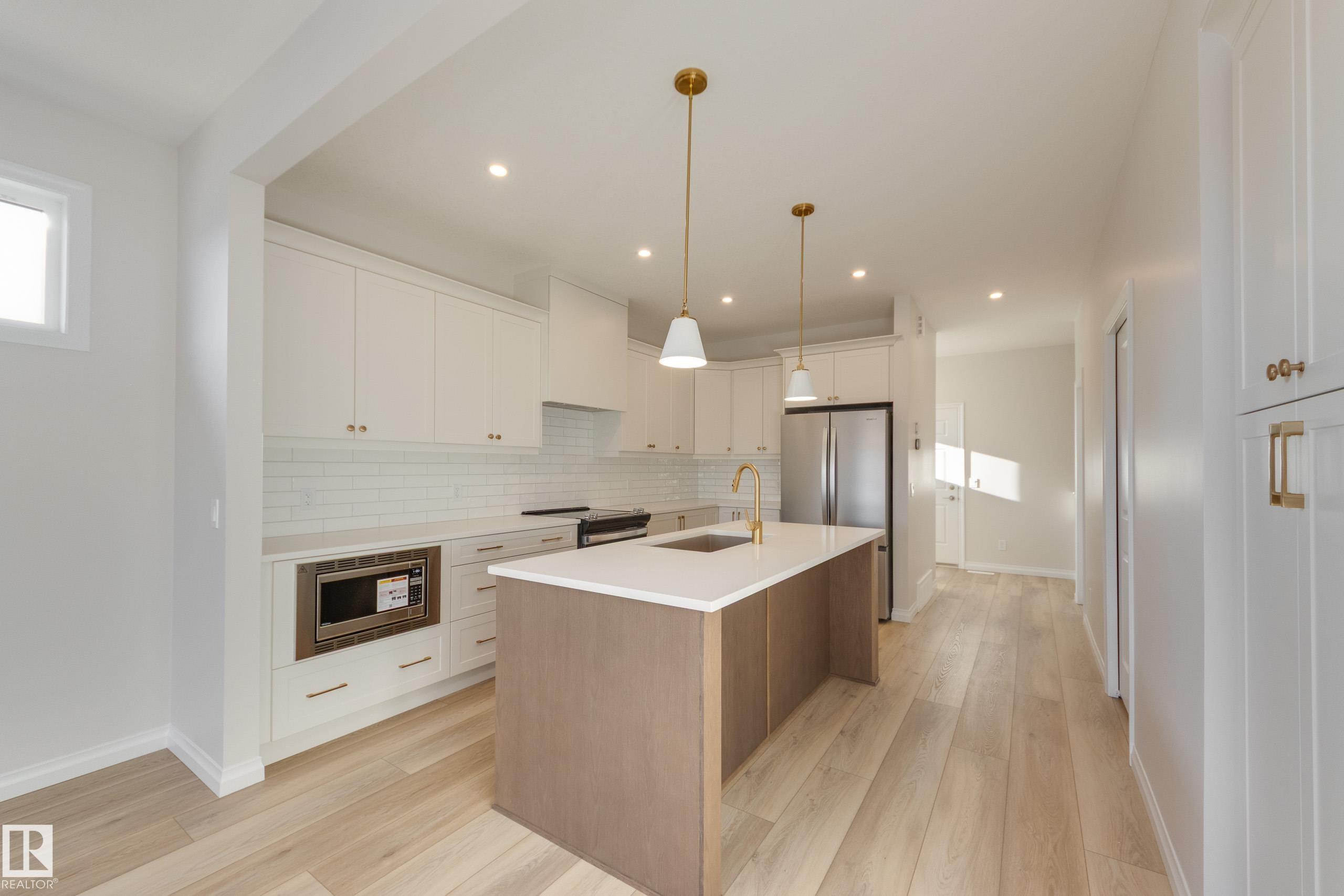 Welcome to the Parker model by Jayman BUILT, a beautifully designed half-duplex villa offering 1,061 sq ft of efficient, modern living with no condo fees. Step inside to find a bright, open layout featuring triple-pane windows and elegant finishes throughout. The kitchen impresses with sleek quartz countertops, stainless steel appliances, and designer cabinetry that blend style and function seamlessly. The spacious great room and dining area create a comfortable flow for daily living and entertaining. Built for long-term comfort, this home includes solar panels, HRV, a high-efficiency furnace, and a tankless hot water system. Thoughtfully designed and energy-efficient, this home combines practicality with refined contemporary style in a welcoming community setting.