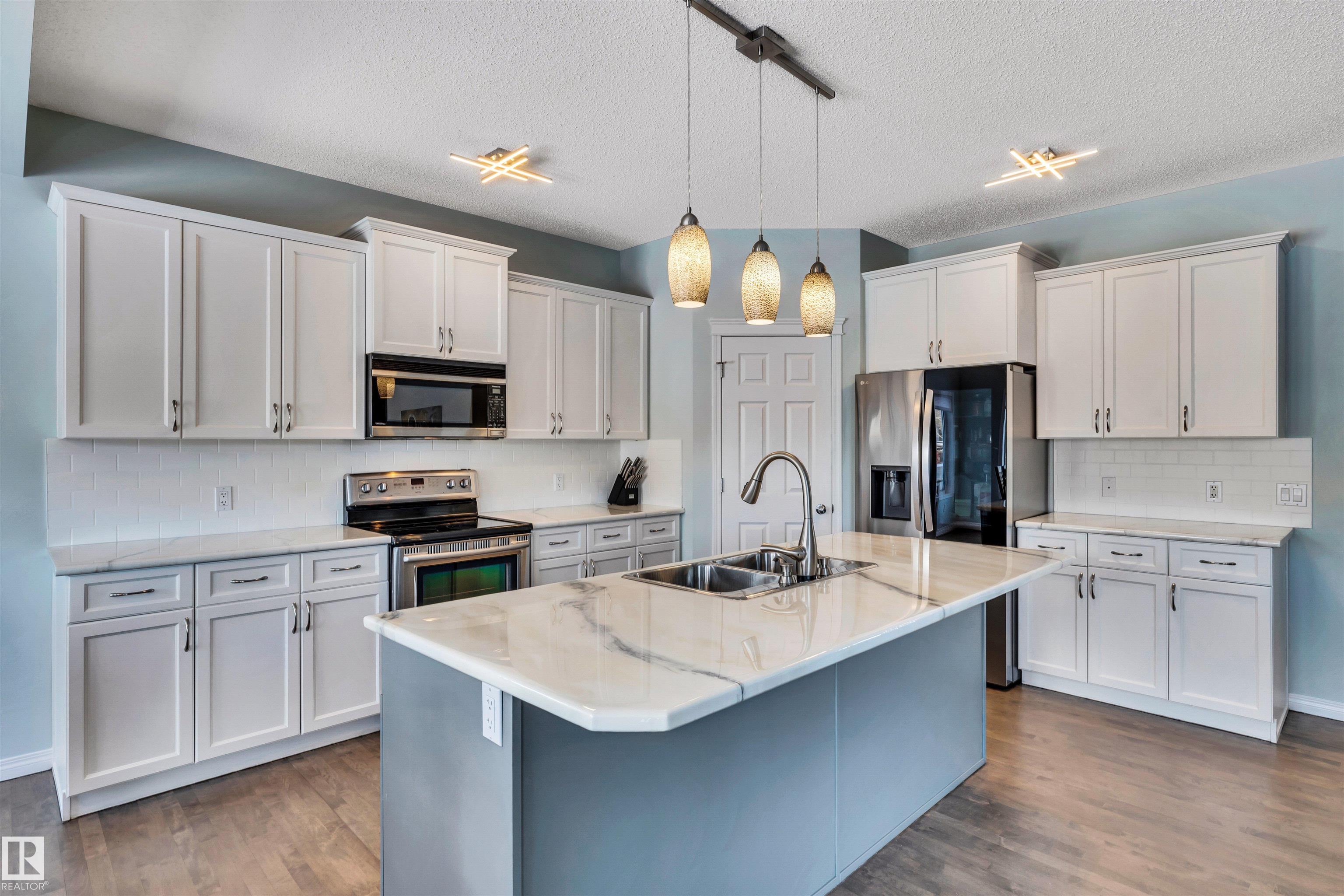 FULLY FINISHED! Everything you have been looking for at a price you can afford! Tucked away in a cul-de-sac this upgraded home is move in ready! Boasting almost 3000 square feet of developed living space w/3+1 bedrooms, 3.5 bathrooms, chef's kitchen w/tons of cabinets, high end stainless appliances, big entertainers island open to the living room w/GAS burning fireplace & dining nook flooded in natural light, 1/2 bath & mud room w/laundry complete the main floor, upper level features luxury vinyl plank flooring, bright bonus room, 3 good sized bedrooms, primary complete with huge soaker tub & glass shower, other 2 bedrooms share a full 4 piece bath, lower level is BEAUTIFULLY finished with INFLOOR HEATING, big family room w/WET BAR, bedroom and big bathroom with glass shower, updates include shingles (2020), new hot water tank, new flooring, new countertops, updated light fixtures & sink fixtures! Minutes to all major amenities, Tri Leisure Center and easy access to connector routes! Shows 10/10!