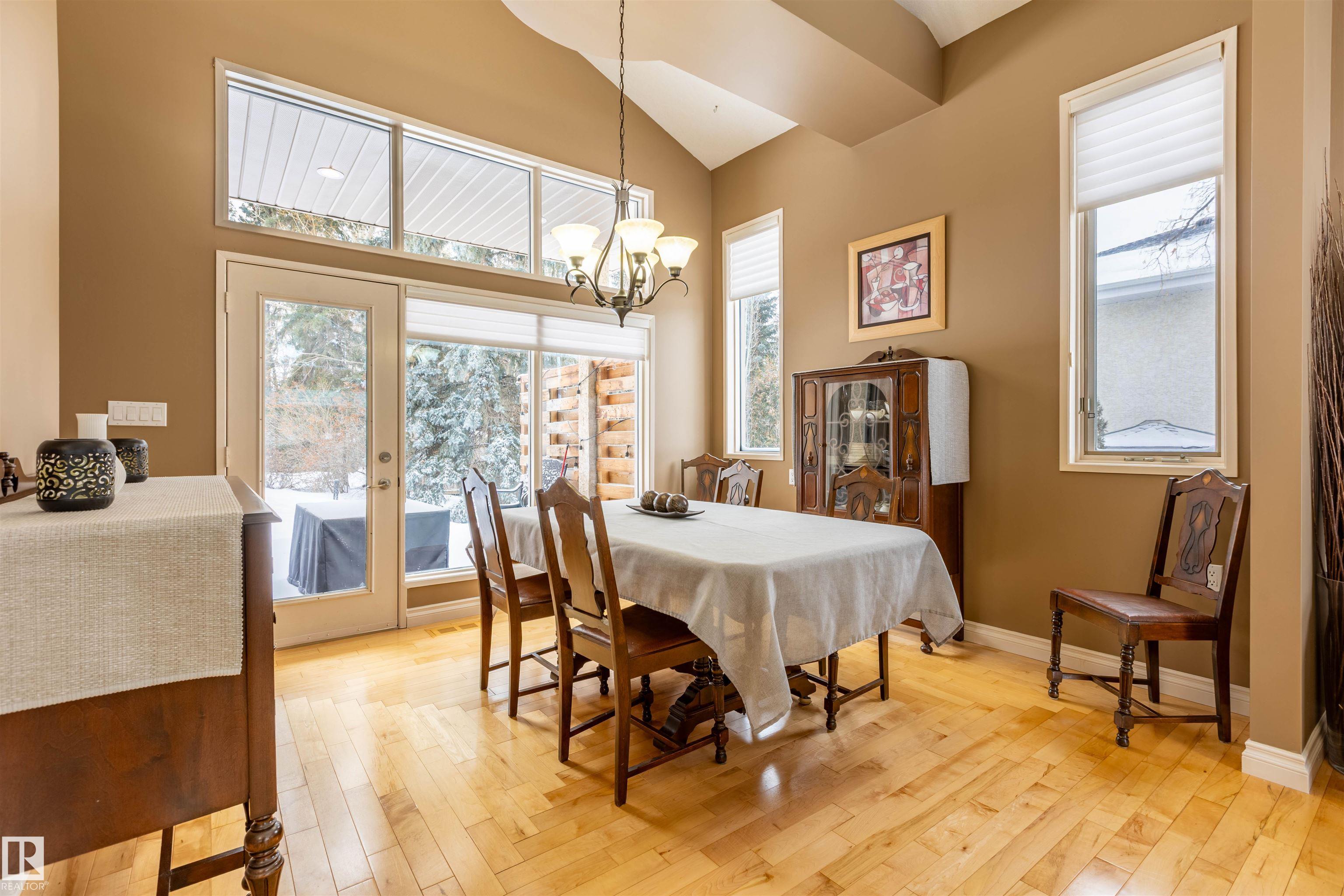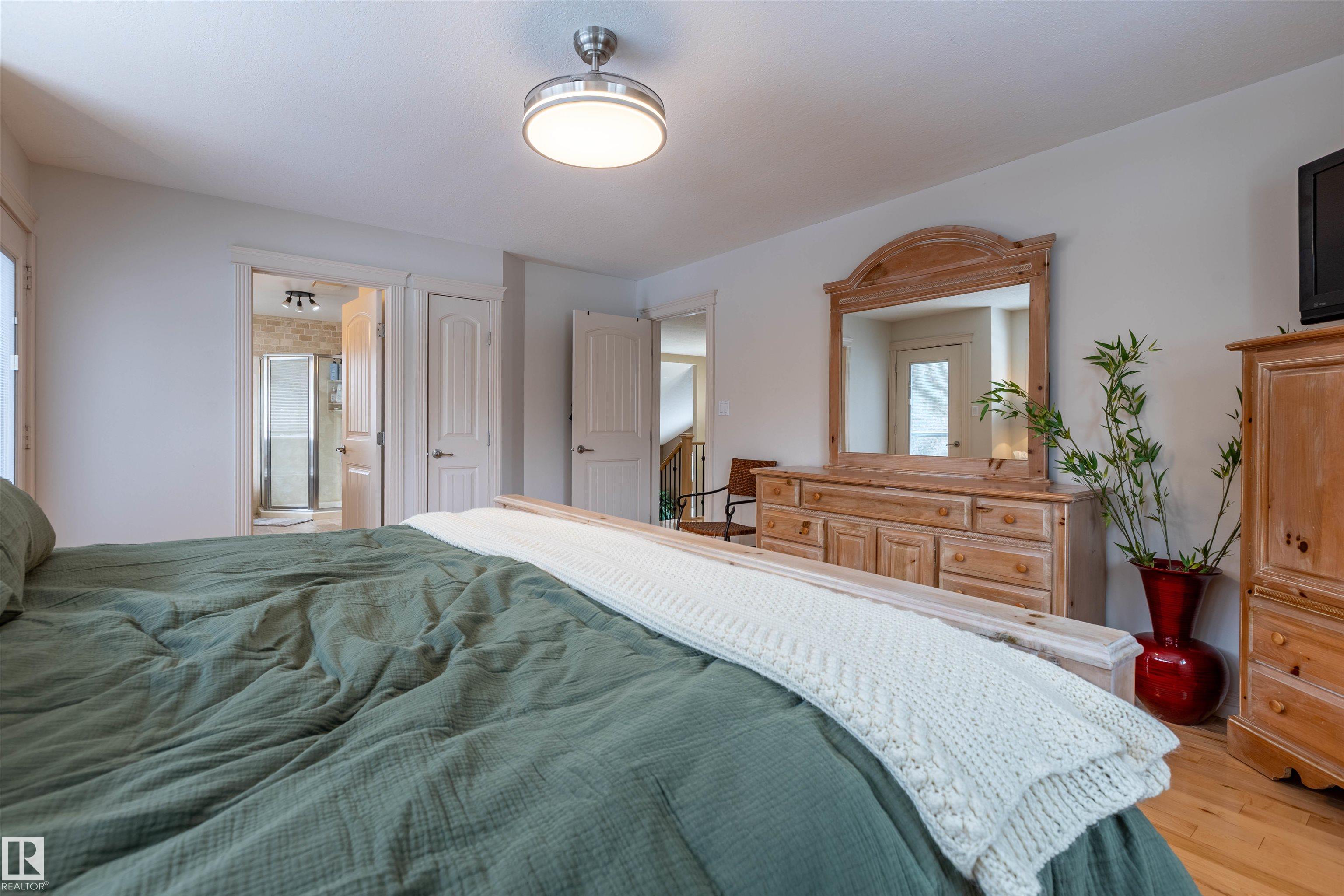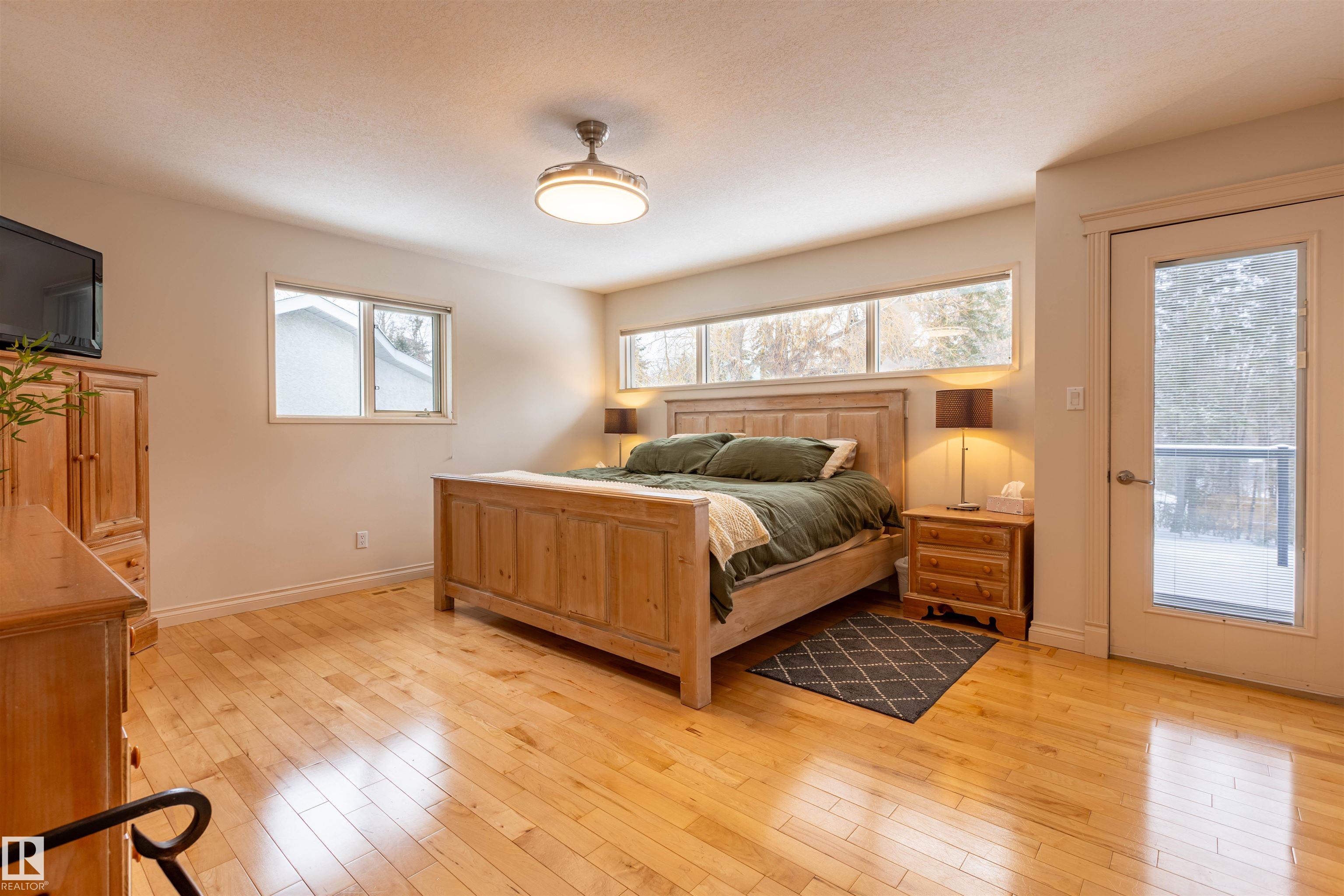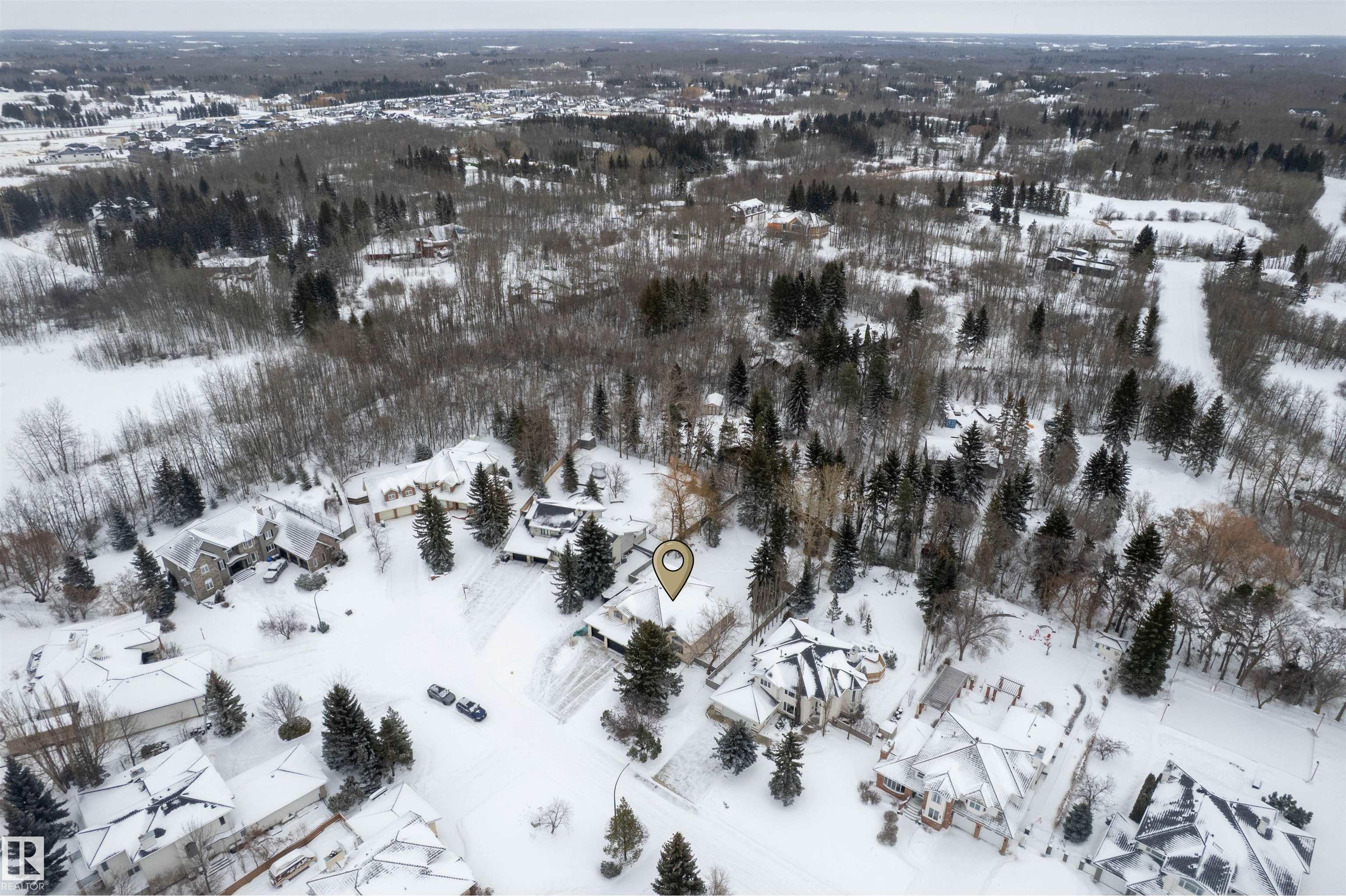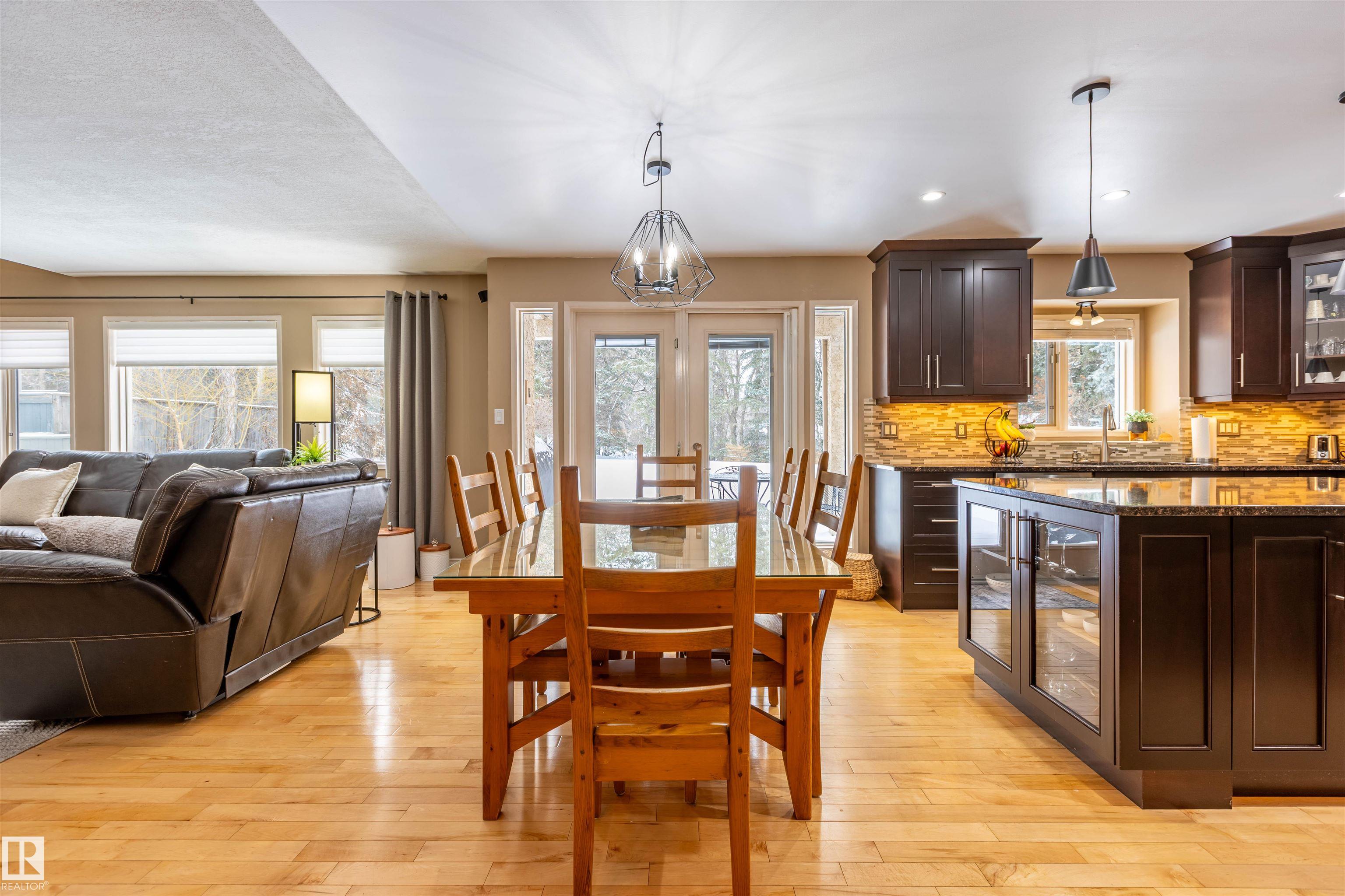 Welcome to the prestigious Estates of Sherwood Park! Tucked away on a quiet, private lot surrounded by mature trees, this beautiful 2700+ SqFt, 5 bed, 4 bath home features a heated triple attached garage, RV parking, 220V wiring, Central A/C, and an unbeatable location. A grand foyer leads to the bright family room and formal dining area before opening to a spacious kitchen and inviting living room with built-in sound system, perfect for entertaining. The main floor also features a large office and mudroom off the garage. Upstairs offers a massive primary retreat with a private south-facing balcony overlooking the backyard, a luxurious 6-pc ensuite with heated floors, two walk-in closets, two additional bedrooms, and convenient upstairs laundry. The fully finished basement includes a large recreation room with built-in speakers and projector, two bedrooms, and a 3-pc bath. Enjoy the sunny south-facing backyard with mature trees, full fencing, landscaping, and a large deck. Some photos contain AI staging.
