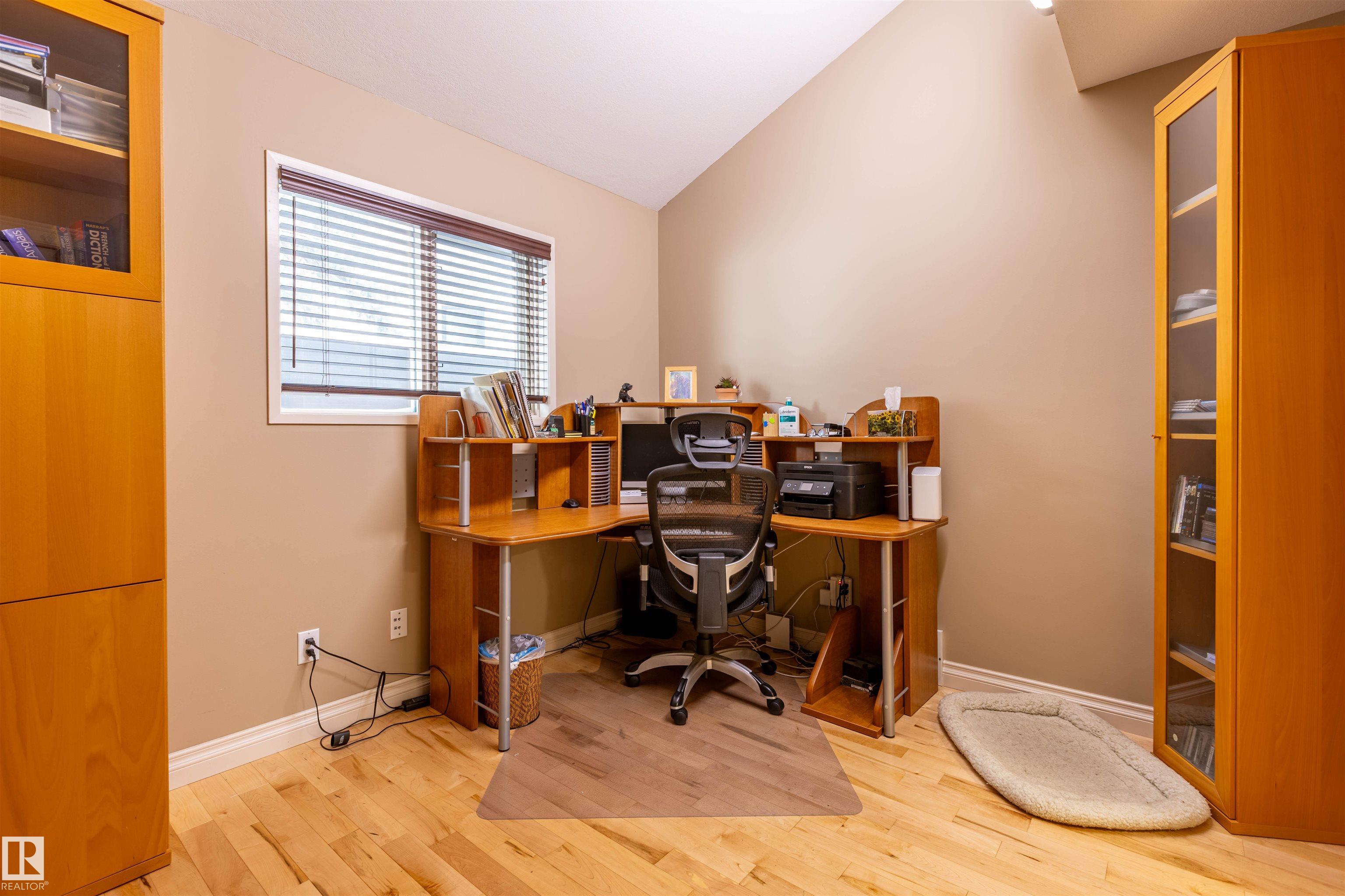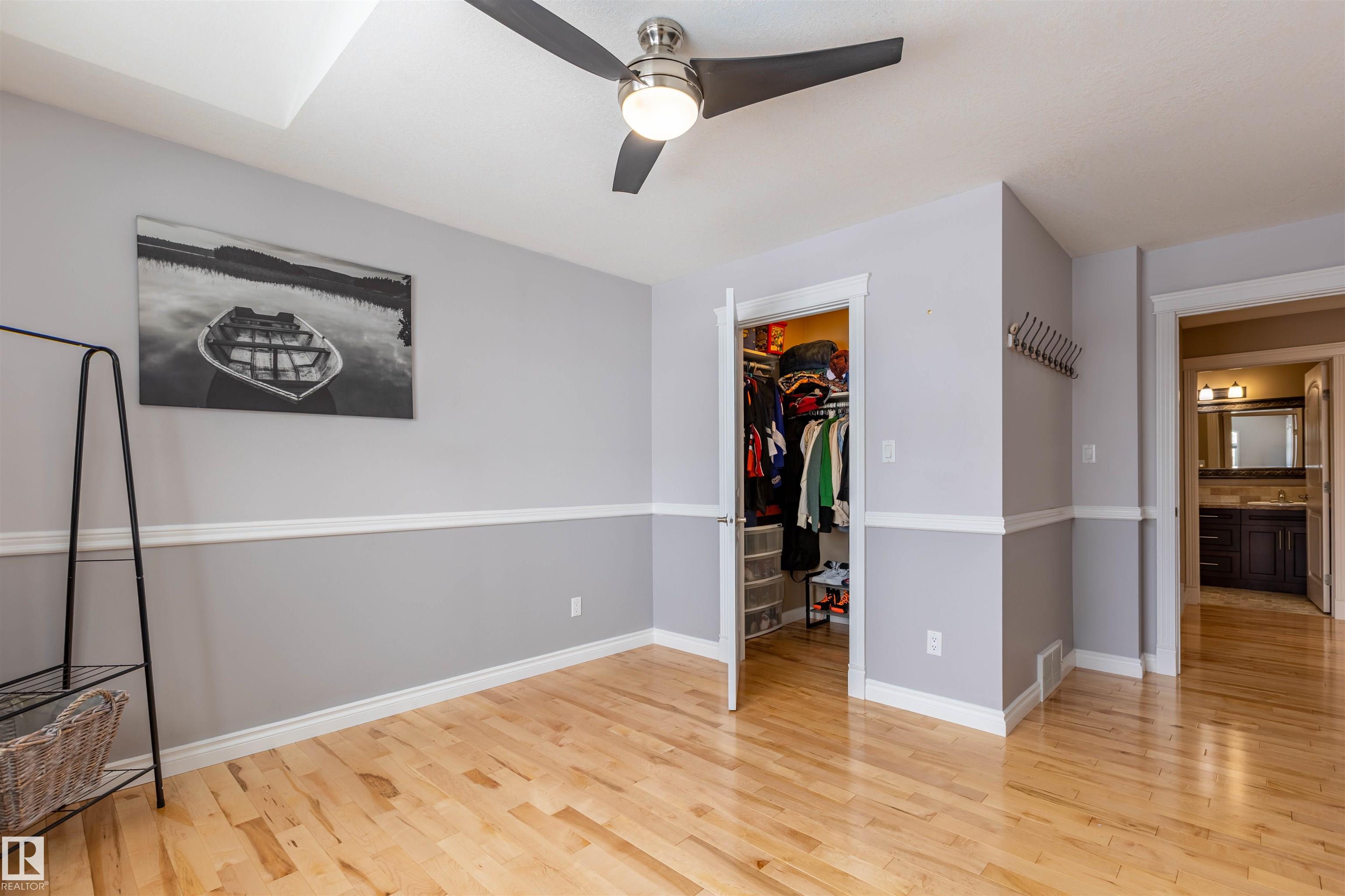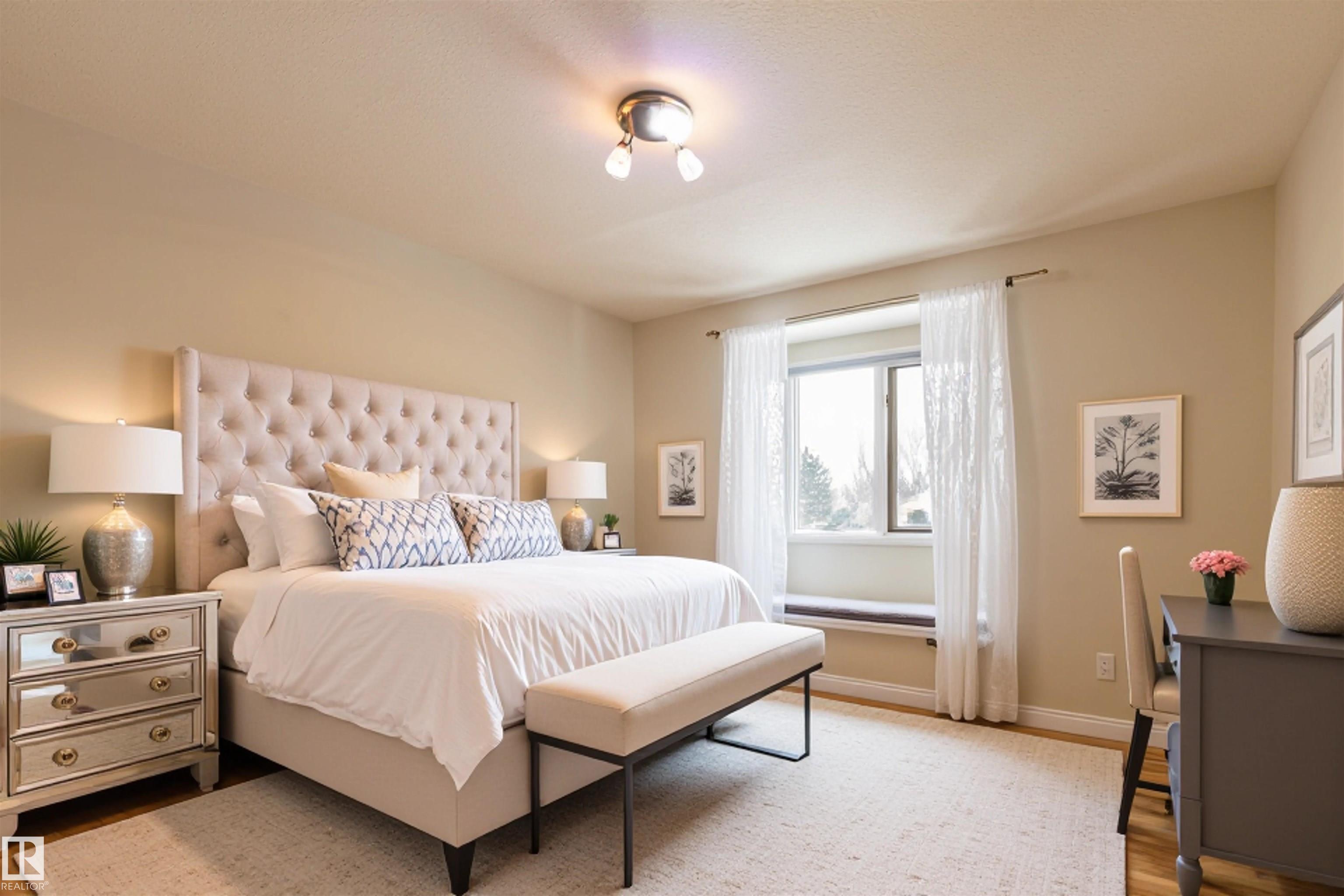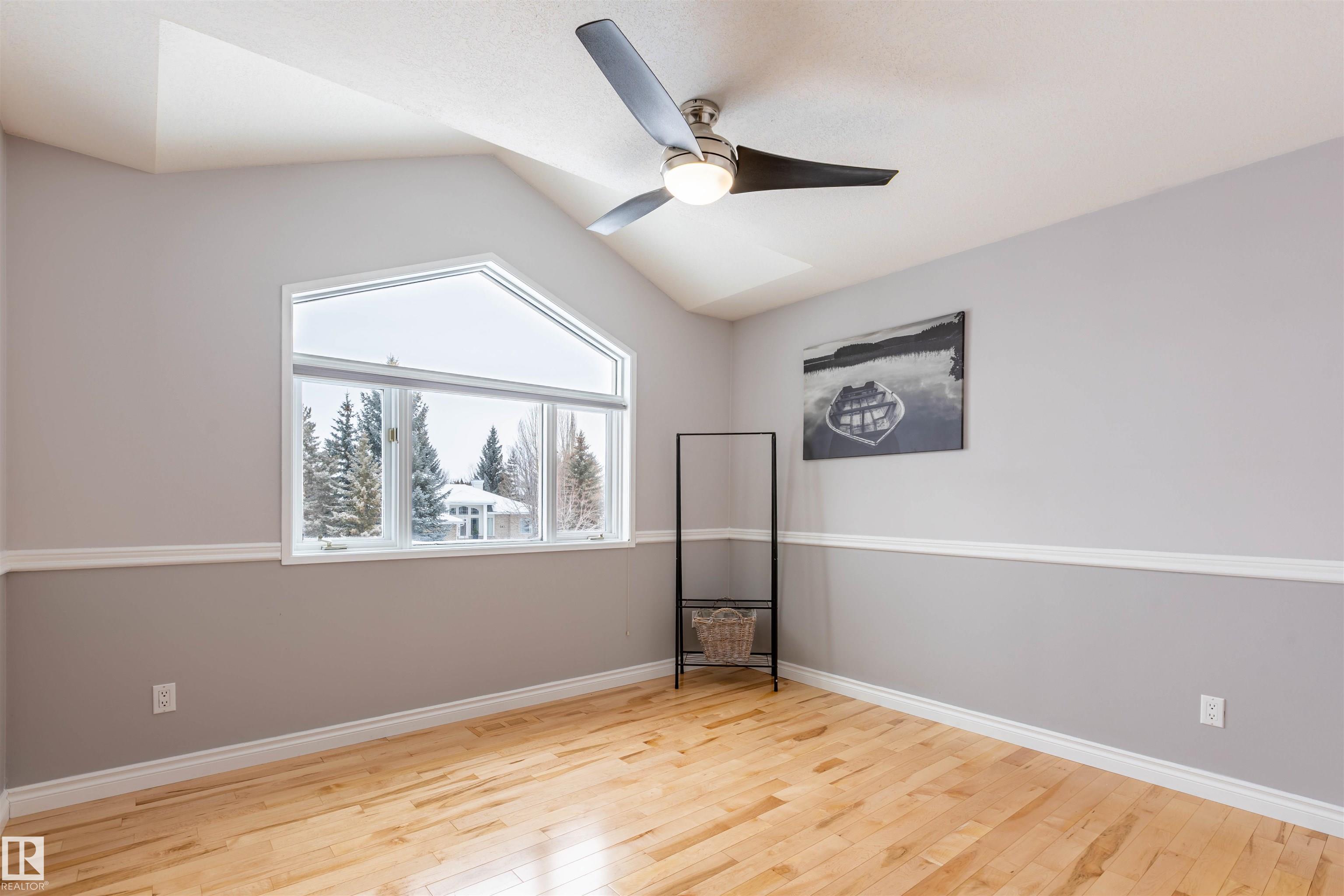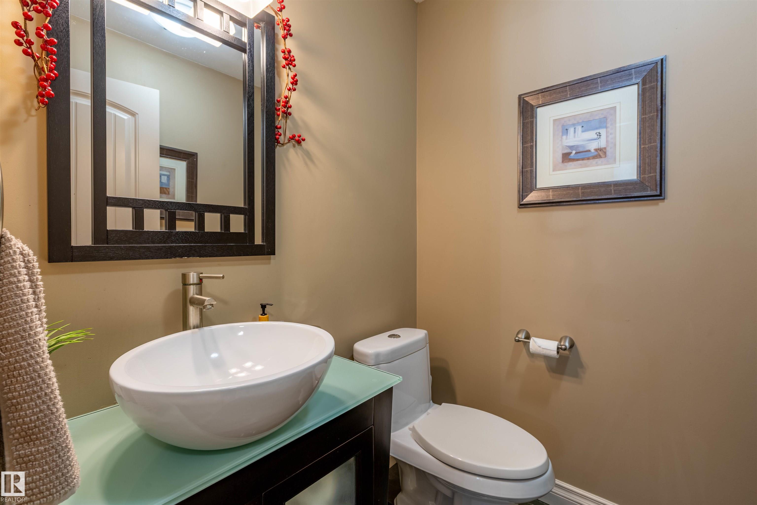 Welcome to the prestigious Estates of Sherwood Park! Tucked away on a quiet, private lot surrounded by mature trees, this beautiful 2700+ SqFt, 5 bed, 4 bath home features a heated triple attached garage, RV parking, 220V wiring, Central A/C, and an unbeatable location. A grand foyer leads to the bright family room and formal dining area before opening to a spacious kitchen and inviting living room with built-in sound system, perfect for entertaining. The main floor also features a large office and mudroom off the garage. Upstairs offers a massive primary retreat with a private south-facing balcony overlooking the backyard, a luxurious 6-pc ensuite with heated floors, two walk-in closets, two additional bedrooms, and convenient upstairs laundry. The fully finished basement includes a large recreation room with built-in speakers and projector, two bedrooms, and a 3-pc bath. Enjoy the sunny south-facing backyard with mature trees, full fencing, landscaping, and a large deck. Some photos contain AI staging.