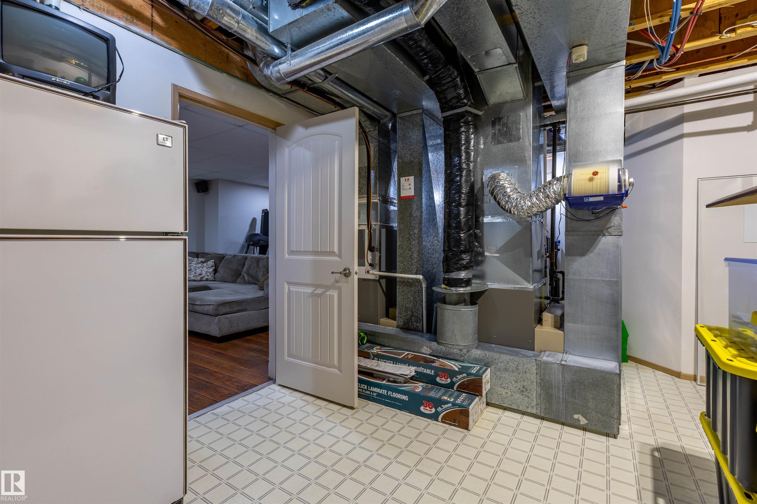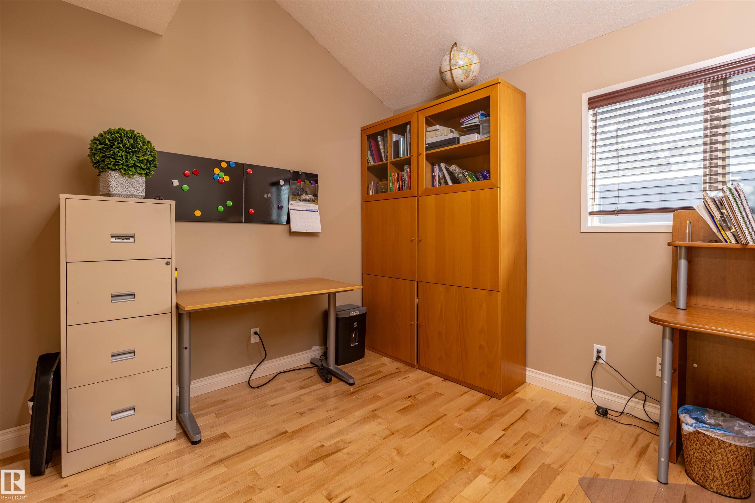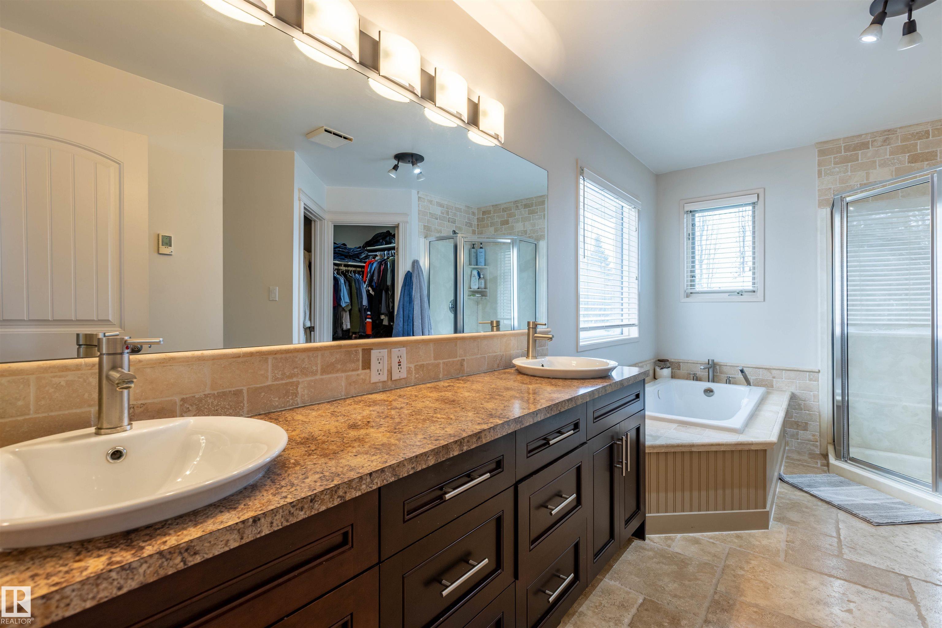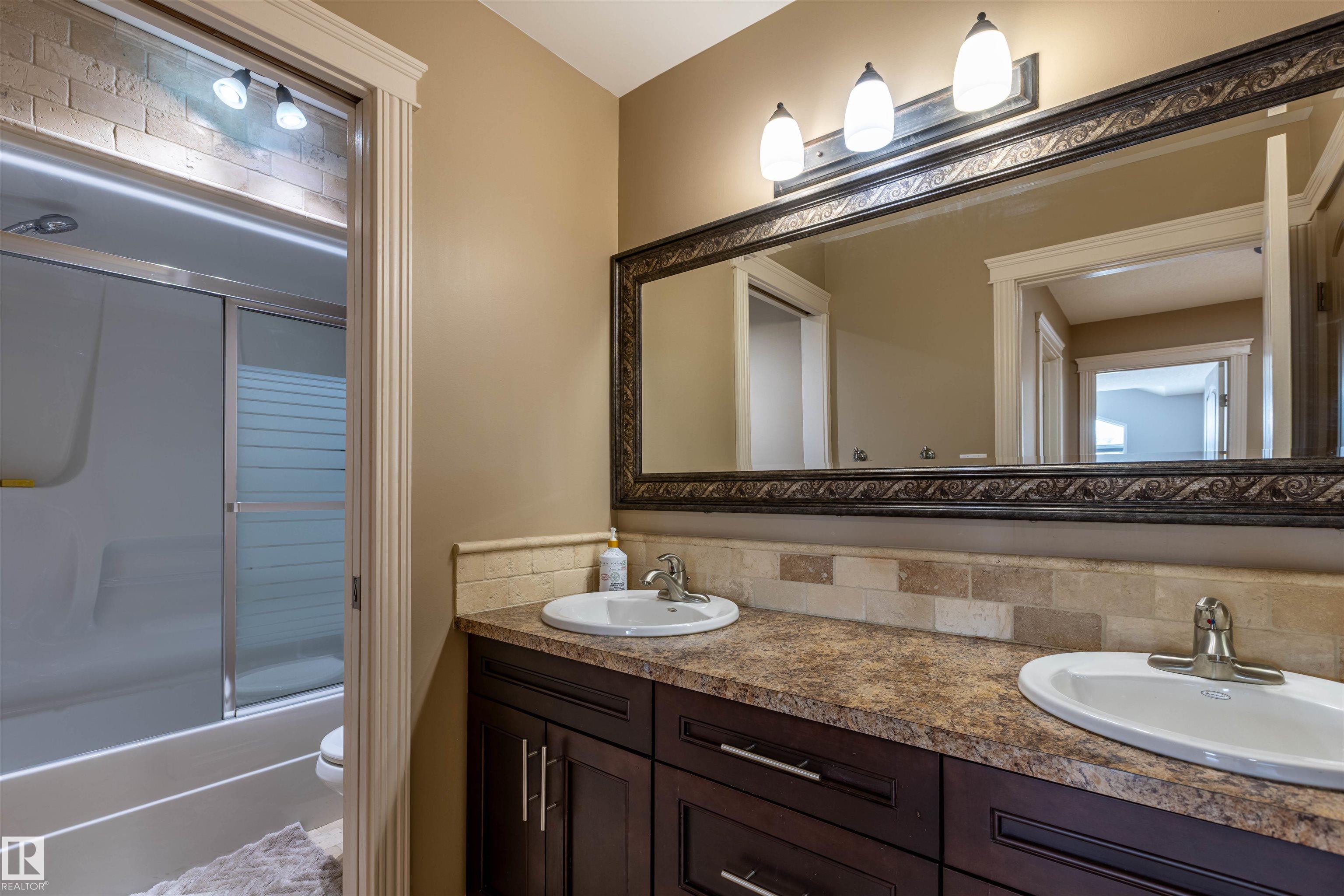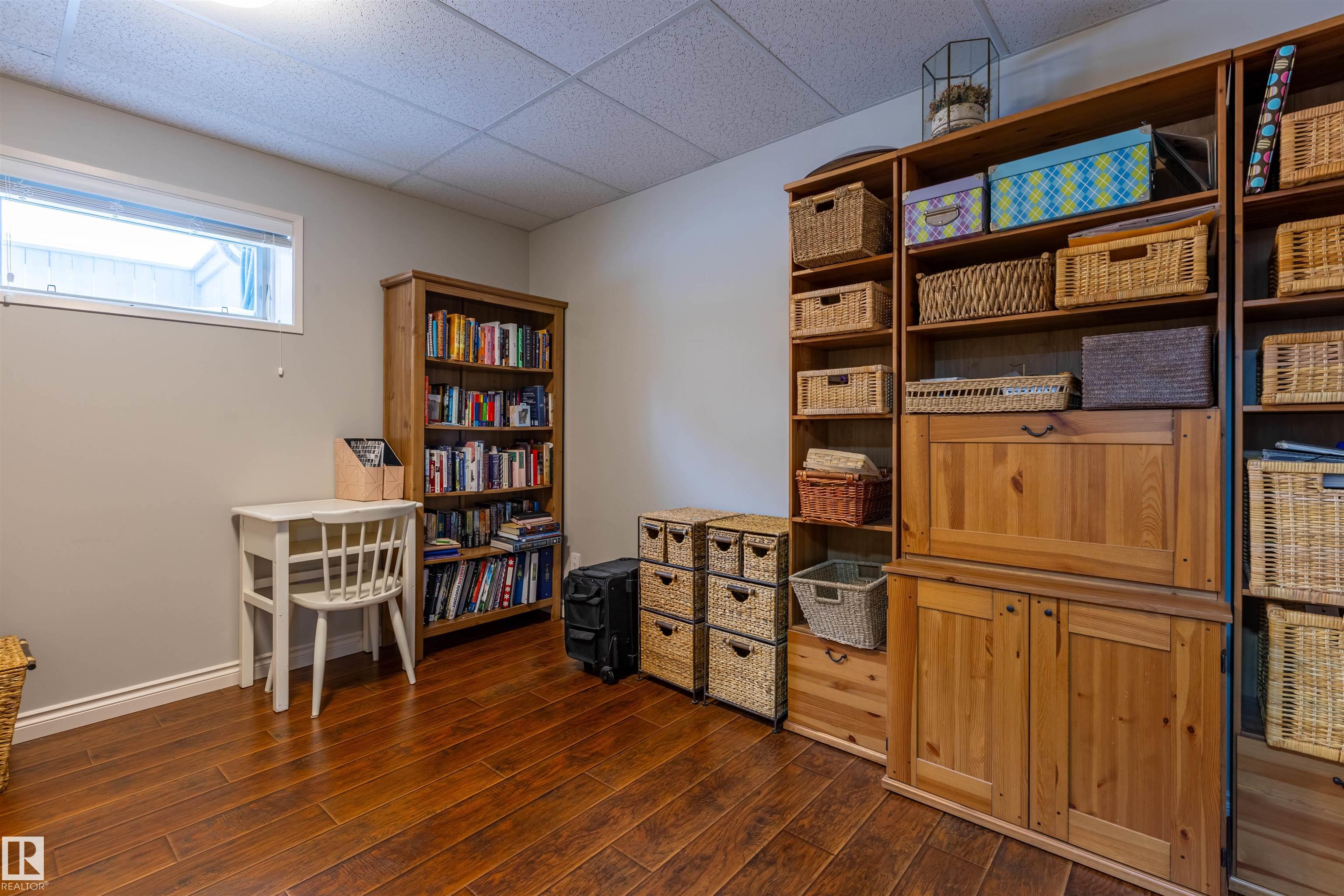Welcome to the prestigious Estates of Sherwood Park! Tucked away on a quiet, private lot surrounded by mature trees, this beautiful 2700+ SqFt, 5 bed, 4 bath home features a heated triple attached garage, RV parking, 220V wiring, Central A/C, and an unbeatable location. A grand foyer leads to the bright family room and formal dining area before opening to a spacious kitchen and inviting living room with built-in sound system, perfect for entertaining. The main floor also features a large office and mudroom off the garage. Upstairs offers a massive primary retreat with a private south-facing balcony overlooking the backyard, a luxurious 6-pc ensuite with heated floors, two walk-in closets, two additional bedrooms, and convenient upstairs laundry. The fully finished basement includes a large recreation room with built-in speakers and projector, two bedrooms, and a 3-pc bath. Enjoy the sunny south-facing backyard with mature trees, full fencing, landscaping, and a large deck. Some photos contain AI staging.