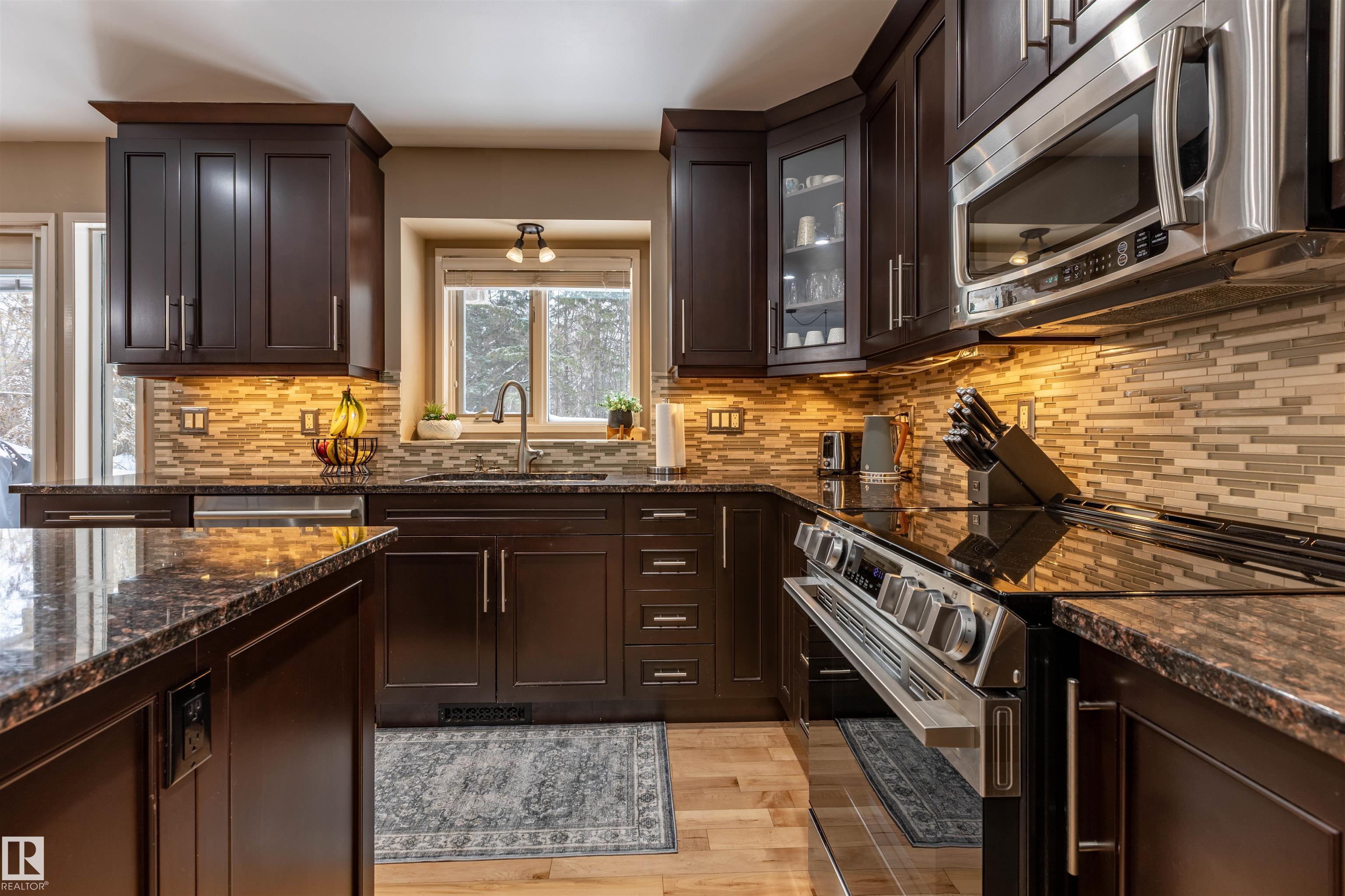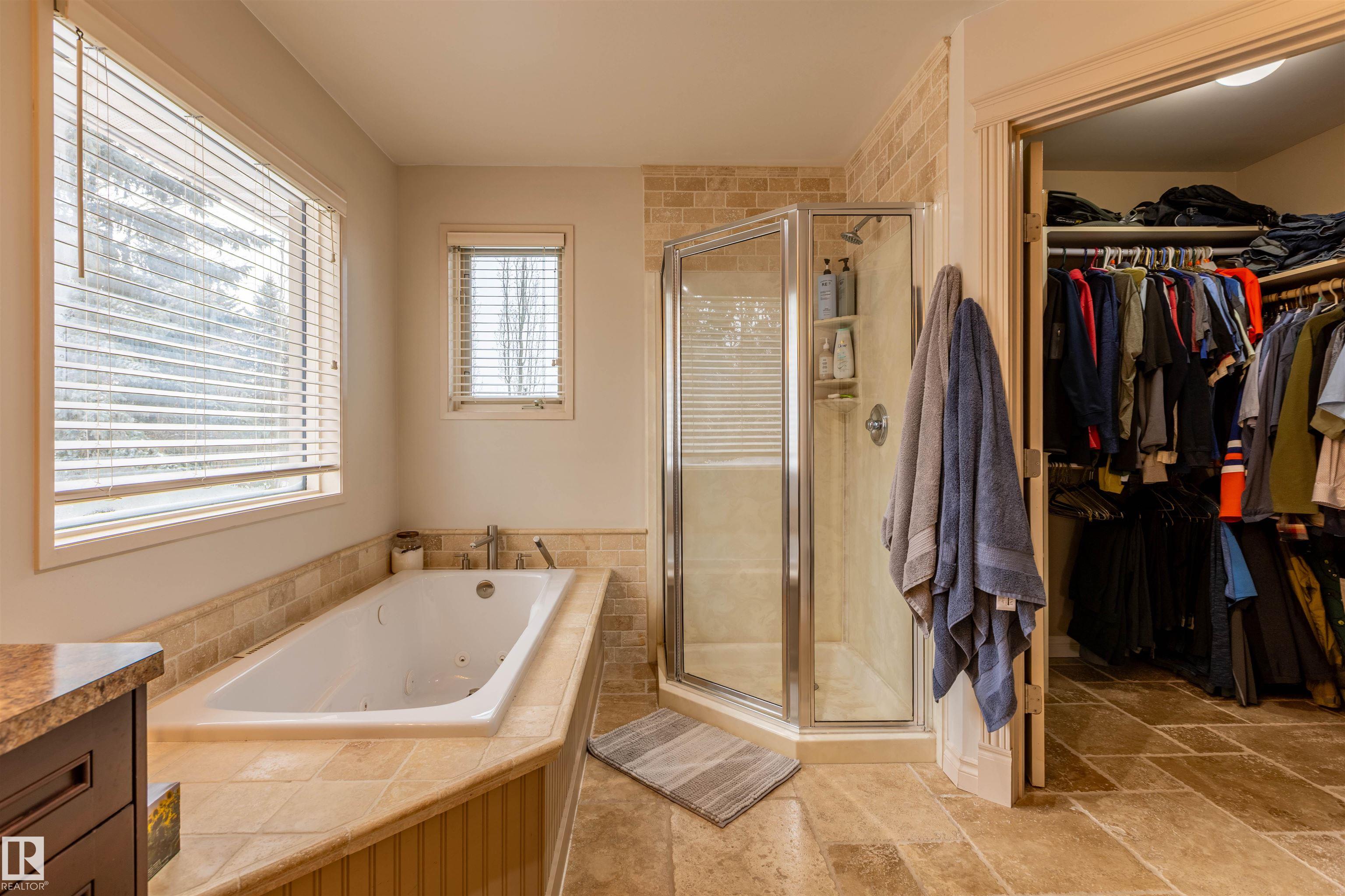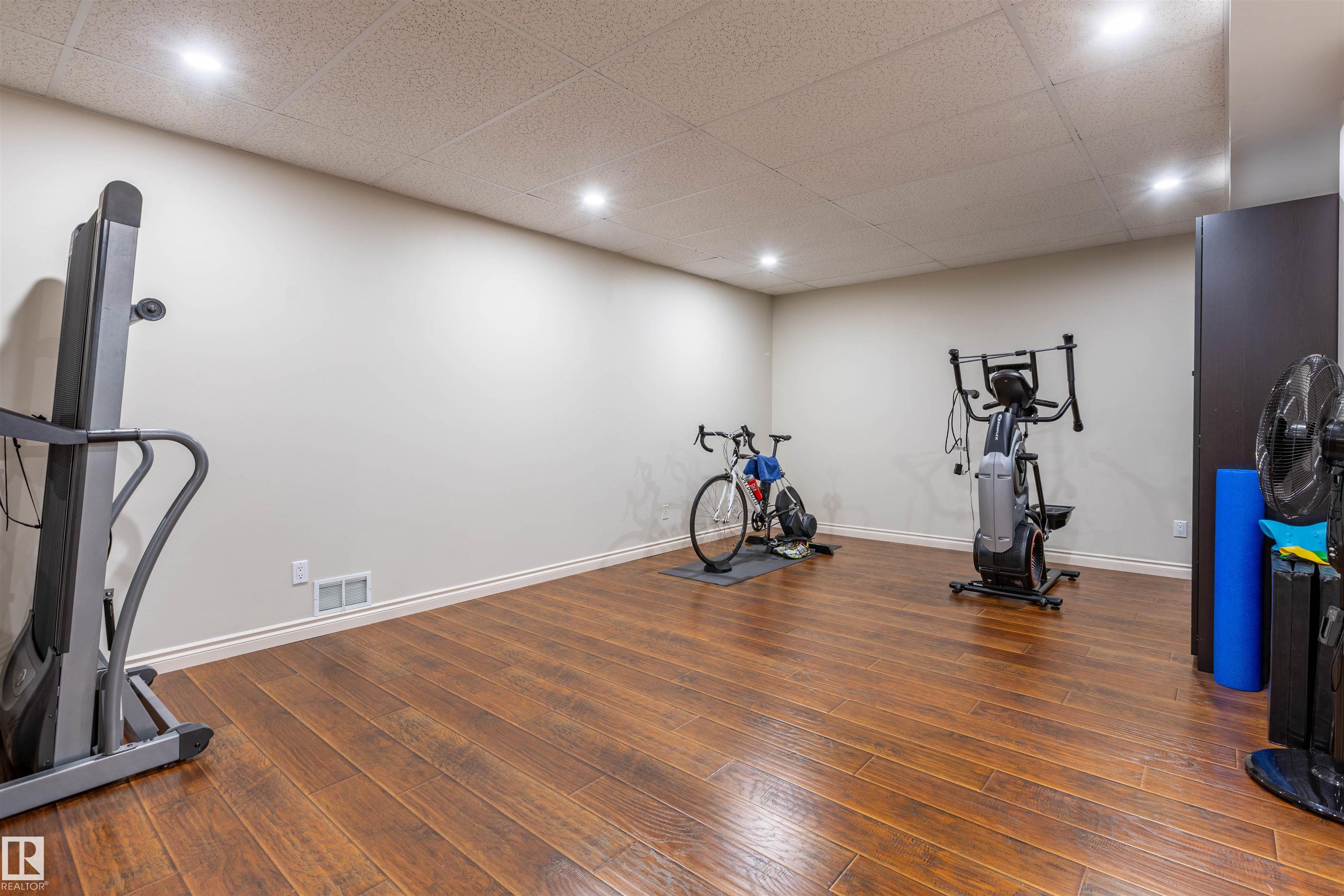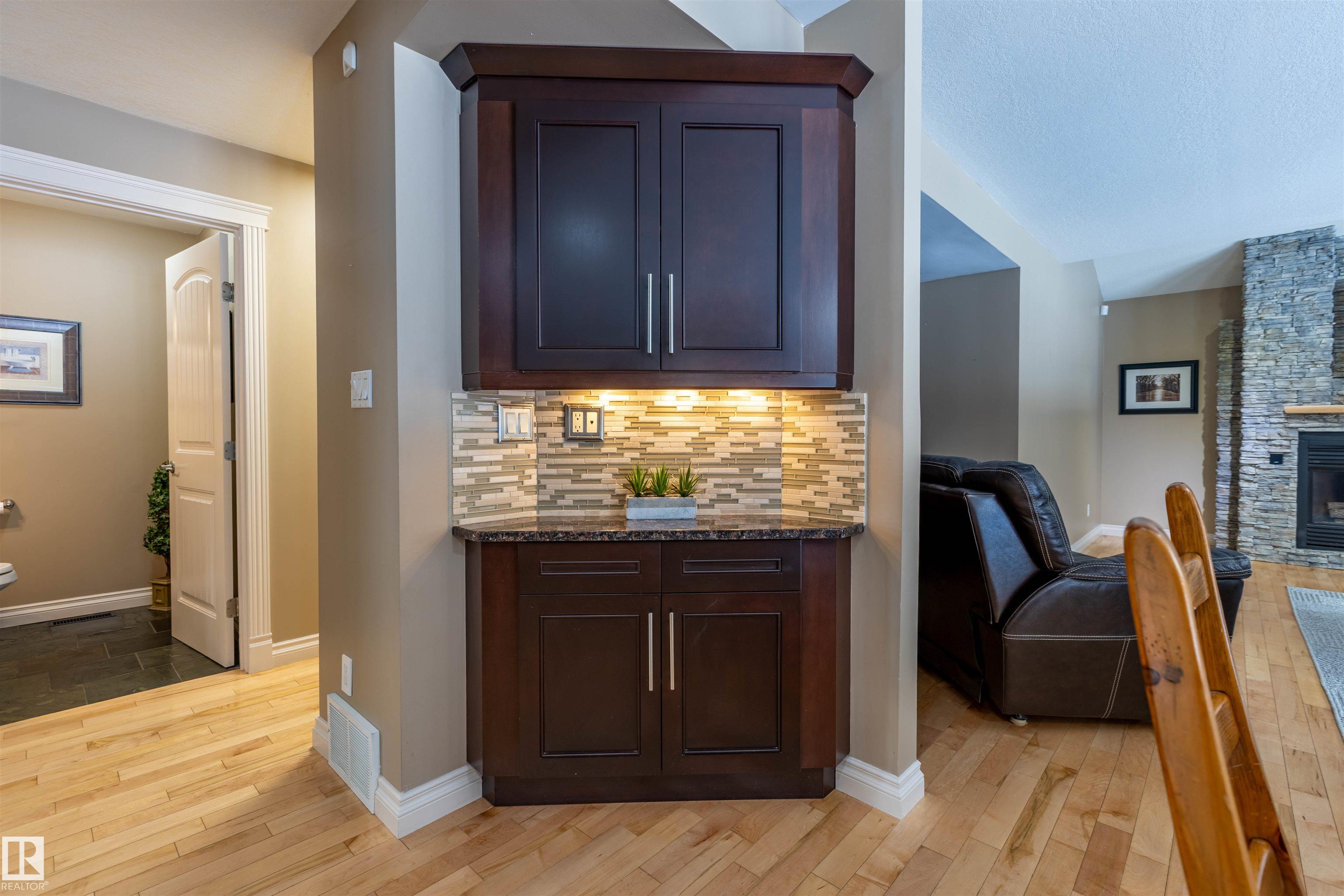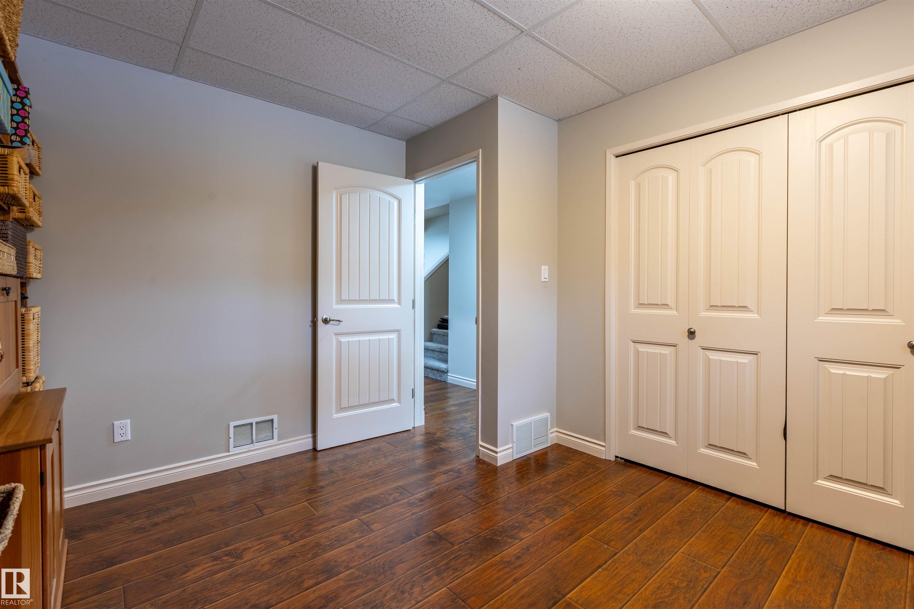 Welcome to the prestigious Estates of Sherwood Park! Tucked away on a quiet, private lot surrounded by mature trees, this beautiful 2700+ SqFt, 5 bed, 4 bath home features a heated triple attached garage, RV parking, 220V wiring, Central A/C, and an unbeatable location. A grand foyer leads to the bright family room and formal dining area before opening to a spacious kitchen and inviting living room with built-in sound system, perfect for entertaining. The main floor also features a large office and mudroom off the garage. Upstairs offers a massive primary retreat with a private south-facing balcony overlooking the backyard, a luxurious 6-pc ensuite with heated floors, two walk-in closets, two additional bedrooms, and convenient upstairs laundry. The fully finished basement includes a large recreation room with built-in speakers and projector, two bedrooms, and a 3-pc bath. Enjoy the sunny south-facing backyard with mature trees, full fencing, landscaping, and a large deck. Some photos contain AI staging.