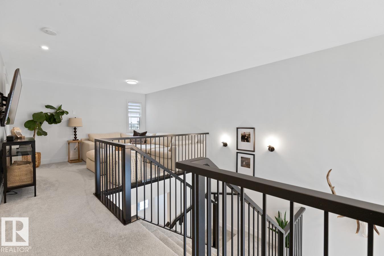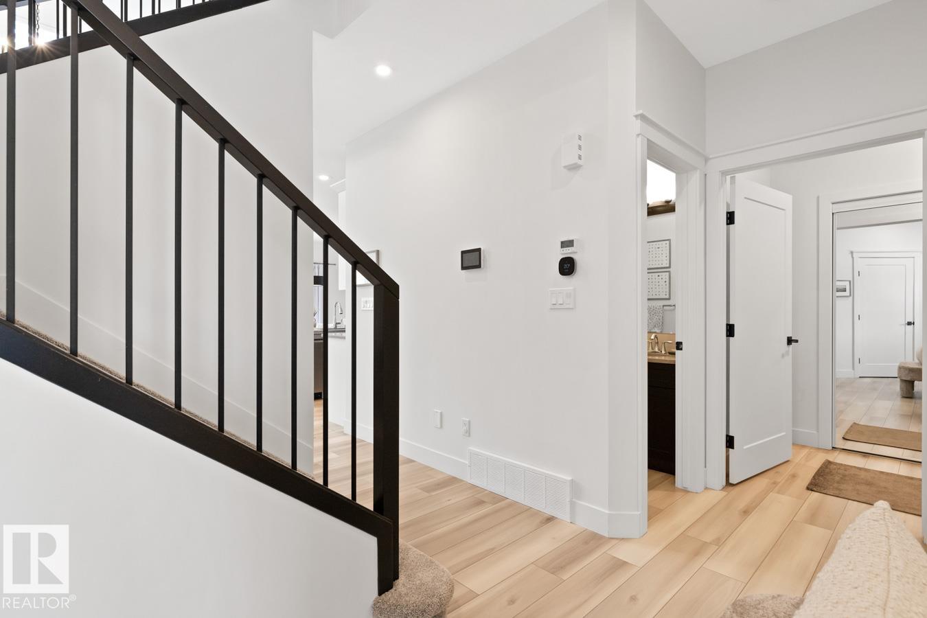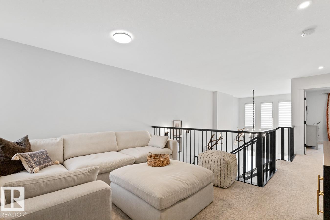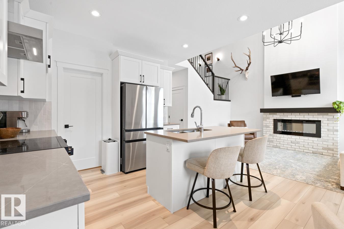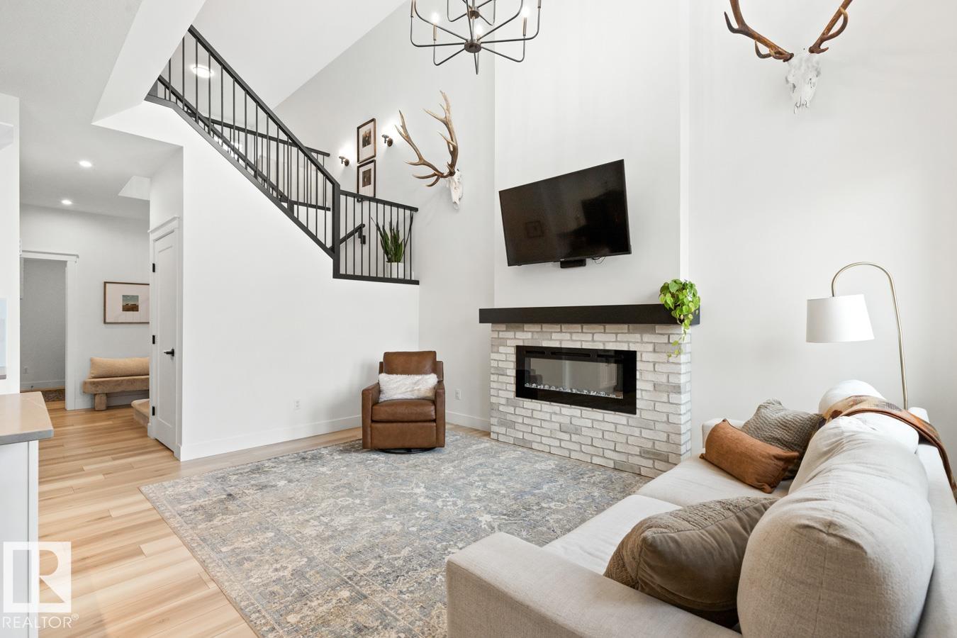 This IMMACULATE, SHOWSTOPPING home offers A/C, 4 bedrooms (including one on the main floor) & 3 full baths, the perfect blend of style and function. Step inside this Salerno model by Montorio Homes to discover vinyl plank flooring throughout a bright, open-concept layout. The stunning kitchen showcases white cabinetry, S/S appliances, walk-through pantry & quartz island overlooking the dining area and living room, where soaring two-storey windows and a cozy fireplace create an unforgettable focal point. A main floor bedroom & 3-piece bath add exceptional flexibility for guests or multigenerational living. Upstairs, enjoy a spacious bonus room, a king-sized primary retreat with walk-in closet & luxurious ensuite, plus two generous bedrooms, full bath & convenient laundry room. As you go to the basement their is a side entrance, basement is unspoiled. Pet and smoke free. Fenced with an entertaining-sized deck. Located close to parks, trails, schools & shopping. This BETTER-THAN-NEW home truly shines!