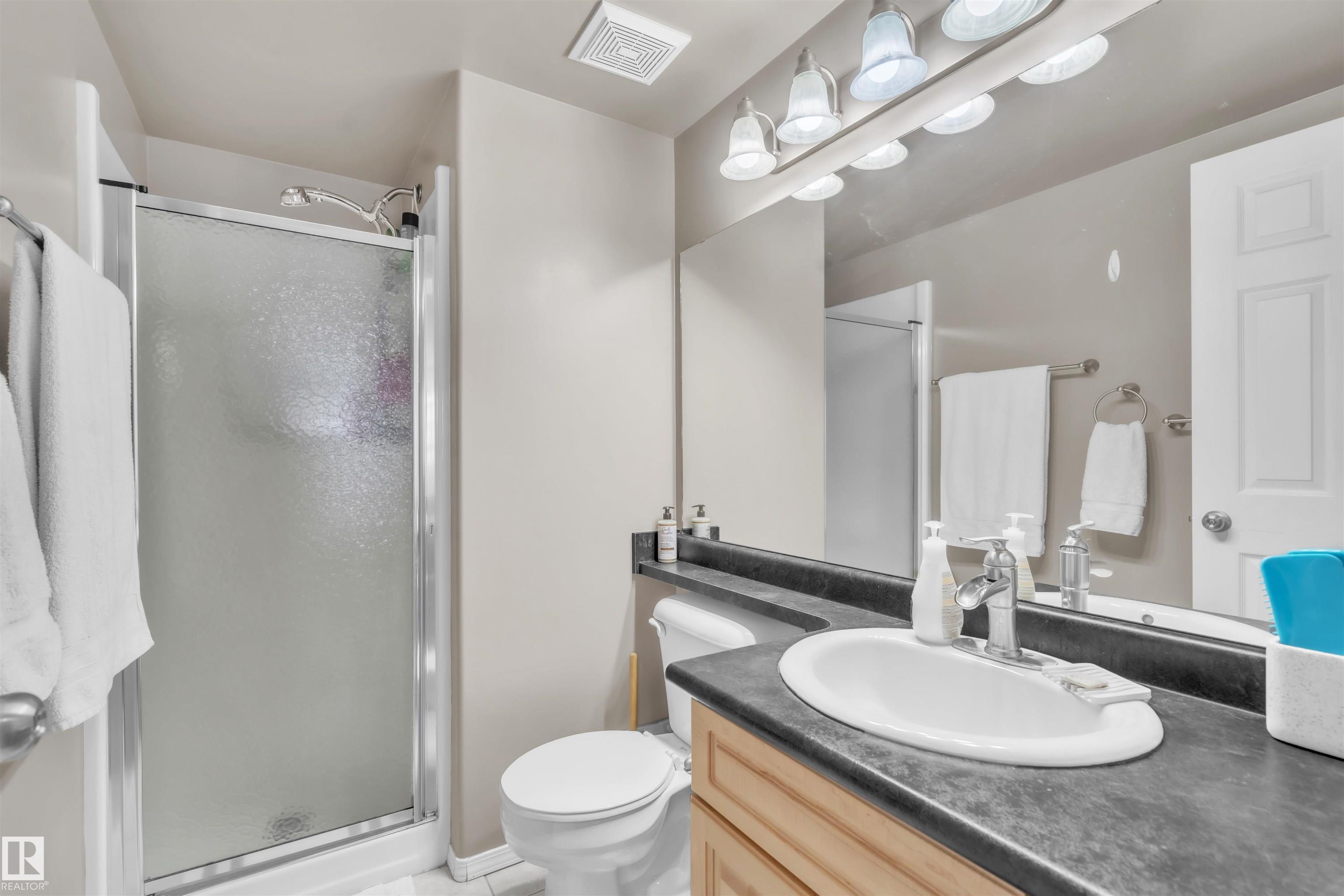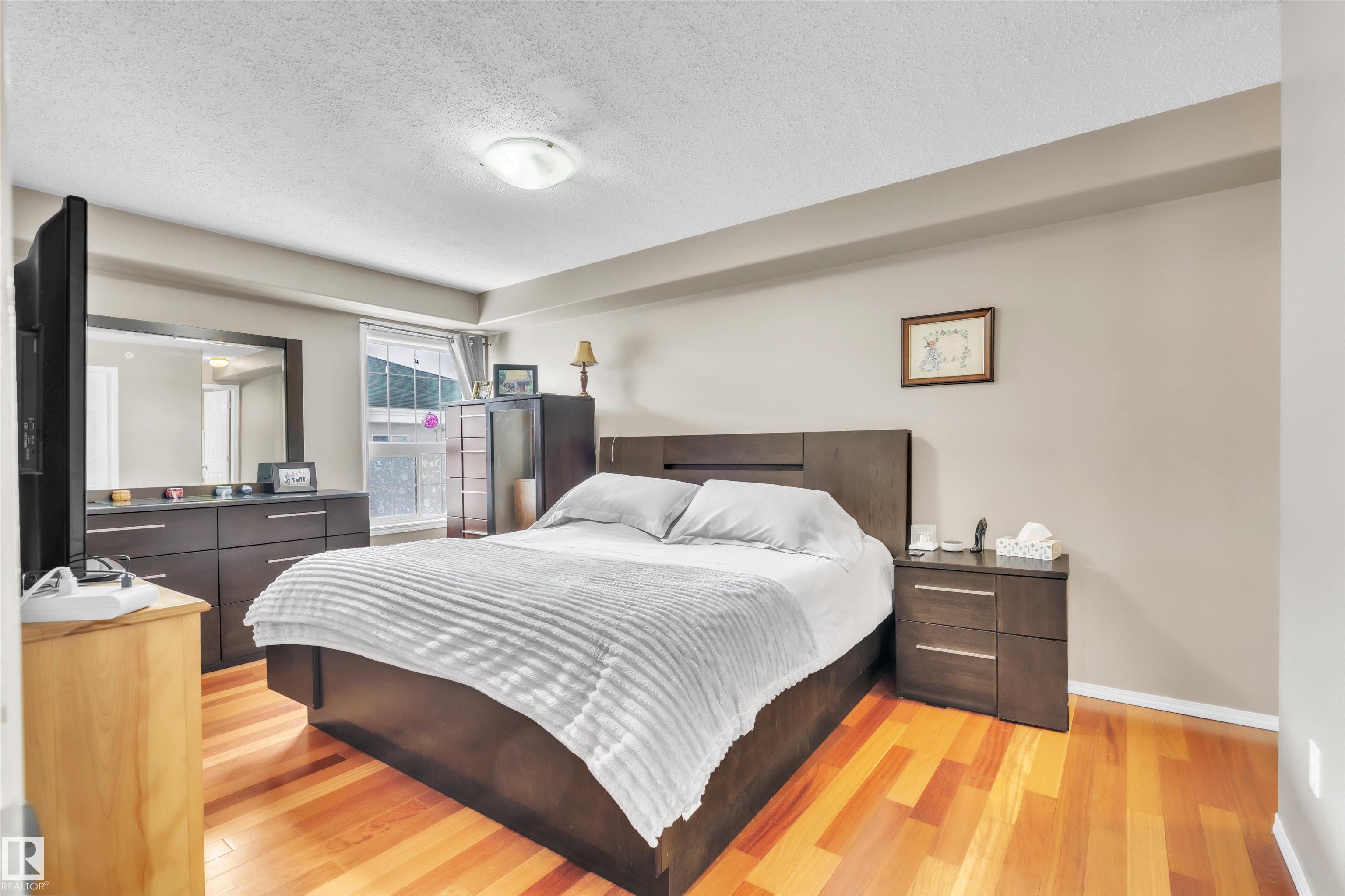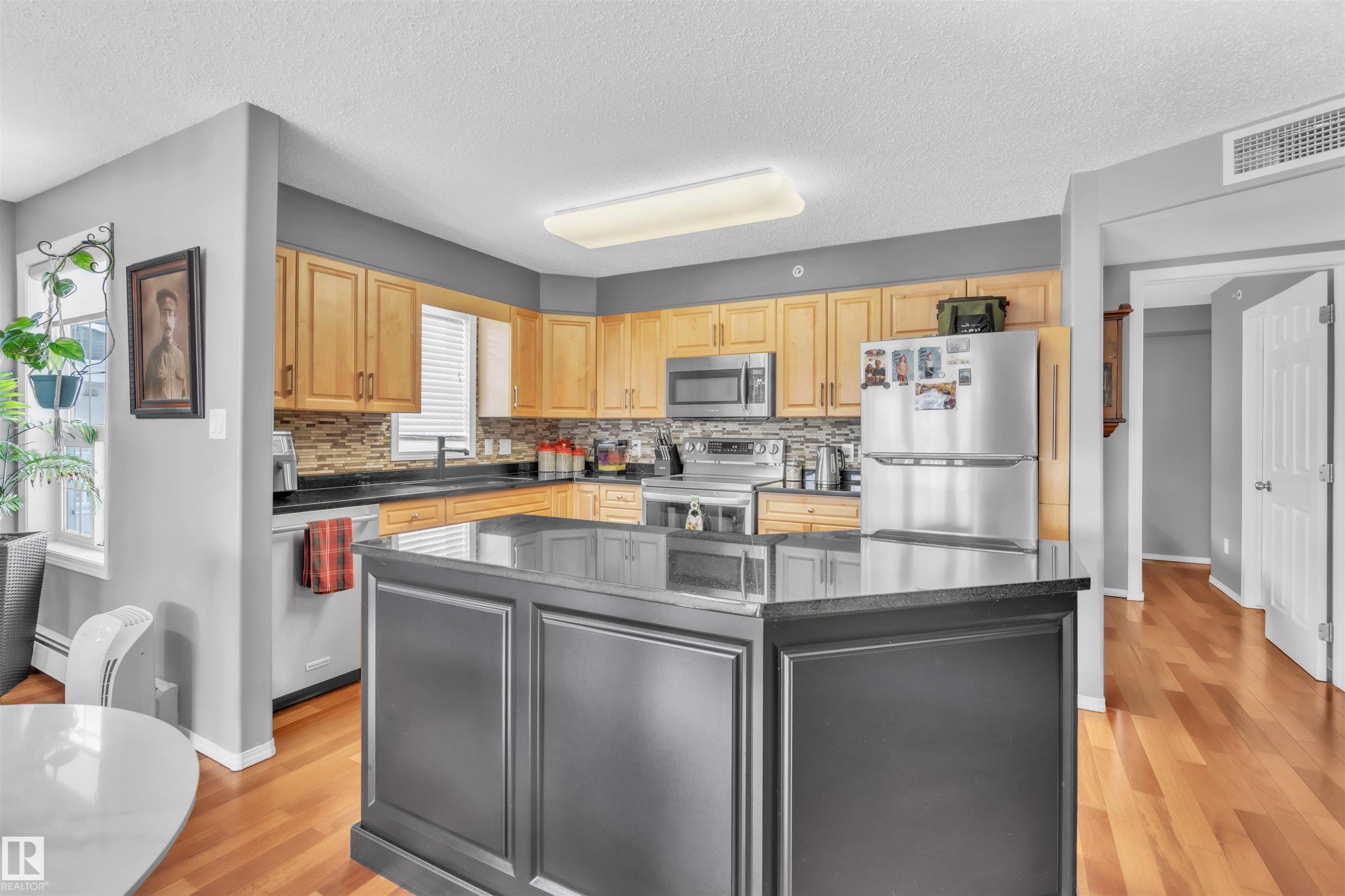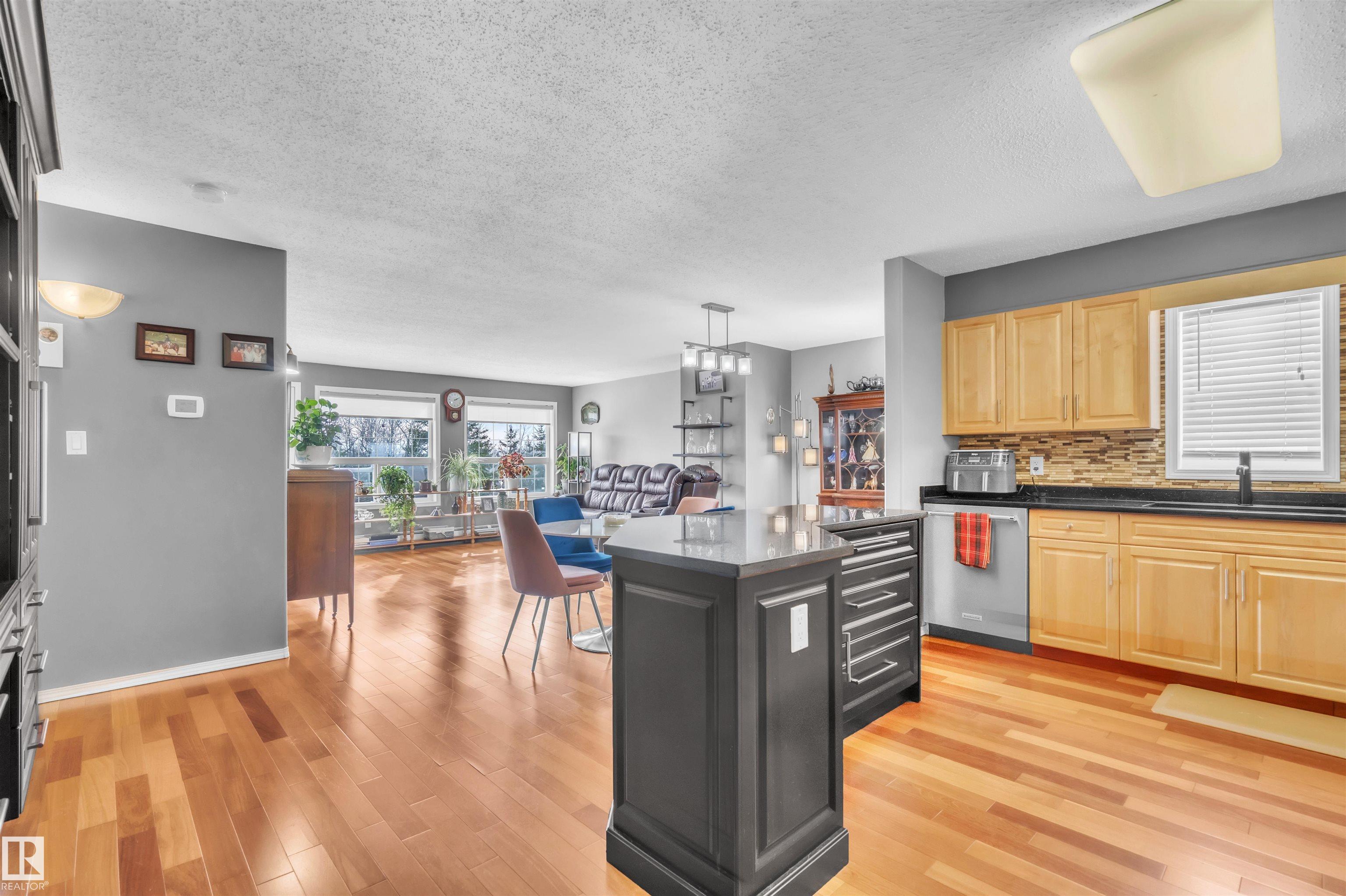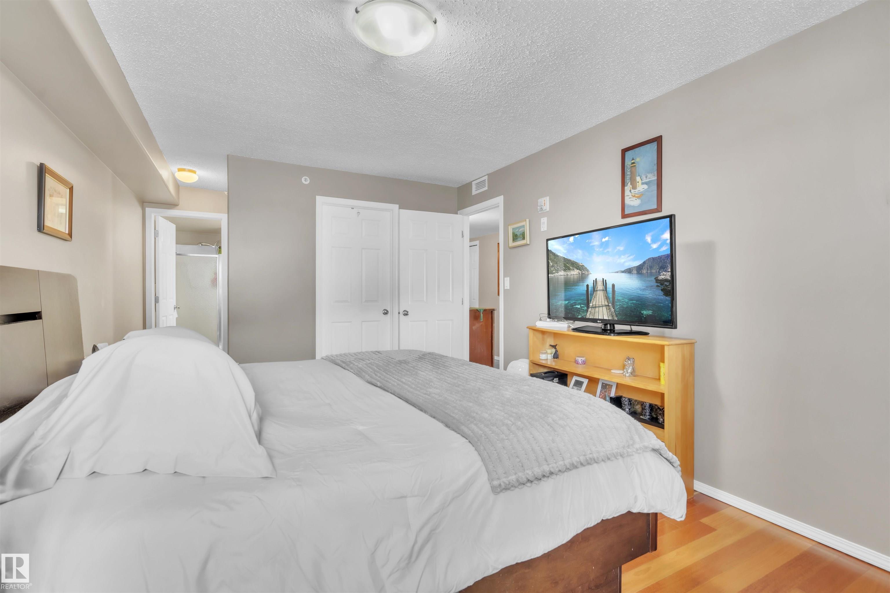 Top-floor 2-bedroom condo backing onto nature! This immaculate, move-in-ready unit offers 1,200 sq ft with an open-concept kitchen, dining, and living area designed for comfortable everyday living. The spacious kitchen features maple cabinetry, granite countertops, stainless steel appliances, and a convenient eat-up island. The living room is filled with natural light thanks to well-placed windows that overlook the surrounding forest. Step out onto the private patio just off the living room, which faces the trees and includes a natural gas hookup for your BBQ. The primary bedroom provides a relaxing retreat with space for a king-sized bed, a walk-in closet with built-in shelving, and a 3-piece ensuite. A second generously sized bedroom, 4-piece main bathroom, and laundry room complete the layout. This unit also includes central A/C, one heated underground parking stall with storage, plus an outdoor energized stall. The building offers a secure entrance, elevator, and a social room.