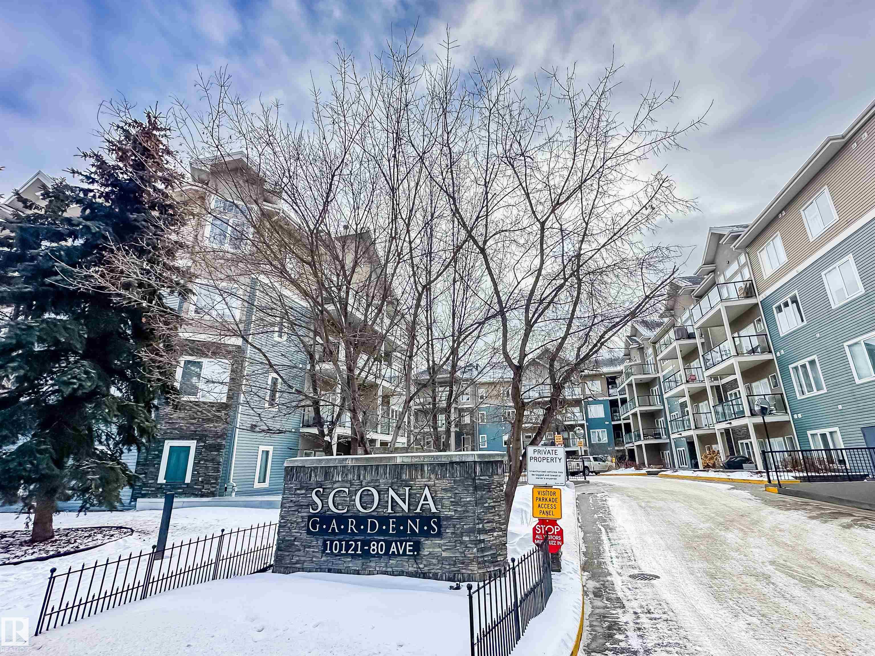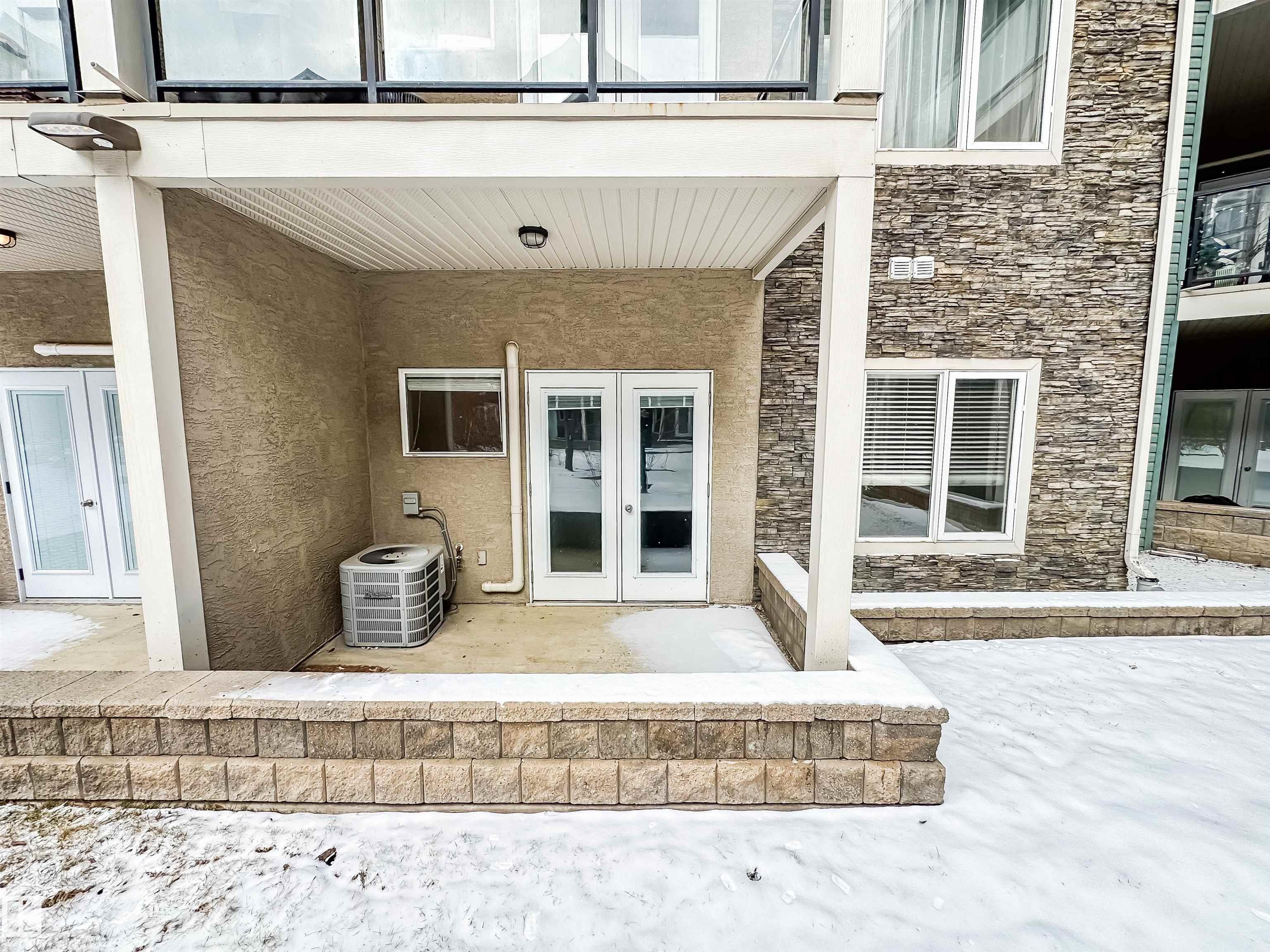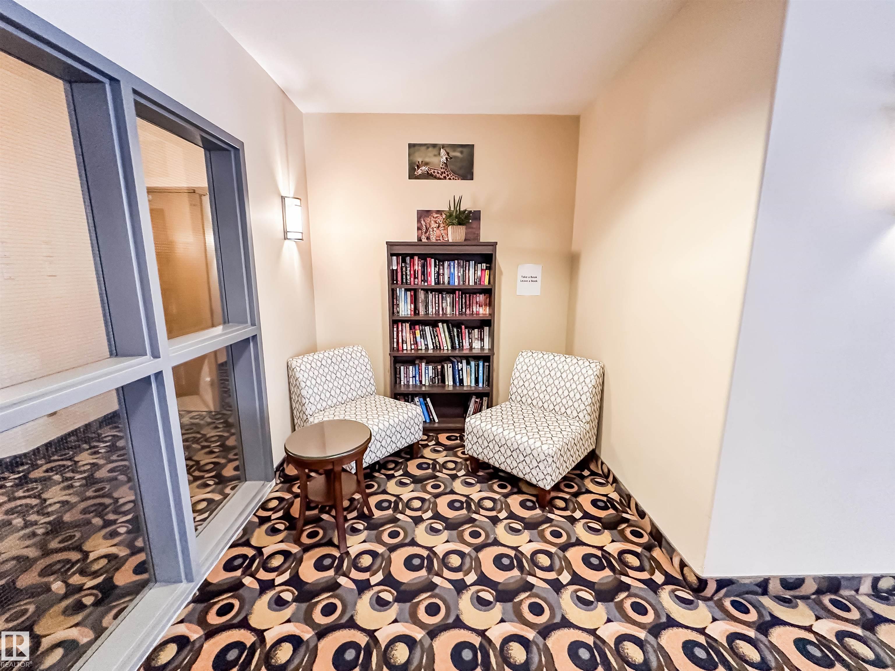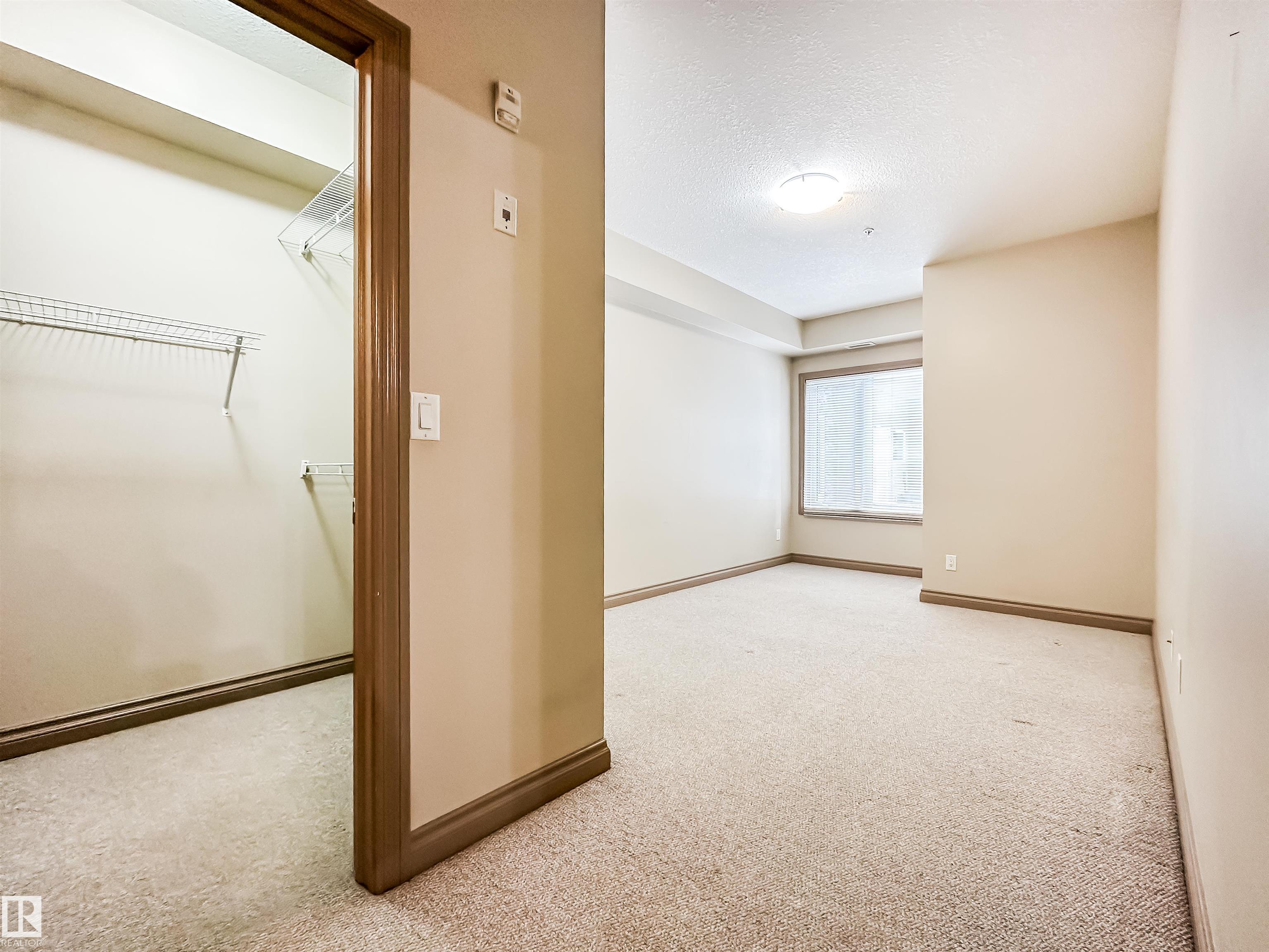 COURTYARD VIEWS & WALKABLE UNIVERSITY LOCATION! This bright and updated 2-bedroom, 2-bath condo offers the perfect blend of comfort and lifestyle. The open-concept layout features hardwood floors, an electric fireplace, and a spacious living and dining area that flows to your private patio overlooking the landscaped courtyard and fountain, a favourite spot in the summer. The kitchen offers stainless steel appliances, plenty of counter space, and updated flooring (2018). The primary bedroom includes a walk-in closet and full ensuite, while the second bedroom and bath work perfectly for guests, roommates, or a home office. In-suite laundry, excellent storage, and underground parking included. Updates: dishwasher (2023), heating coil (2022), and A/C coil (2025). Walk to the University of Alberta, Whyte Ave, the Strathcona Farmers? Market, and the 99 Street microbreweries. Welcome home!