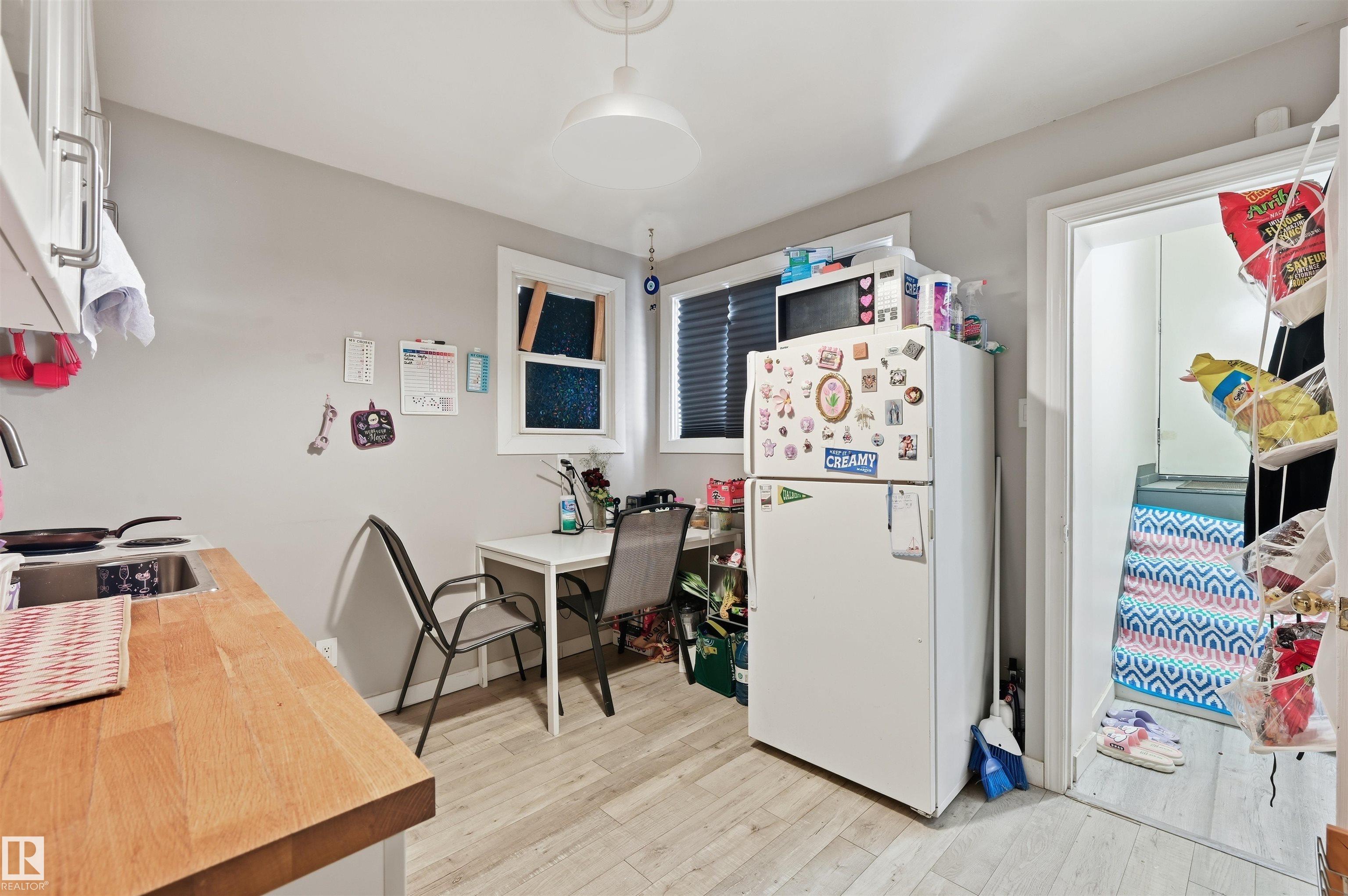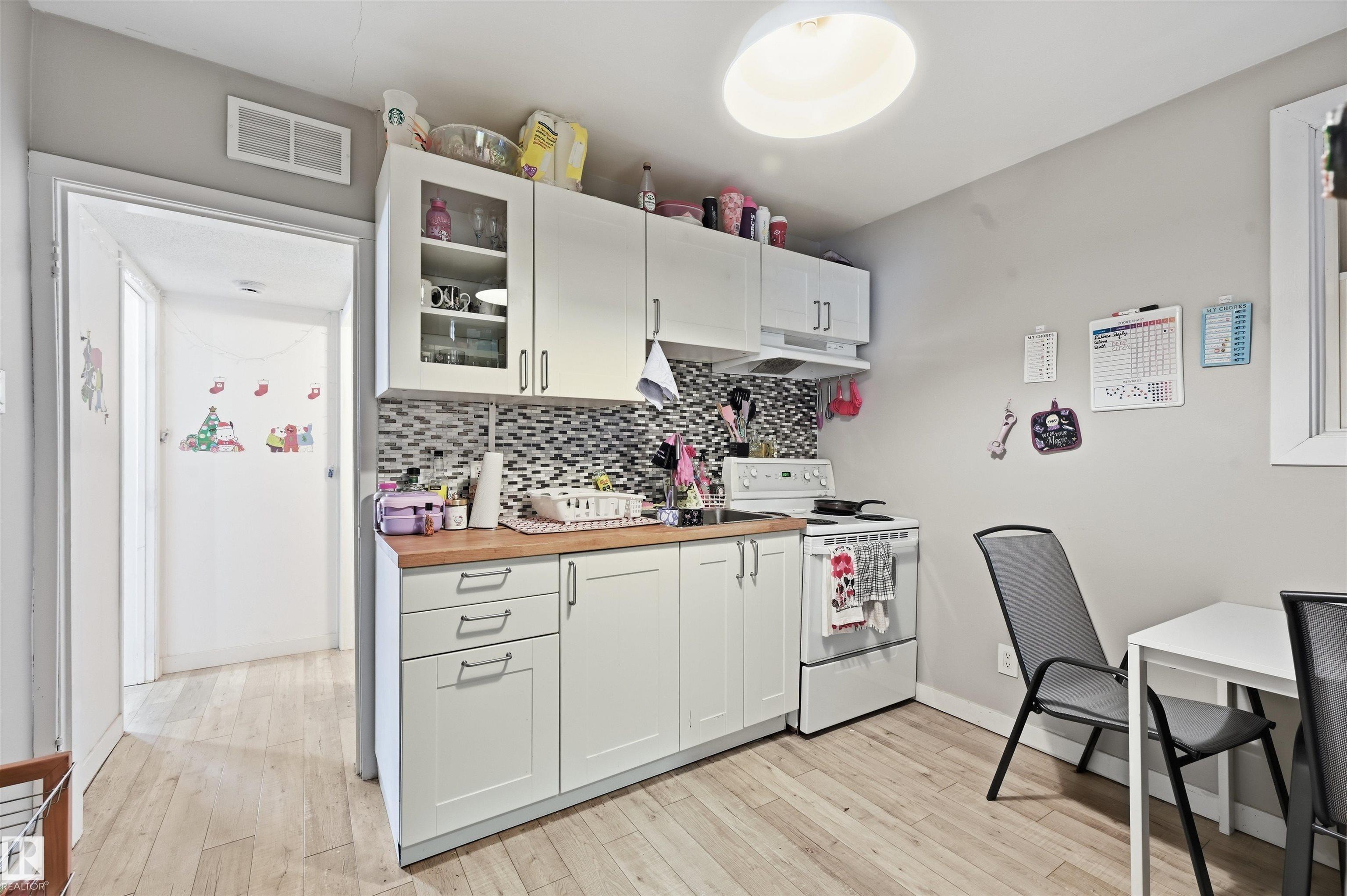FANTASTIC STRATHCONA location with quick proximity to University/Hospital, Downtown, Millcreek Ravine & amenities of Whyte Ave, Ritchie & Bonnie Doon. This raised character bungalows offers a great investment opportunity or could be the perfect starter home. Main level boasts new flooring & updates to the kitchen & bathroom. 2 sizeable bedrooms plus stackable laundry complete this level. The fully contained basement has a side entrance (& back door) & also boats 2 bedrooms, a full bathroom, full kitchen & laundry in mechanical room. The double garage has been divided so as to accommodate parking for both levels. Plus additional parking beside garage & along front street. Updated landscaping with 2 seating areas to enjoy (upper deck and lower patio). Updates include: 50-year asphalt shingles, garage shingles (2025), newer eaves/downspouts, landscaping (2025), newer fencing, LVP flooring (2025), fresh paint, bathroom vanity/mirror updates (2025), hot water (2024), 100Amp service, sump pump install (2025).