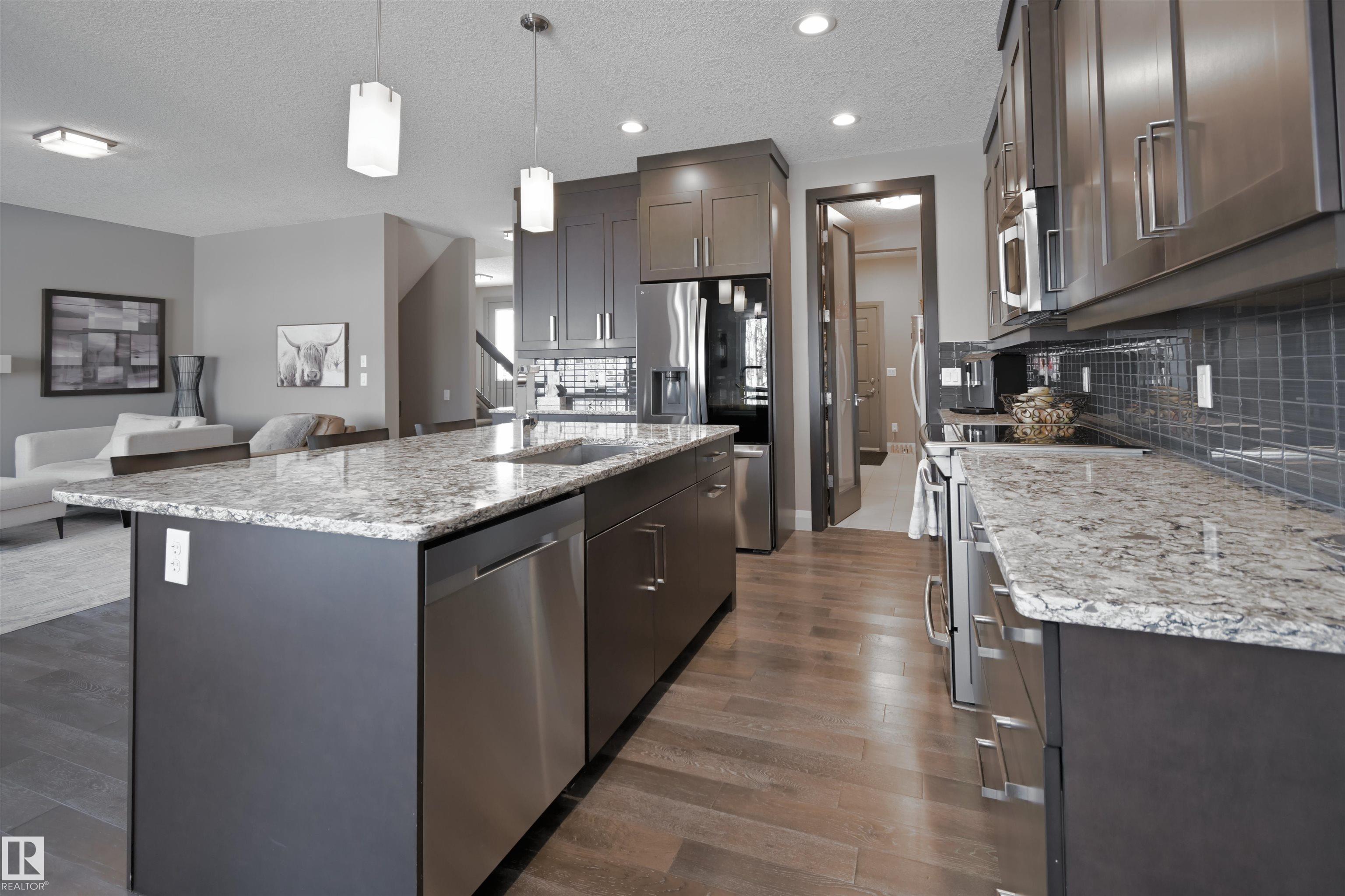 Checking Every Box, this 4-bed, 4-Bath 2-Storey with finished basement is a Must See! Soaring ceilings and a substantial staircase welcome you into the home. The kitchen features quartz counters, extended cabinets, centre island with seating, and walk-through pantry. The living room has a gas fireplace & enjoys a treed view. The ample dining room leads to the deck and backyard. A mud room with custom built-ins accesses the 24x23 heated and finished garage which has Hot and Cold water. A den/flex room and 2-pc bath complete the main level. Upstairs, the spacious primary suite features a 5-pc ensuite with Kohler massage tub & double sinks, as well as a walk-in closet. The upper level includes two morel beds, laundry, 4-pc bath and large bonus room, perfect for watching movies with the family. The finished basement offers a family/rec room, exercise nook, 4th bedroom and 3-pc bath. The beautifully landscaped yard with in-ground sprinklers backs trees and a park. Situated in Heatherglen, close to the Tri.